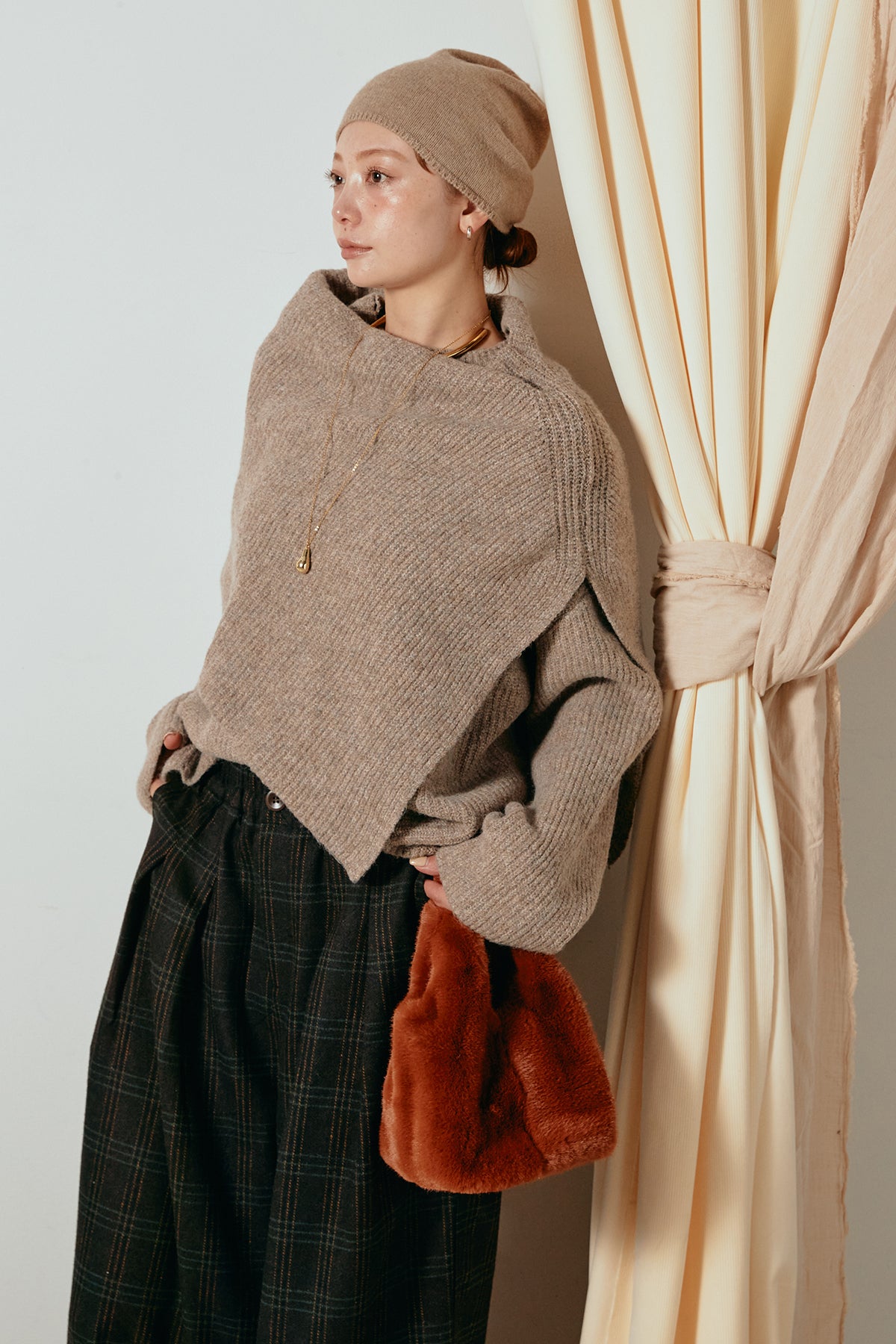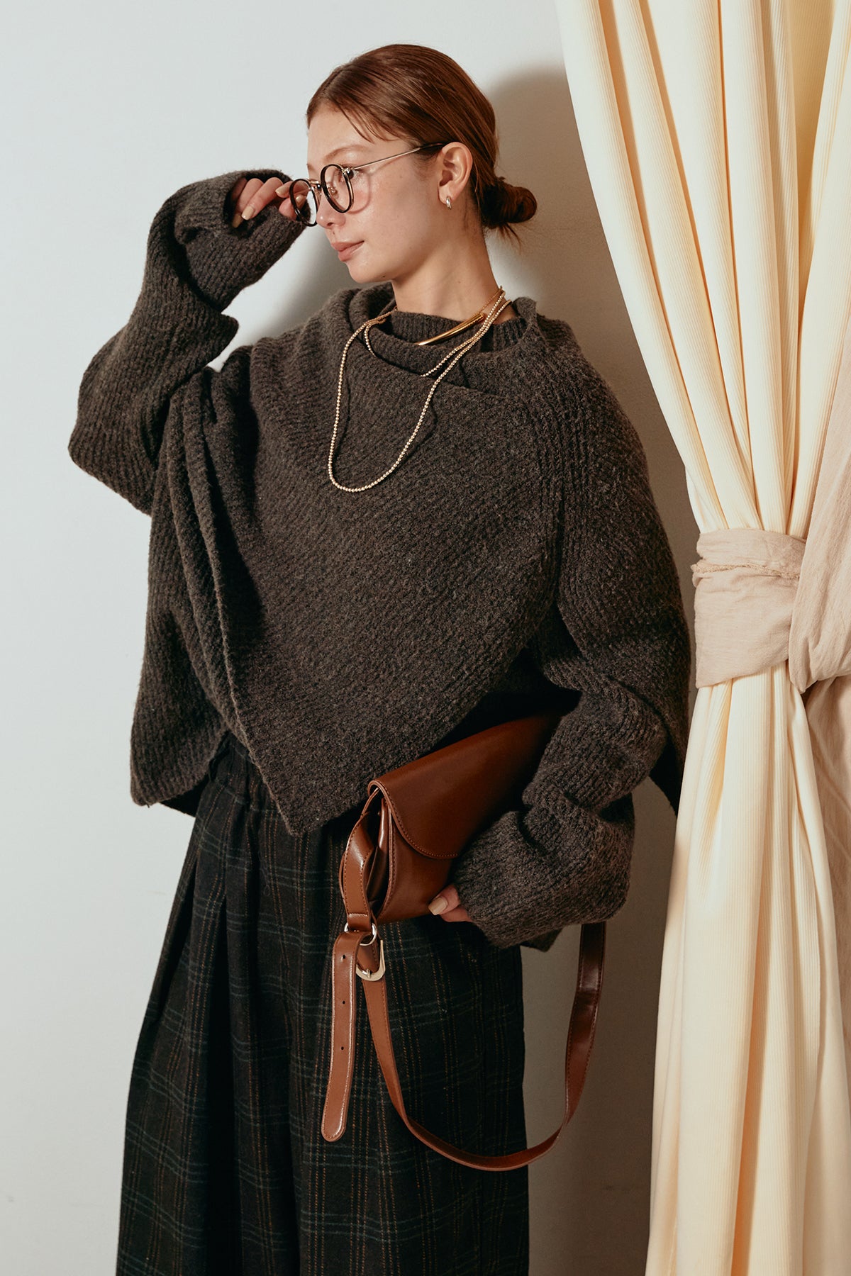肩を包み込むような立体的なシルエットが印象的で、着るだけでスタイルに奥行きをプラス。