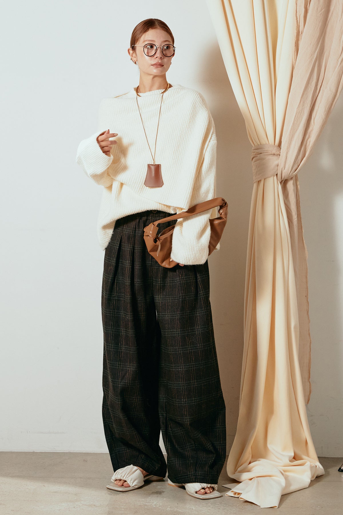 ウエストに施されたタックが立体感を生み、ゆとりのあるワイドシルエットでこなれた印象に。