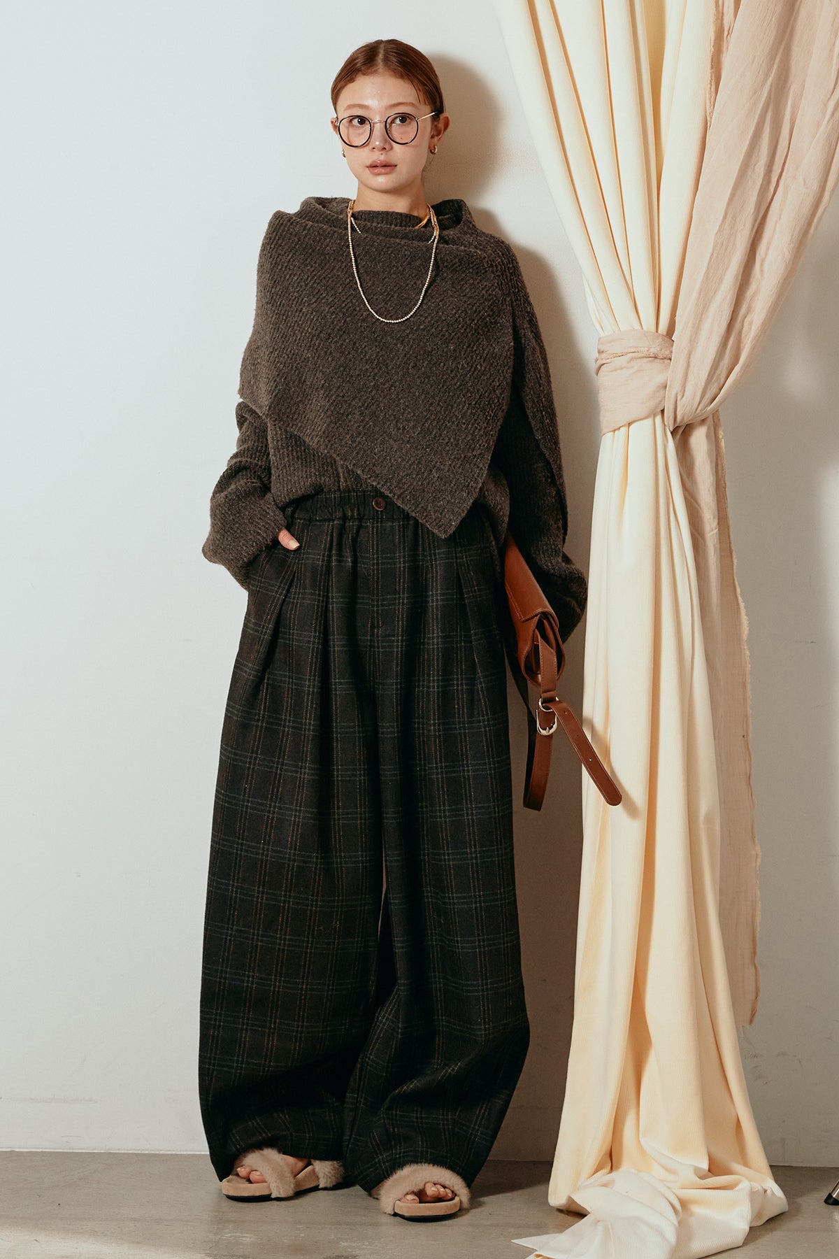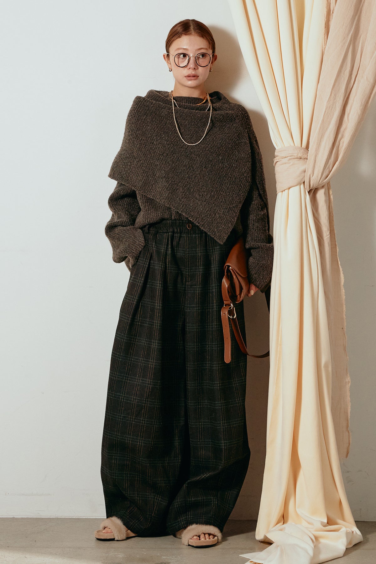 落ち着いた配色のチェック柄がシーズンムードを高め、ニットやシャツとの相性も抜群です。