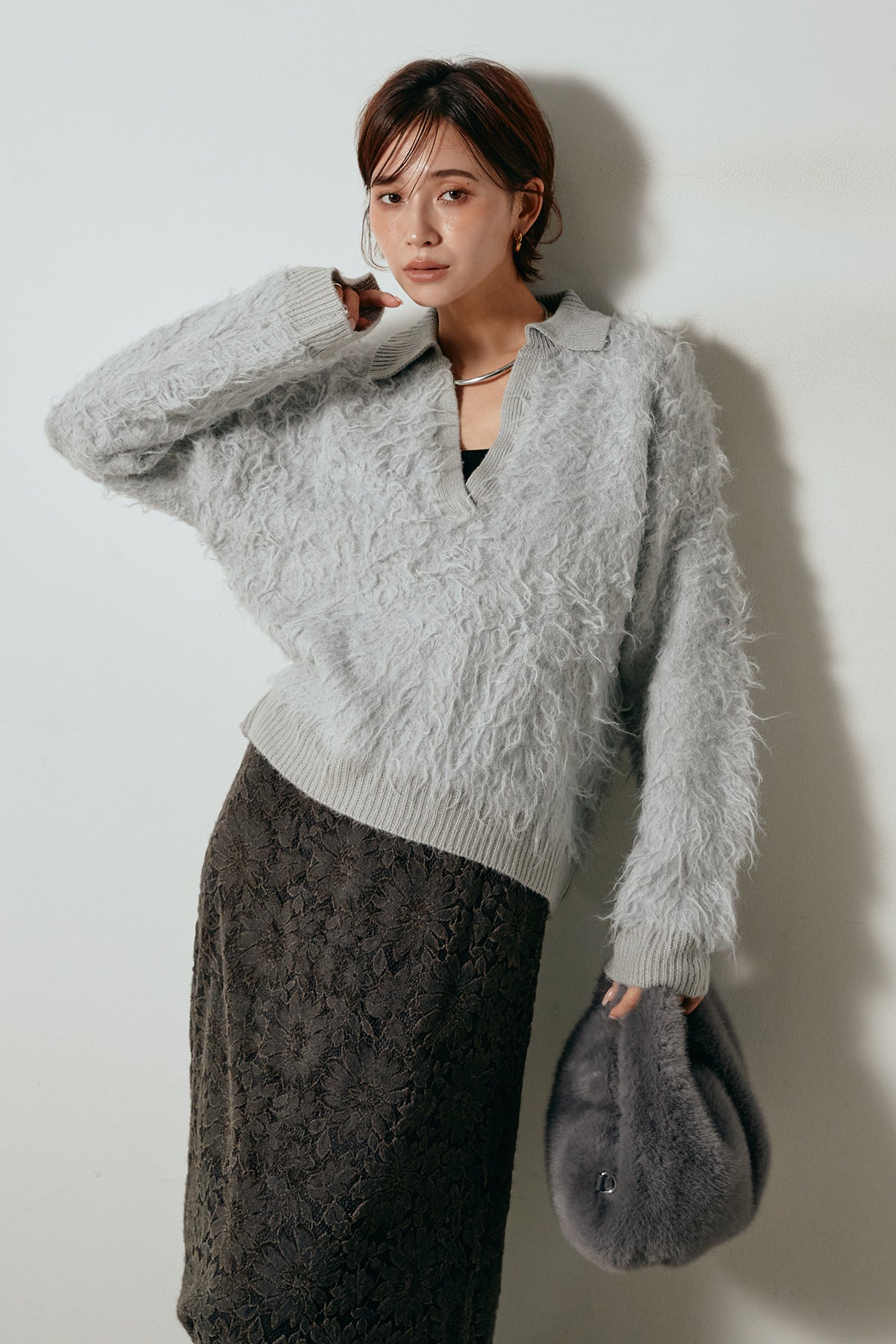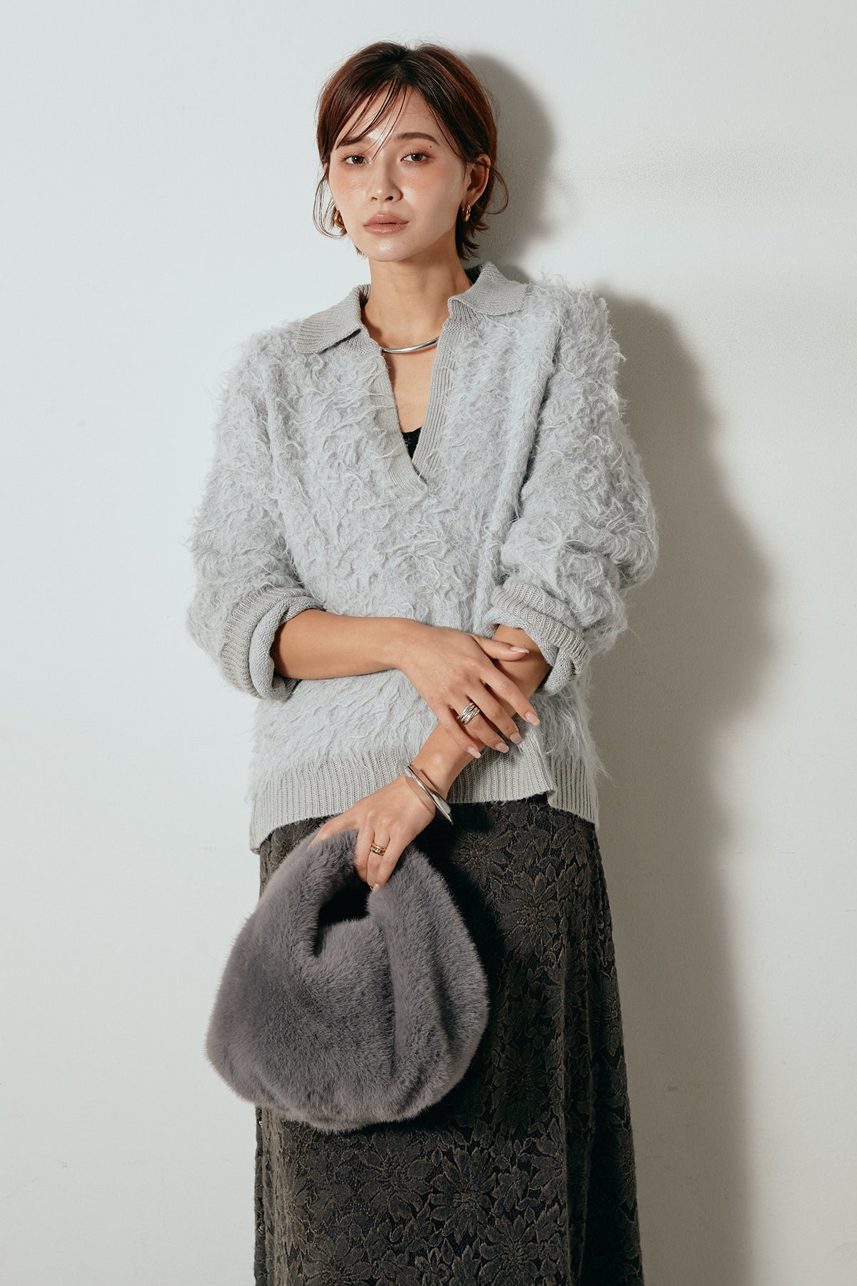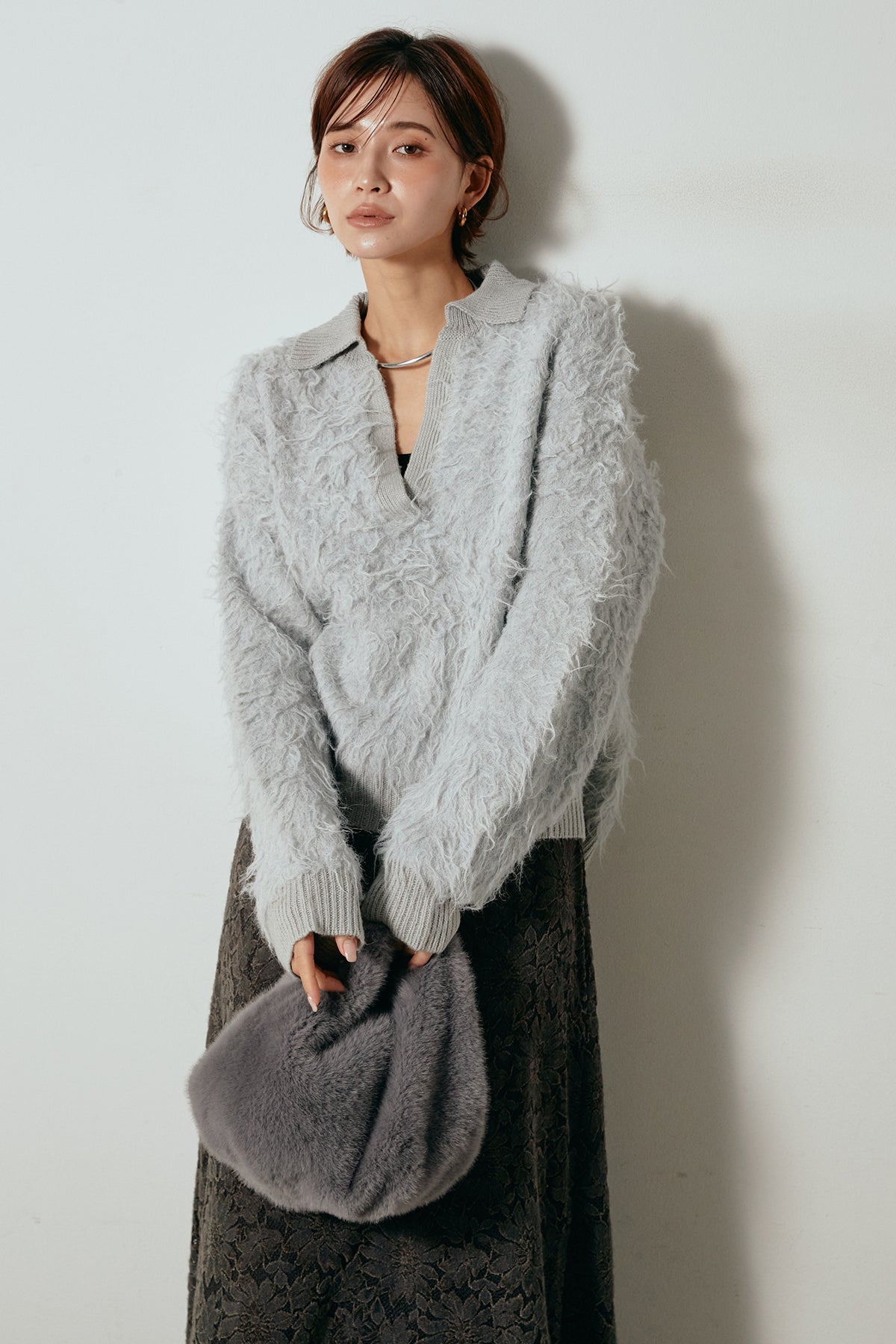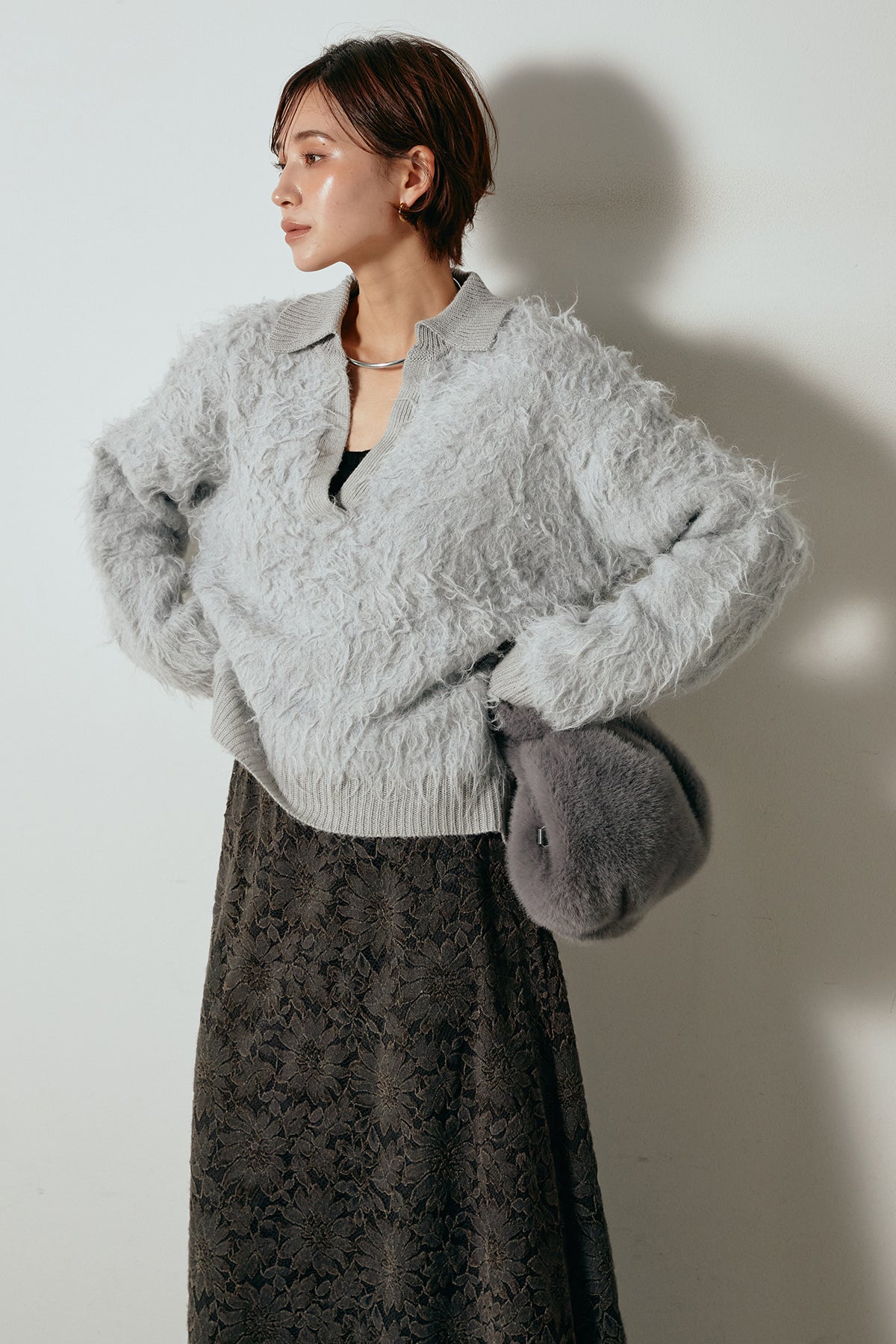 ふんわりとしたシャギー素材が目を惹くニットポロトップス。柔らかな質感がシーズンらしい温もりを感じさせ、程よいボリューム感の袖がこなれた印象をプラスします。襟付きデザインで顔まわりをすっきり見せつつ、カジュアルにも上品にも着こなせる一枚。スカートにもパンツにも合わせやすく、幅広いスタイリングを楽しめます。