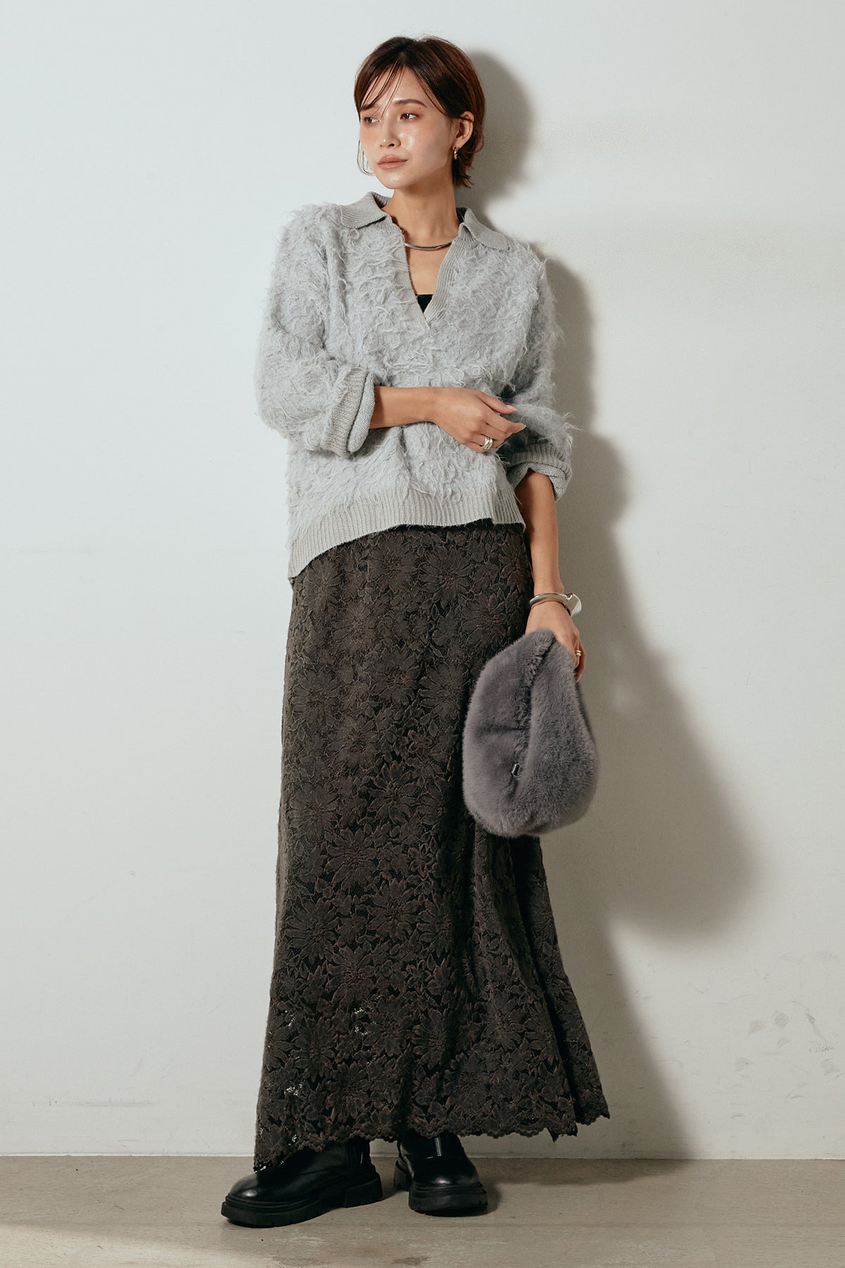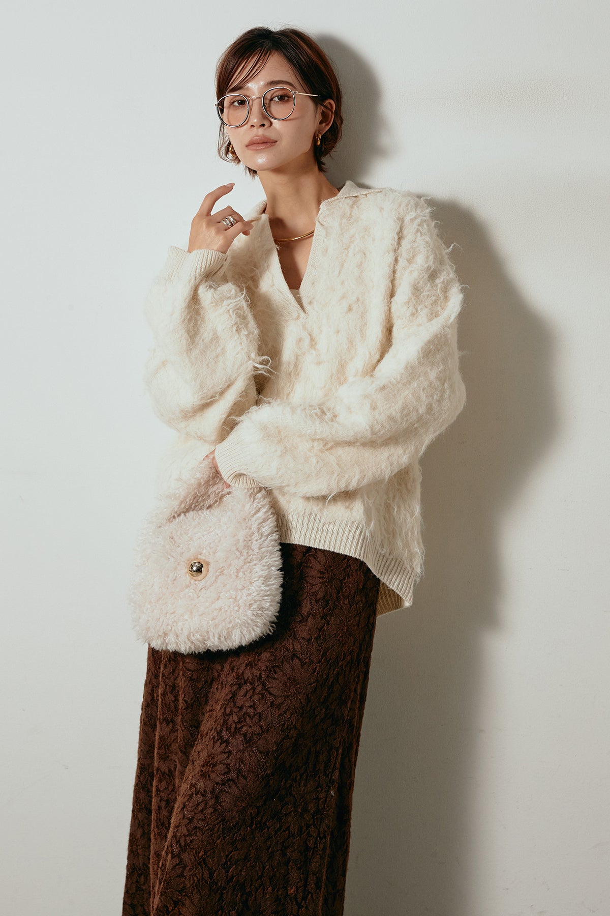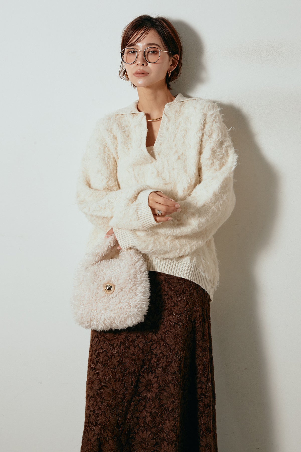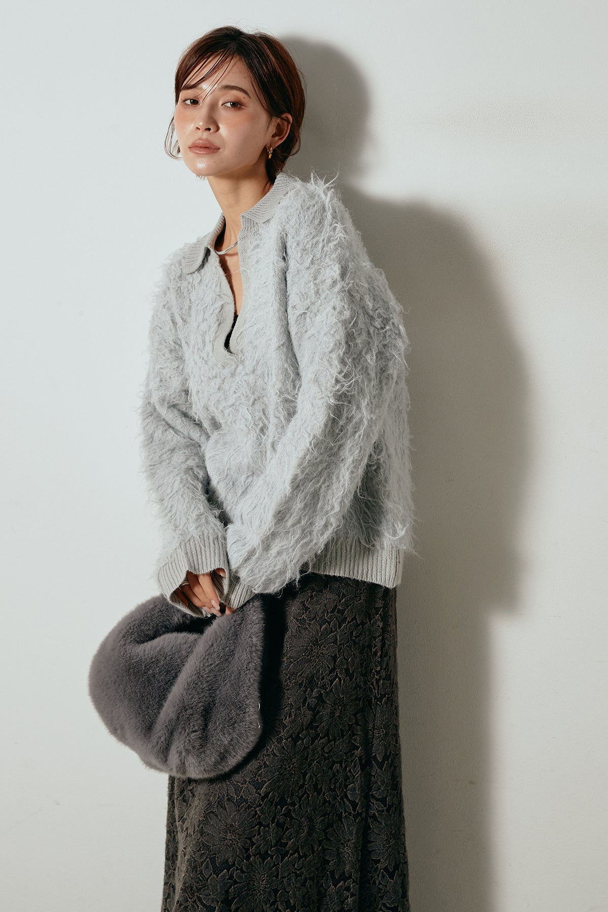ふんわりとしたシャギー素材が目を惹くニットポロトップス。柔らかな質感がシーズンらしい温もりを感じさせ、程よいボリューム感の袖がこなれた印象をプラスします。襟付きデザインで顔まわりをすっきり見せつつ、カジュアルにも上品にも着こなせる一枚。スカートにもパンツにも合わせやすく、幅広いスタイリングを楽しめます。