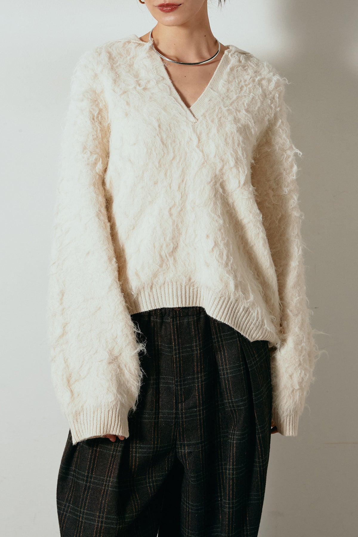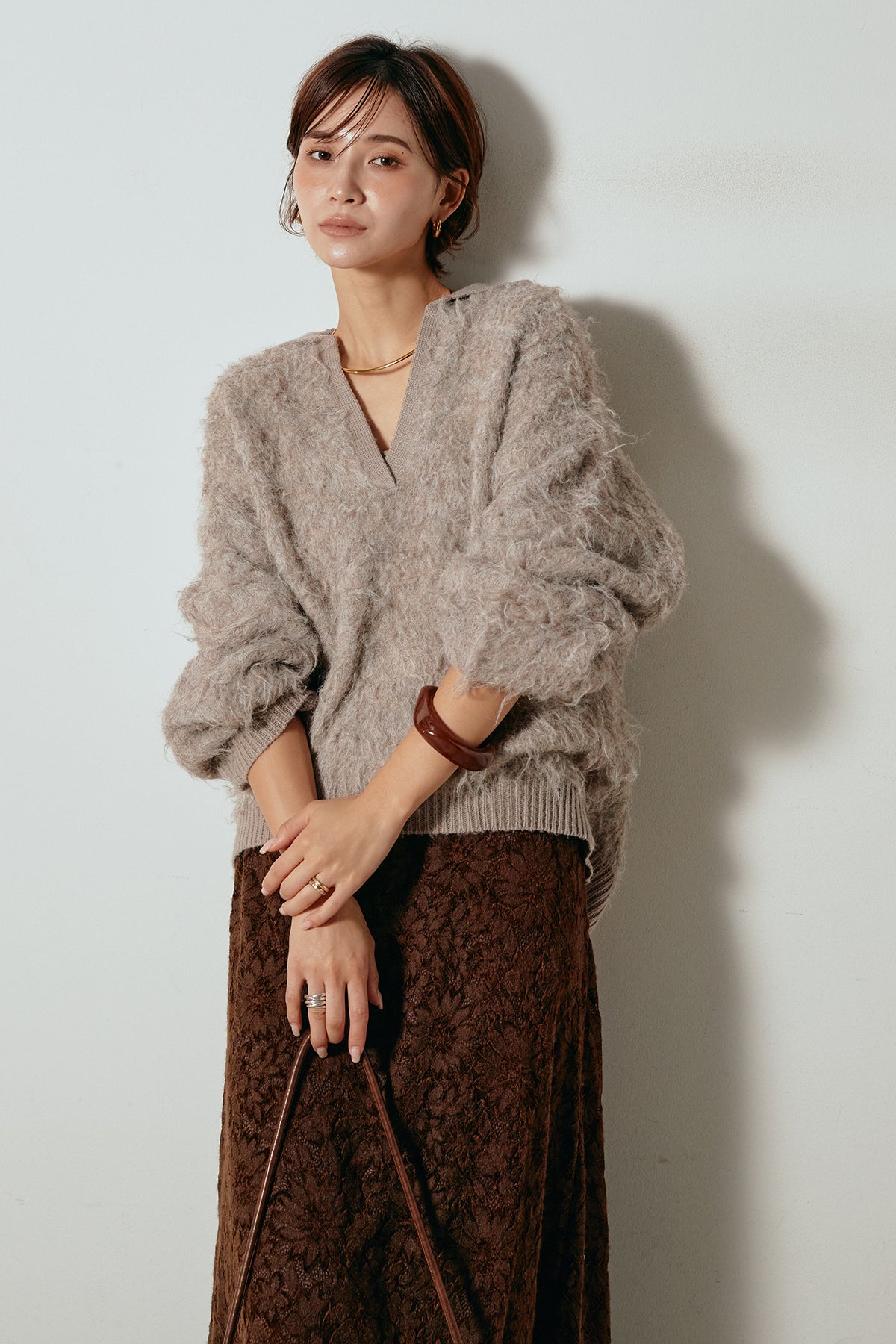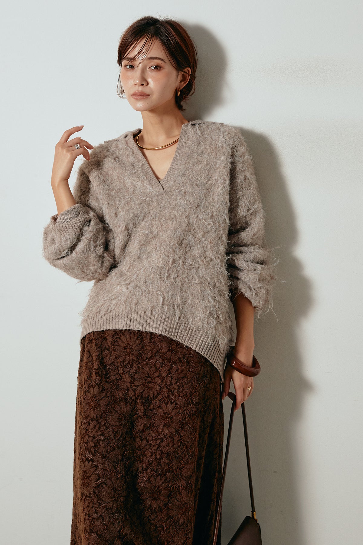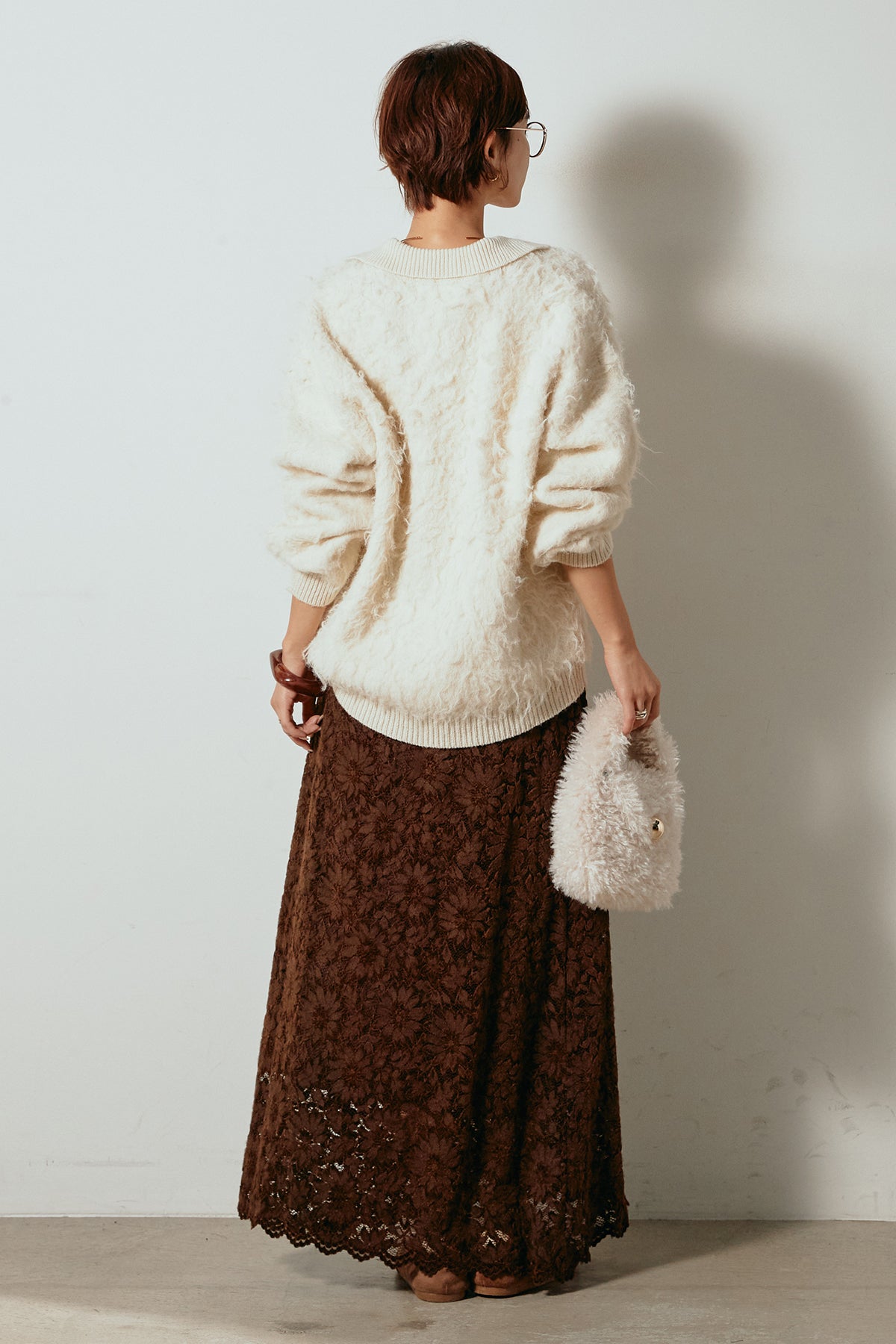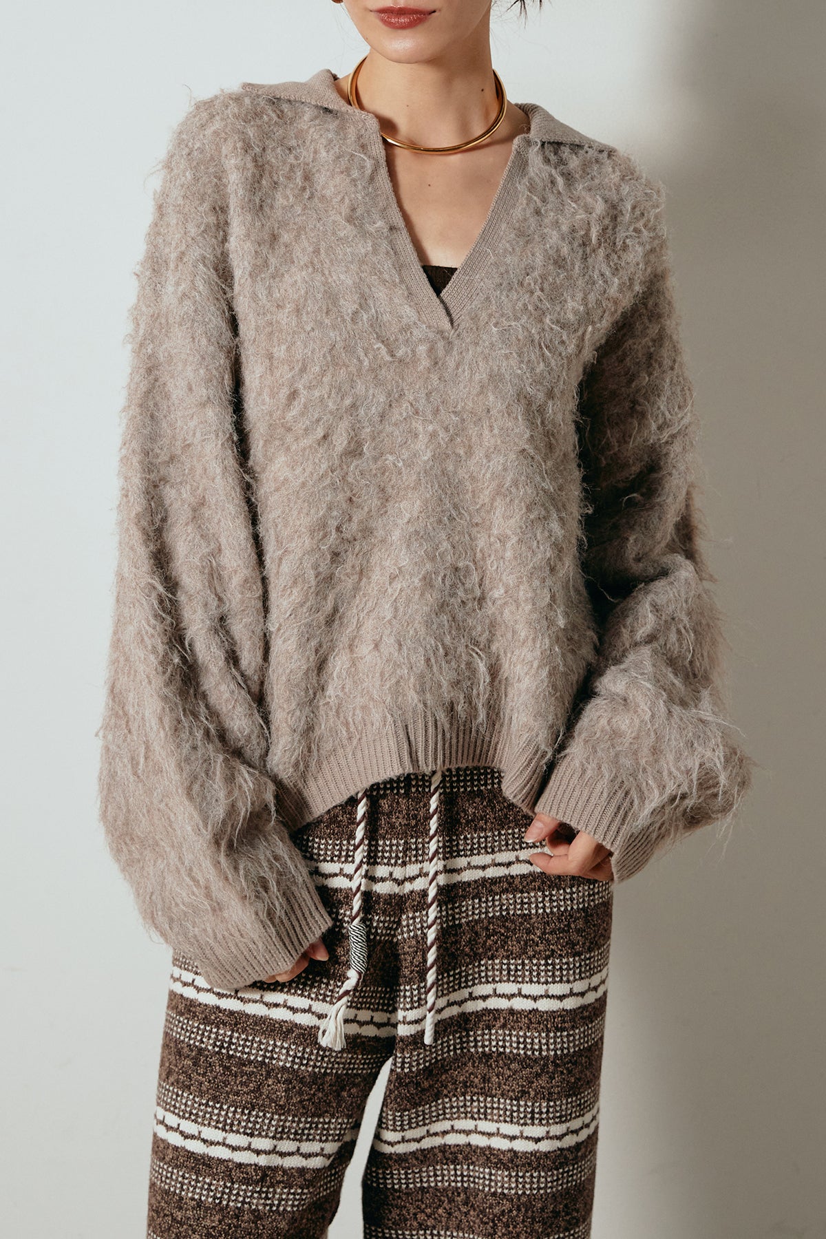 ふんわりとしたシャギー素材が目を惹くニットポロトップス。柔らかな質感がシーズンらしい温もりを感じさせ、程よいボリューム感の袖がこなれた印象をプラスします。襟付きデザインで顔まわりをすっきり見せつつ、カジュアルにも上品にも着こなせる一枚。スカートにもパンツにも合わせやすく、幅広いスタイリングを楽しめます。