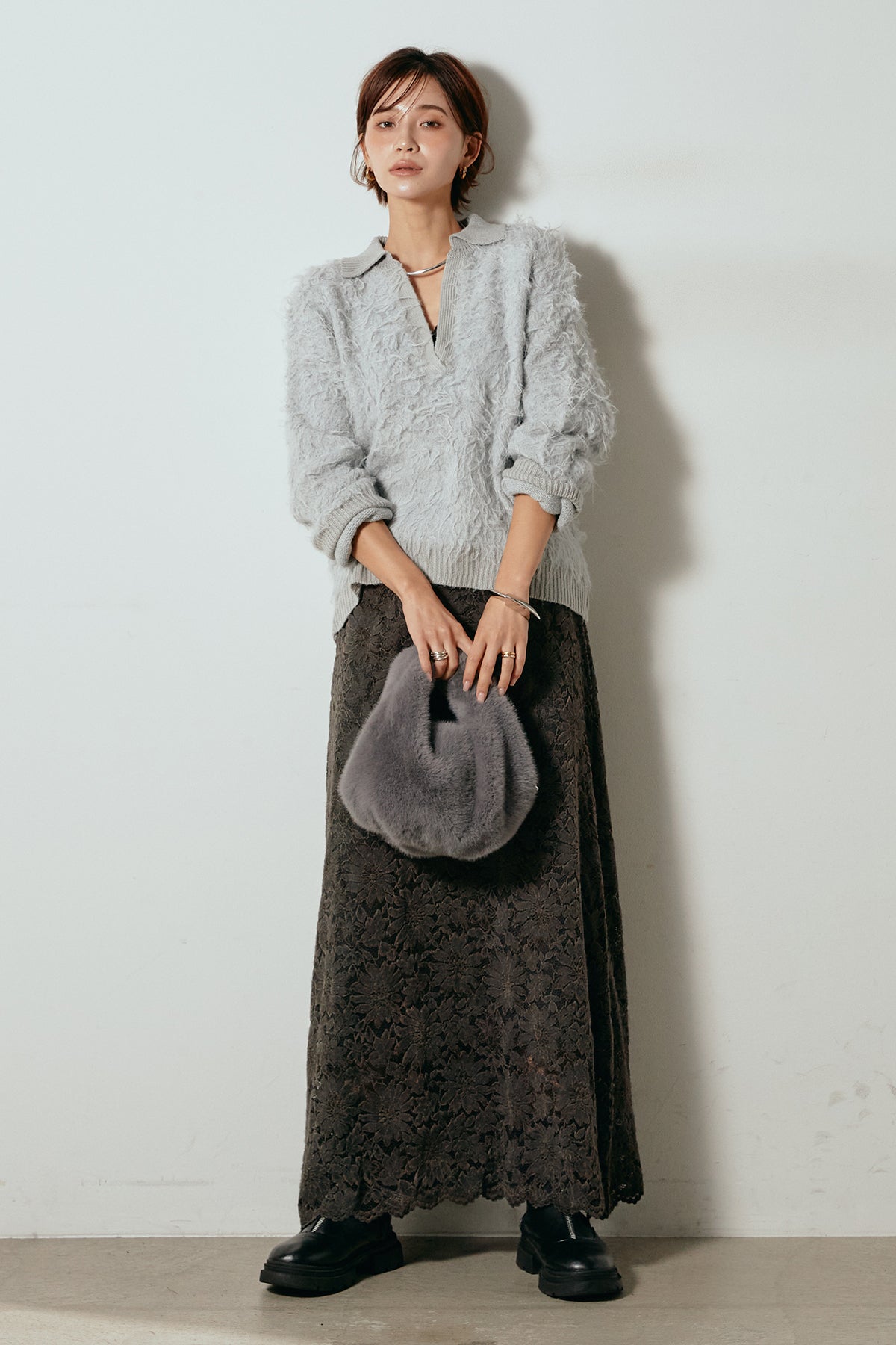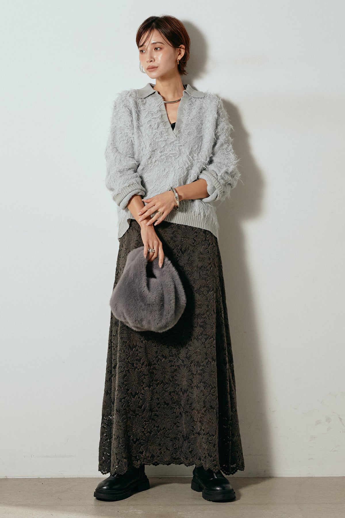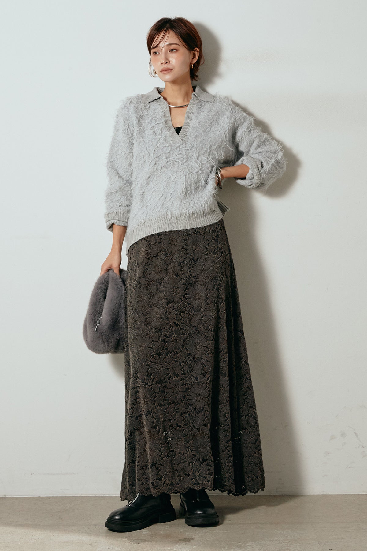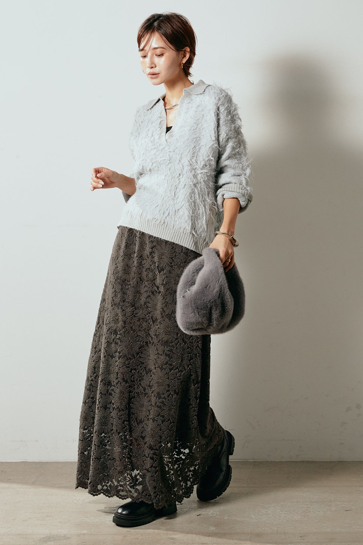 襟付きシャギーニットポロトップスの他のセットページはこちら