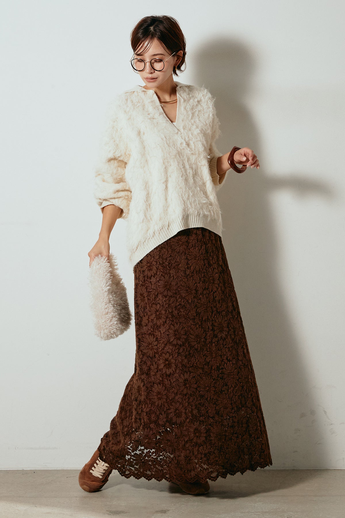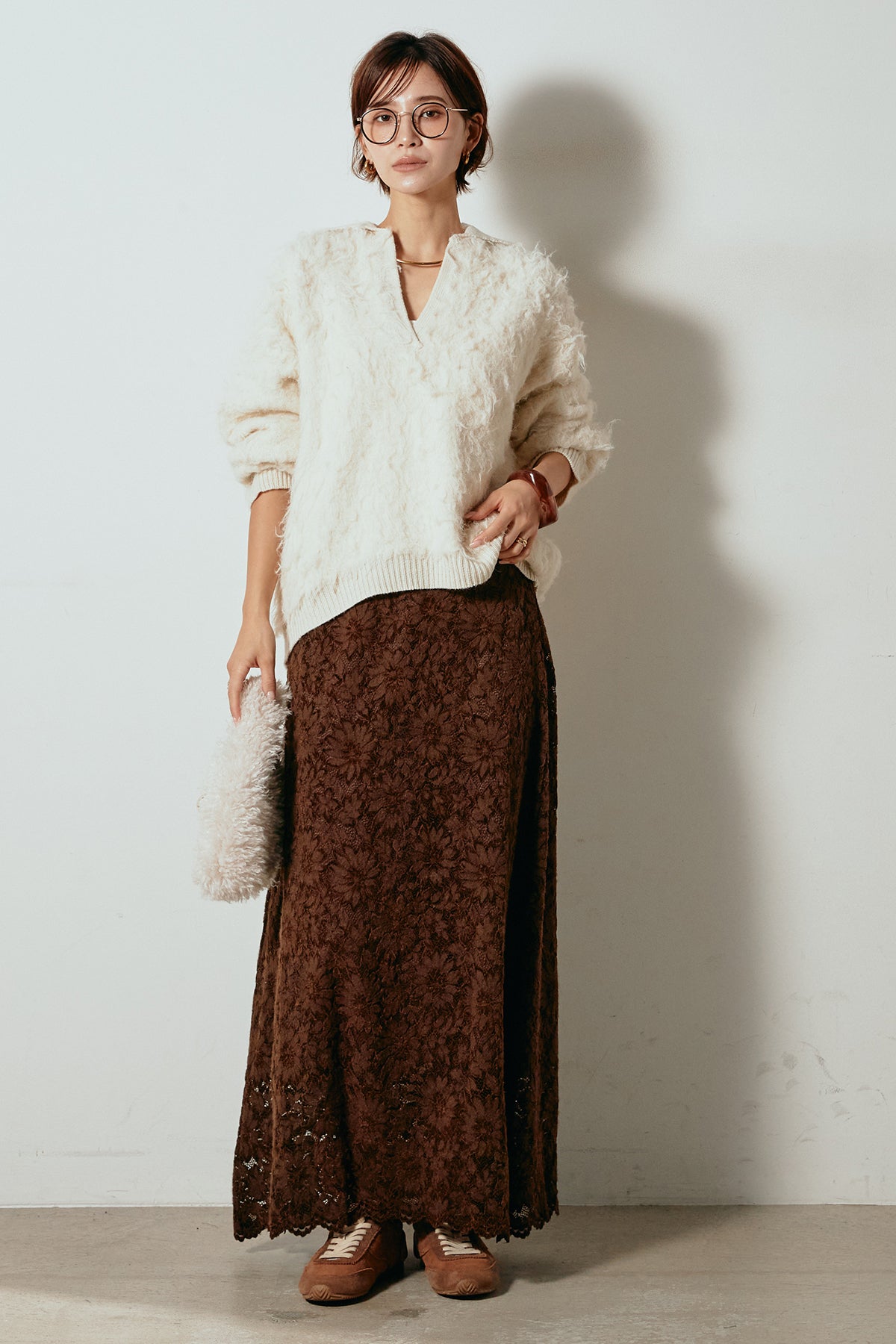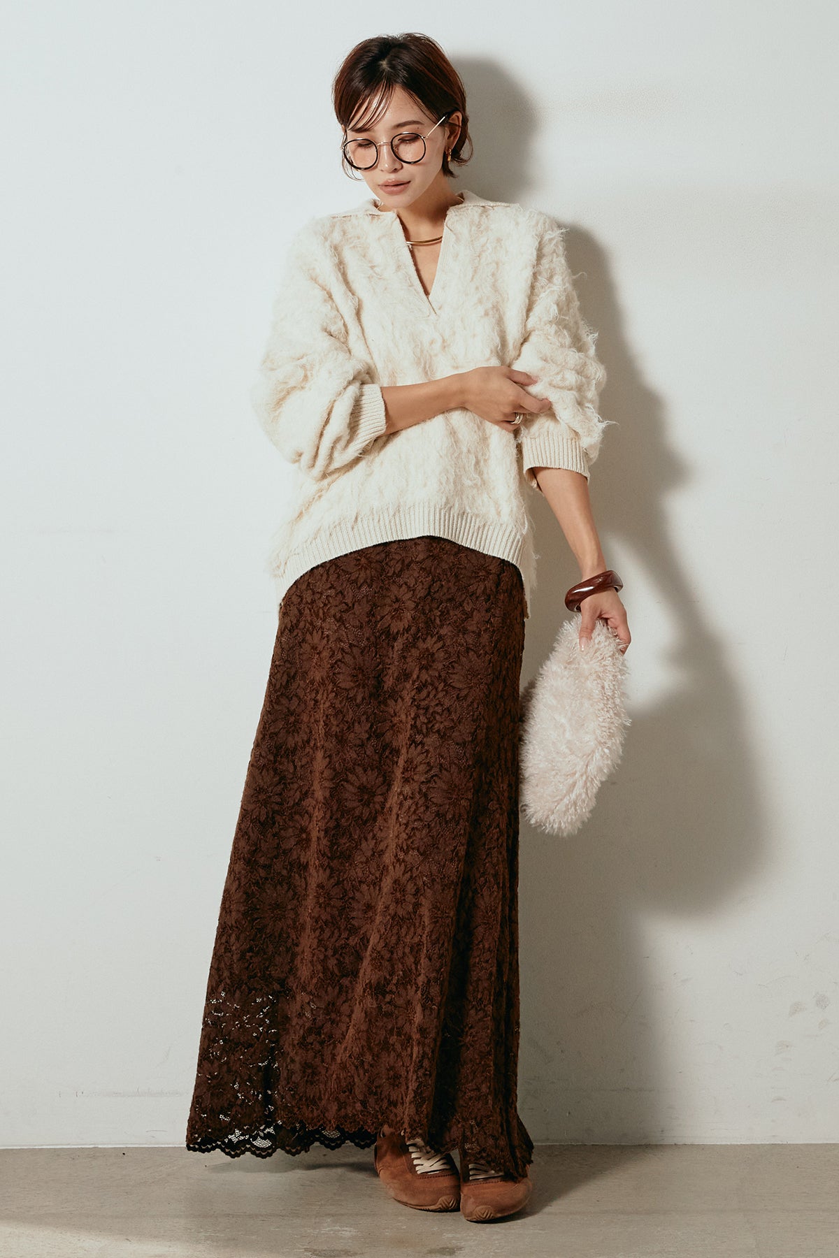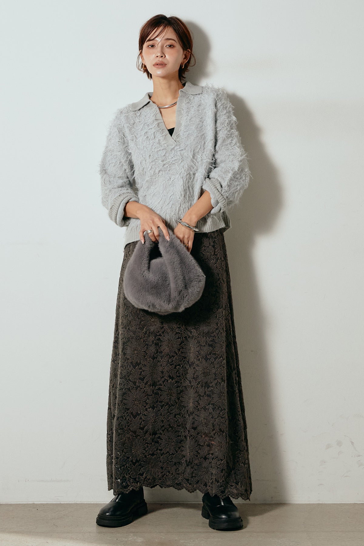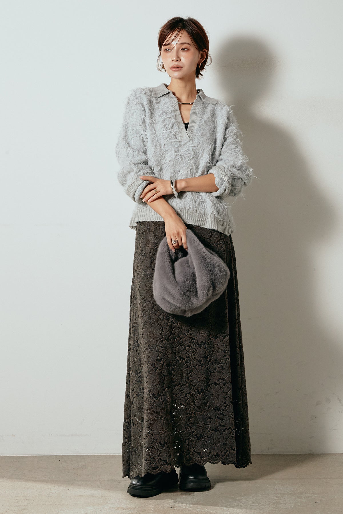 襟付きシャギーニットポロトップスの他のセットページはこちら