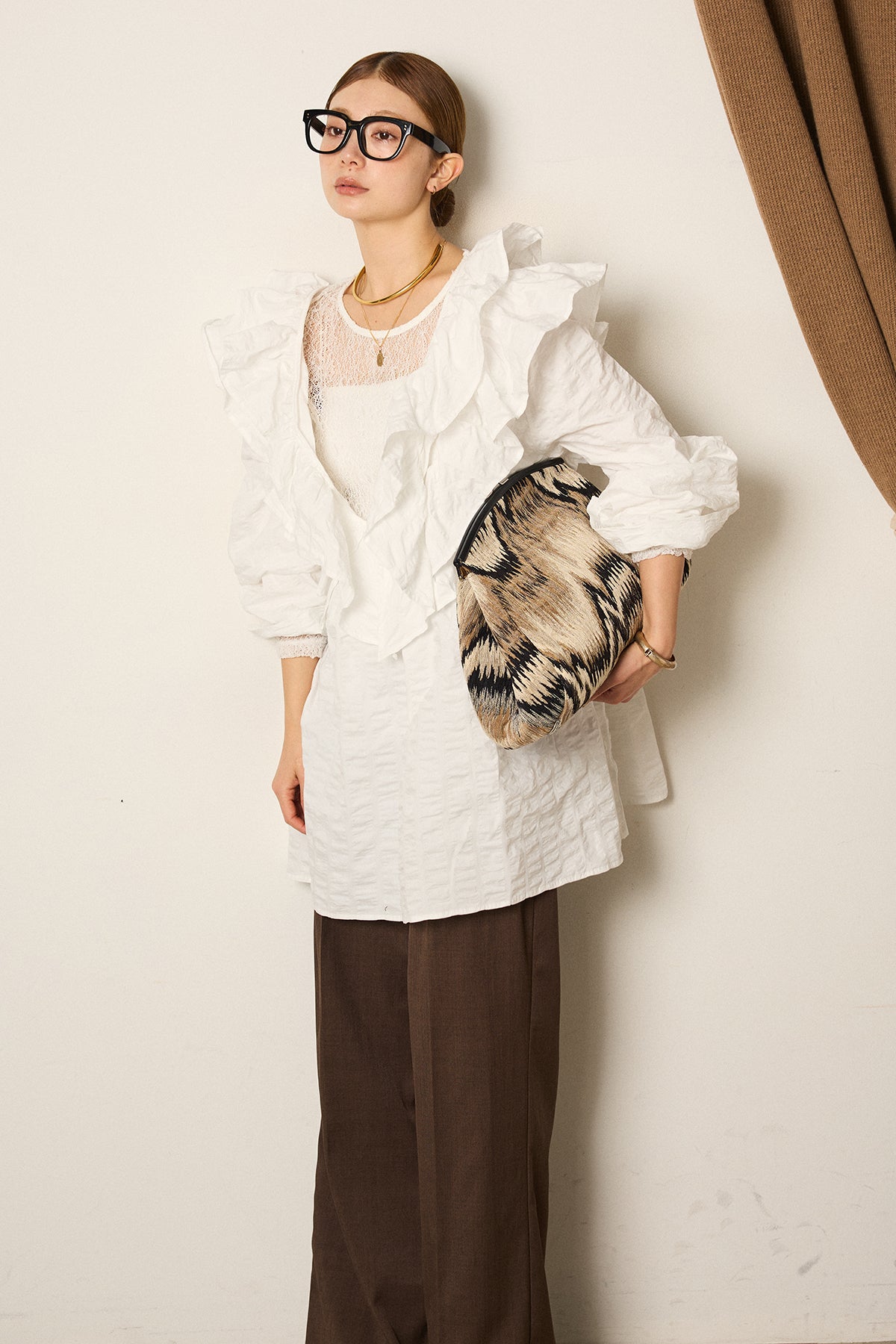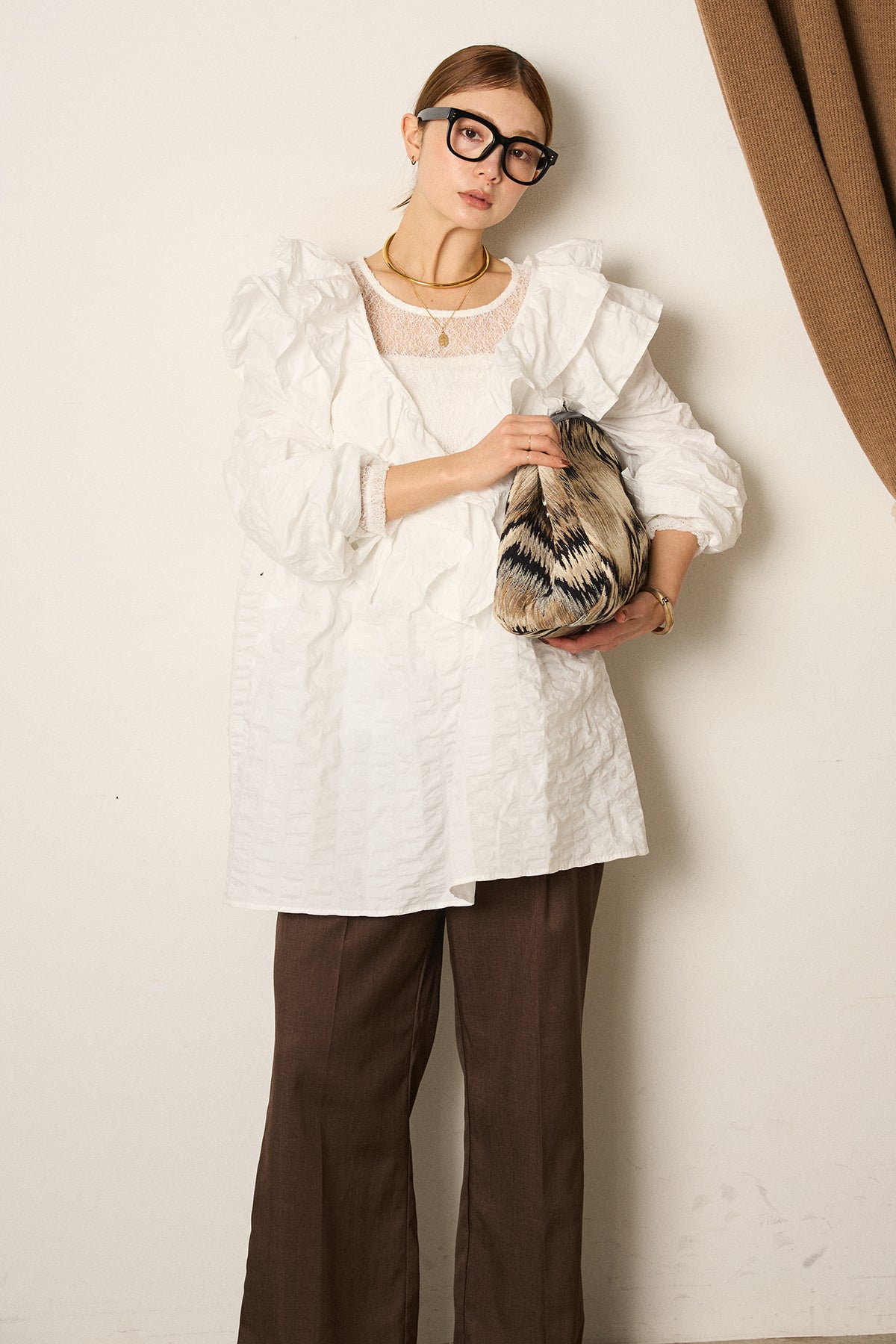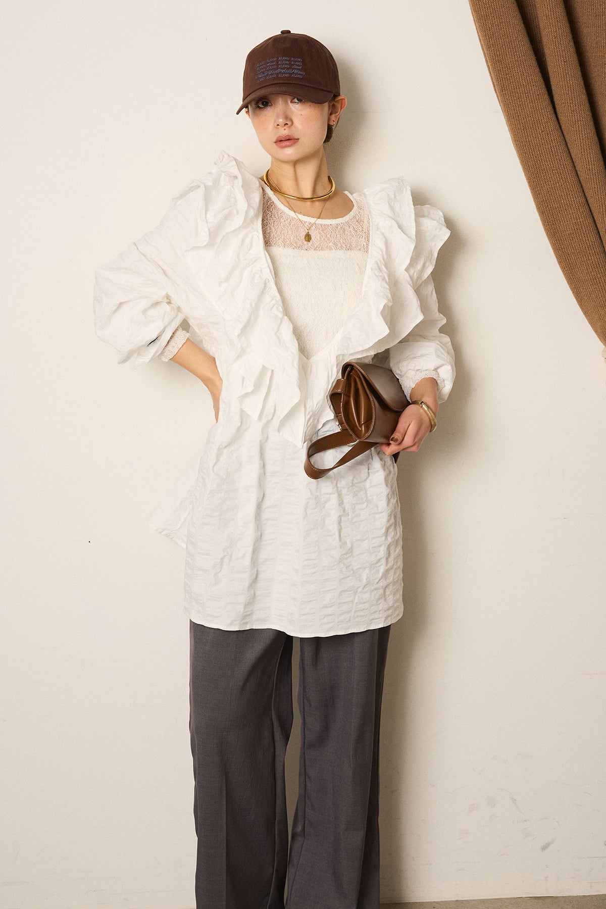 Vネックフリルカラーブラウスの他のセットページはこちら