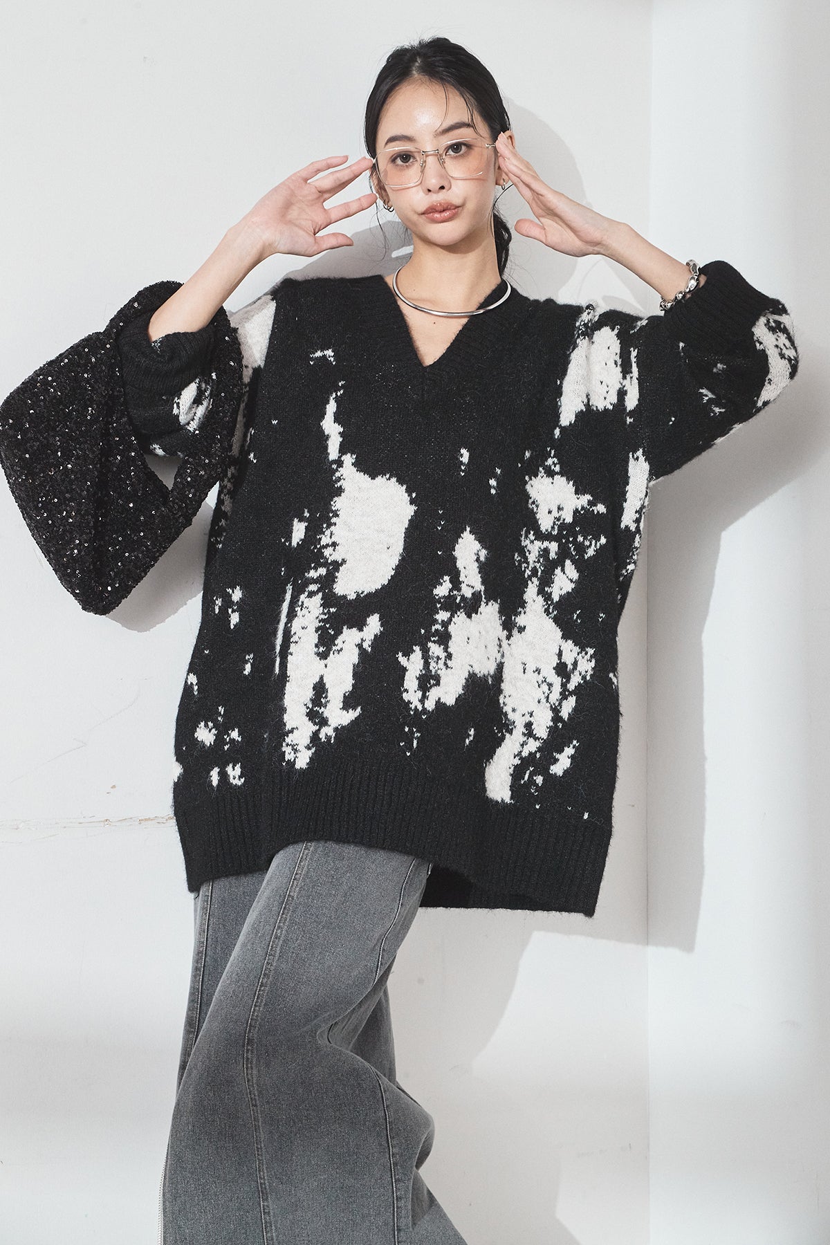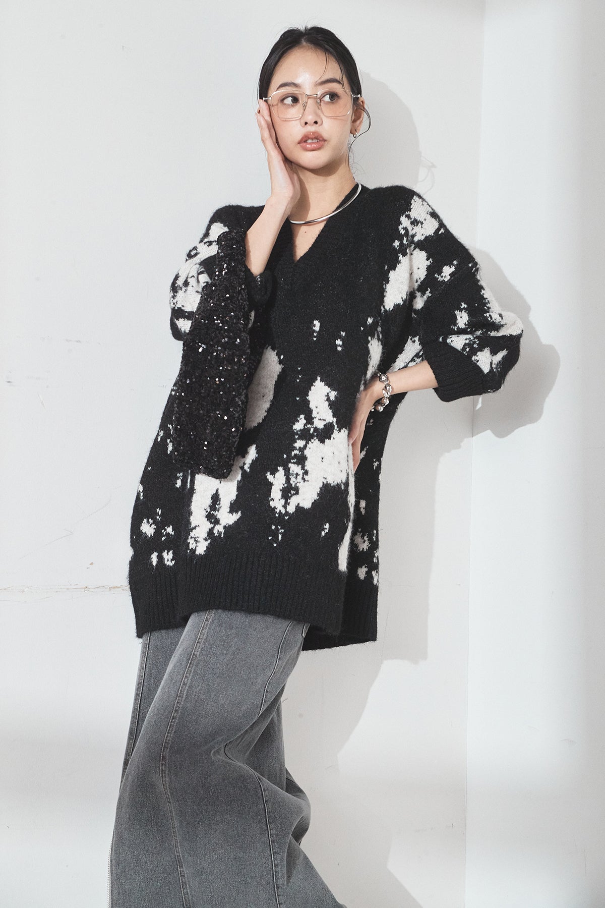 アブストラクト柄ニットプルオーバーの他のセットページはこちら