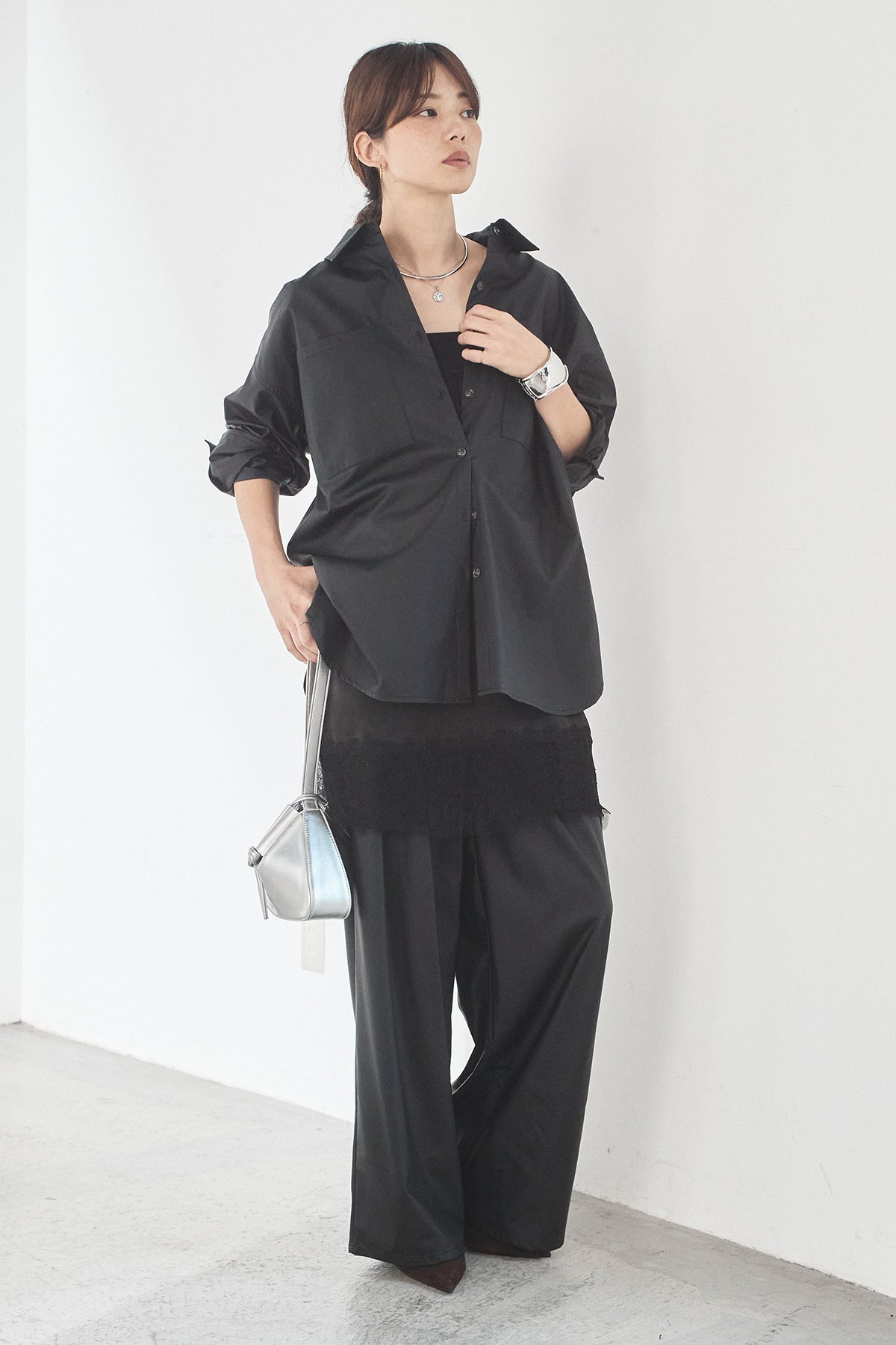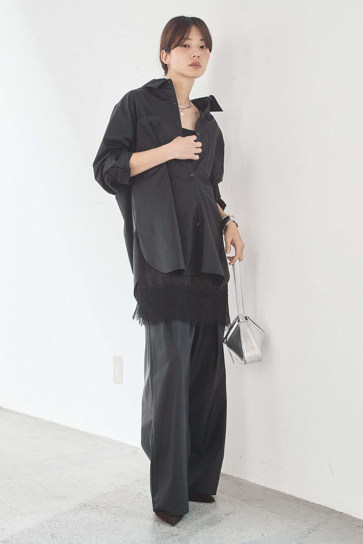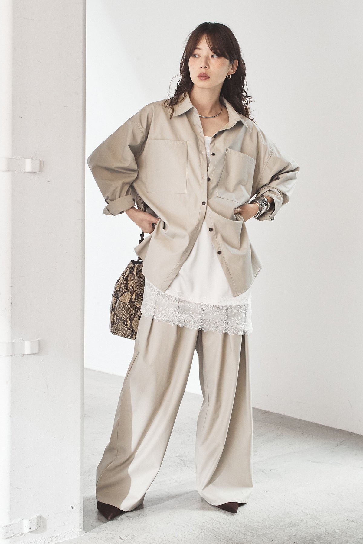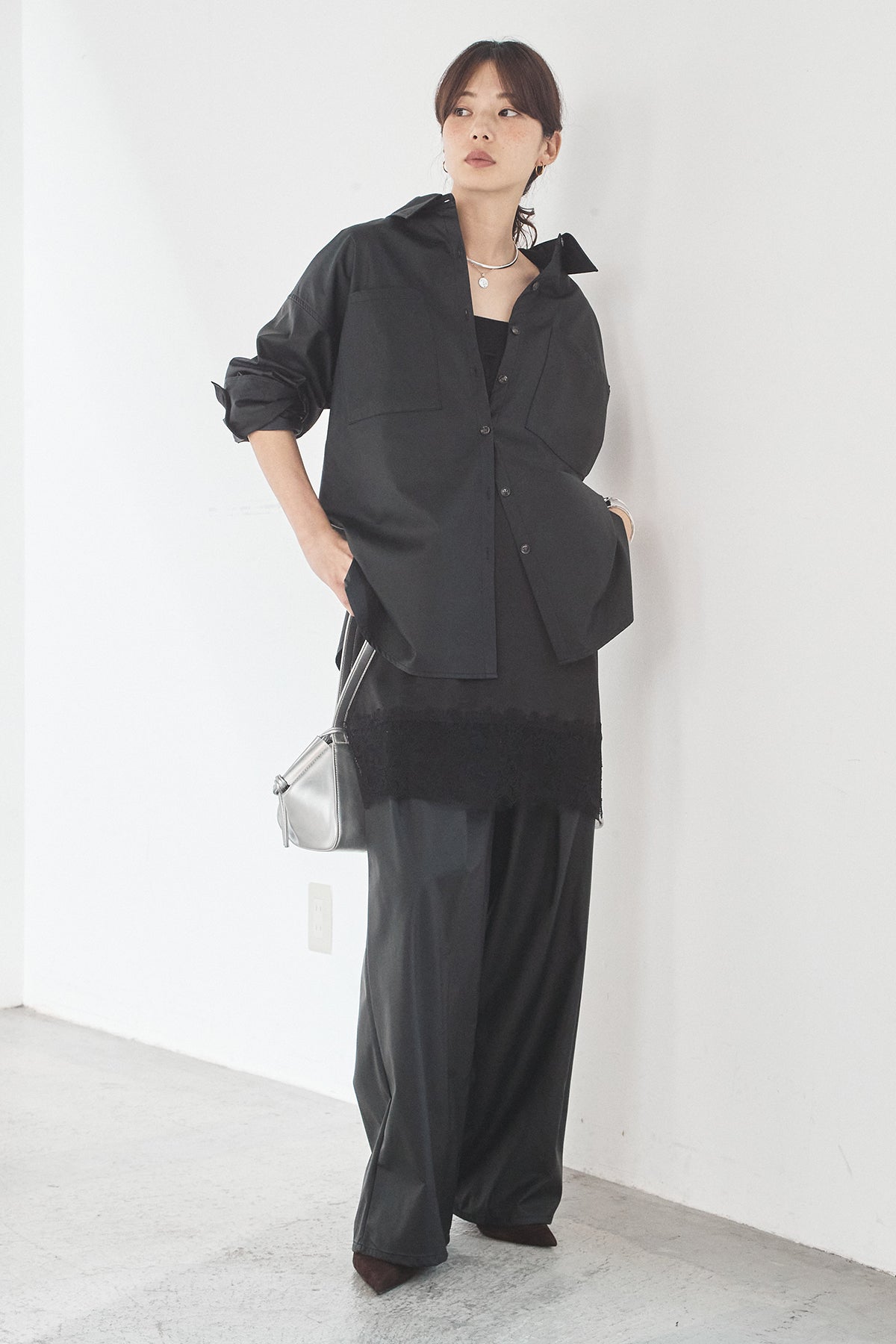 [SET]ウォッシャブルエコレザービックカフスシャツ+ウォッシャブルエコレザータックパンツ(2set)