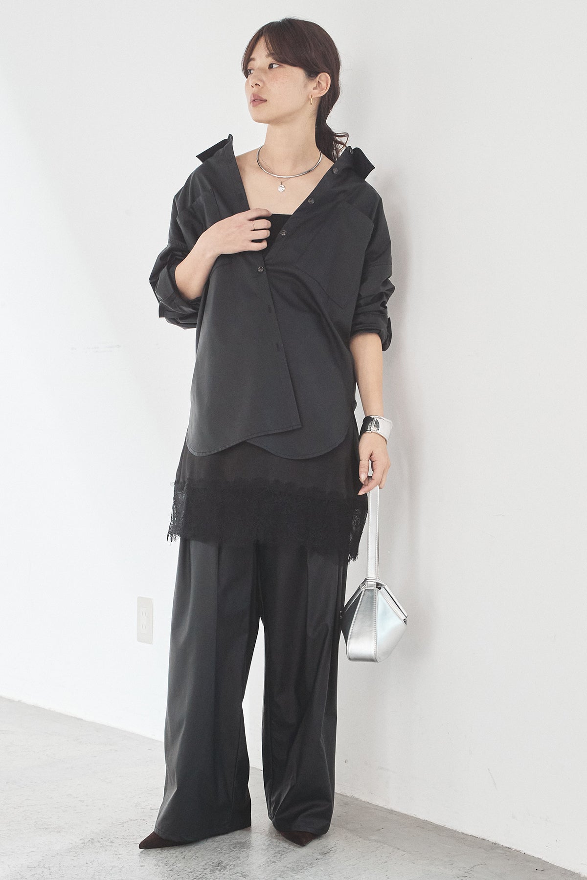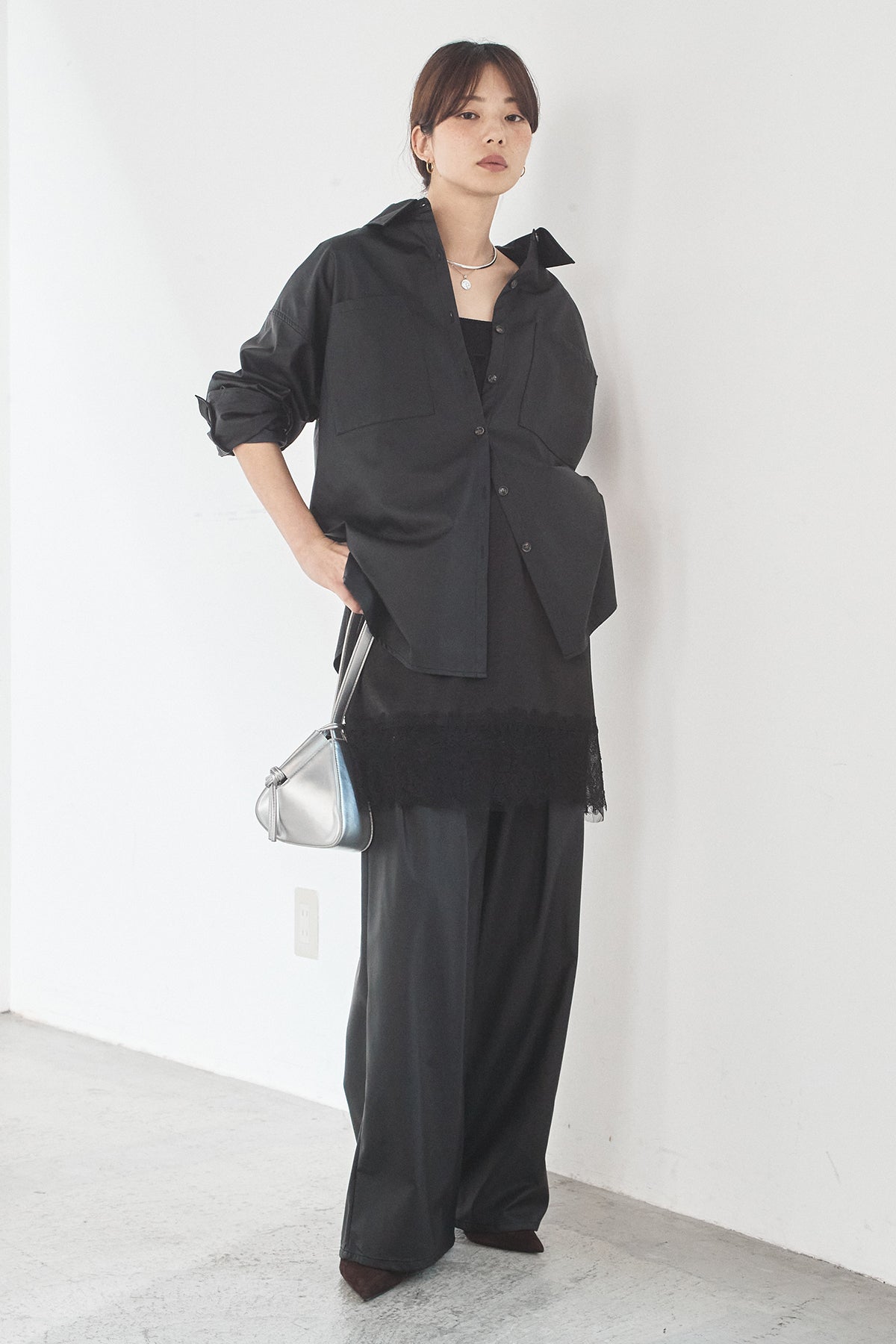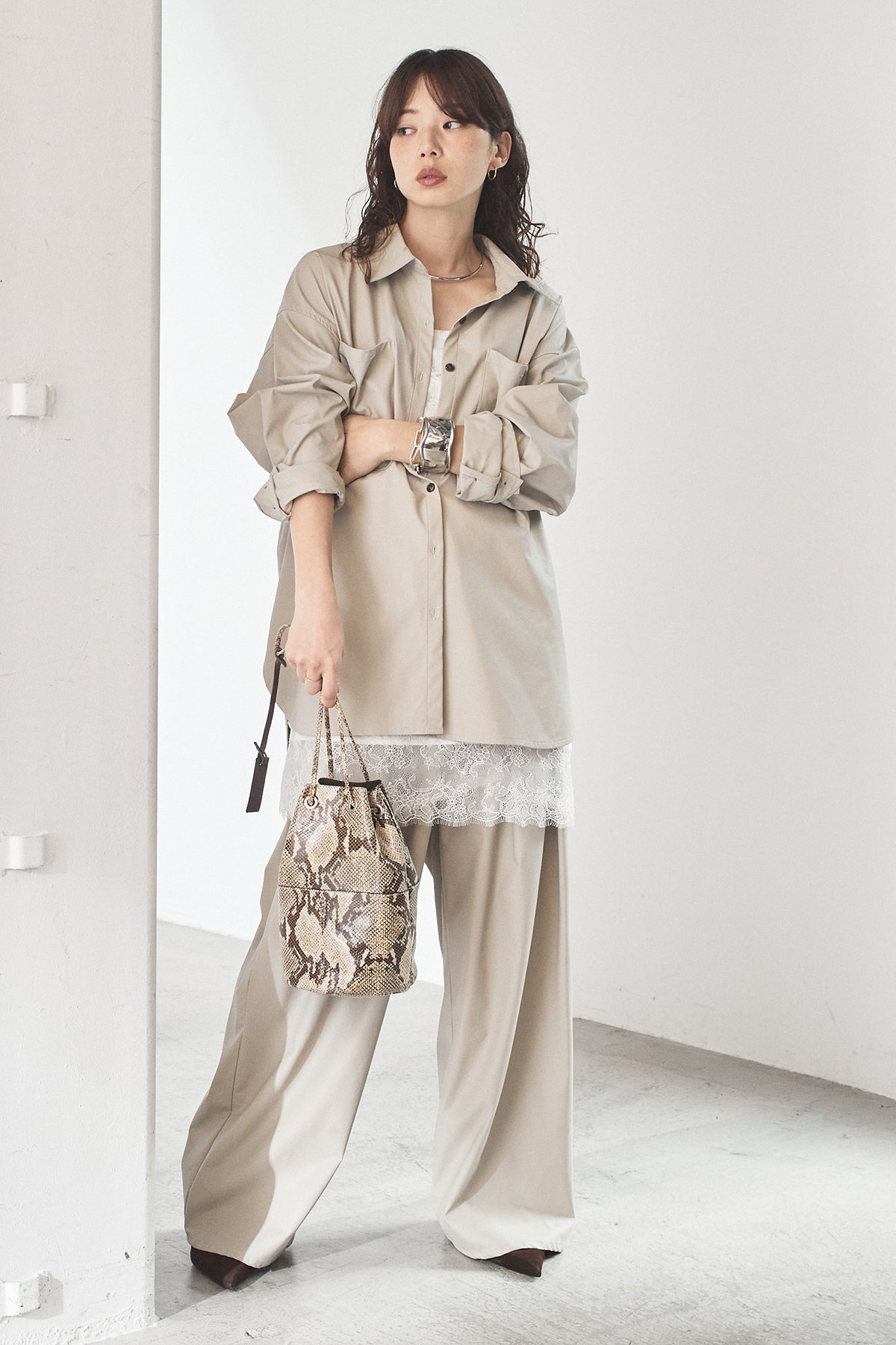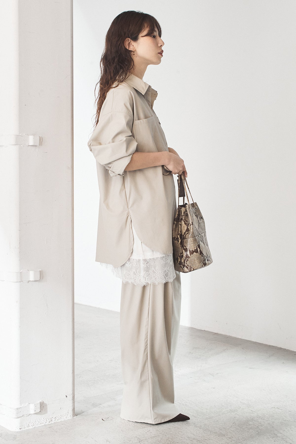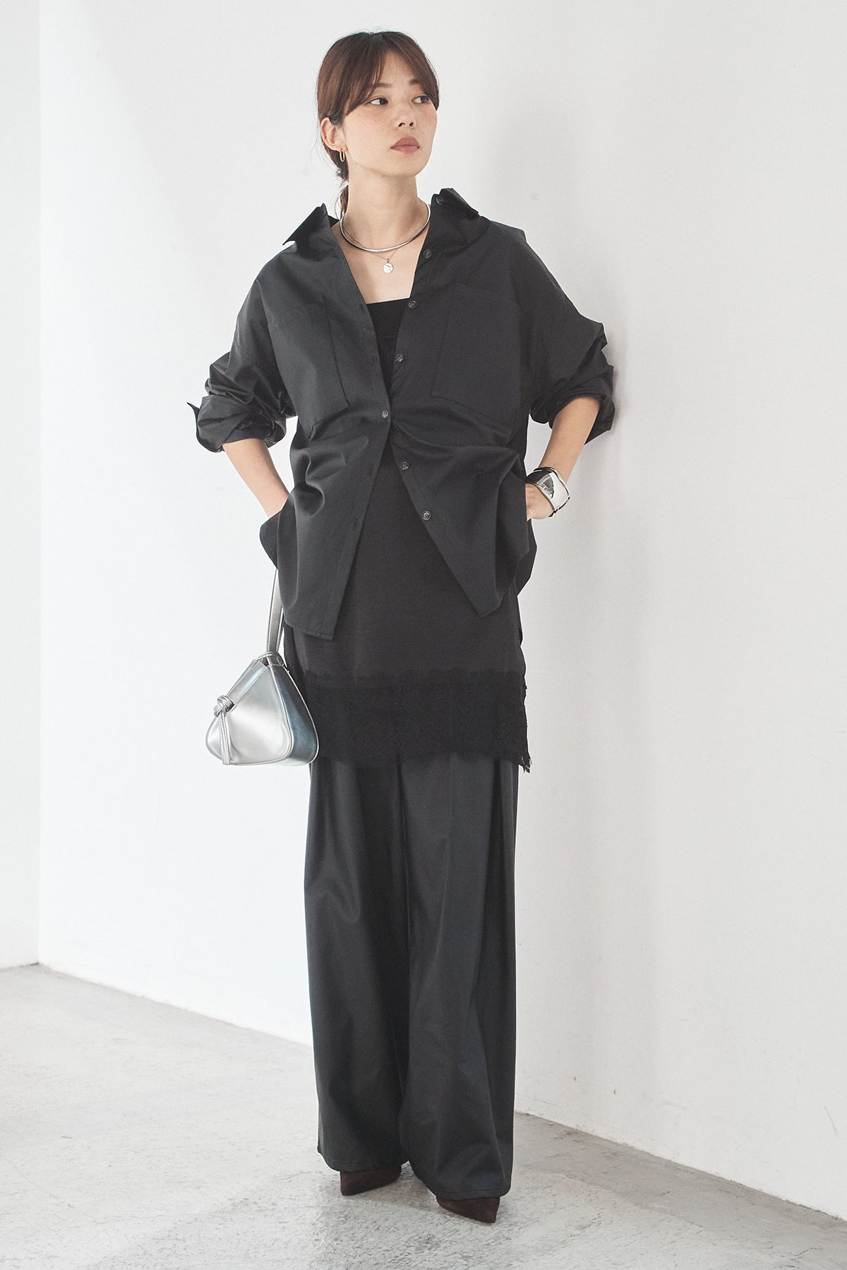 [SET]ウォッシャブルエコレザービックカフスシャツ+ウォッシャブルエコレザータックパンツ(2set)