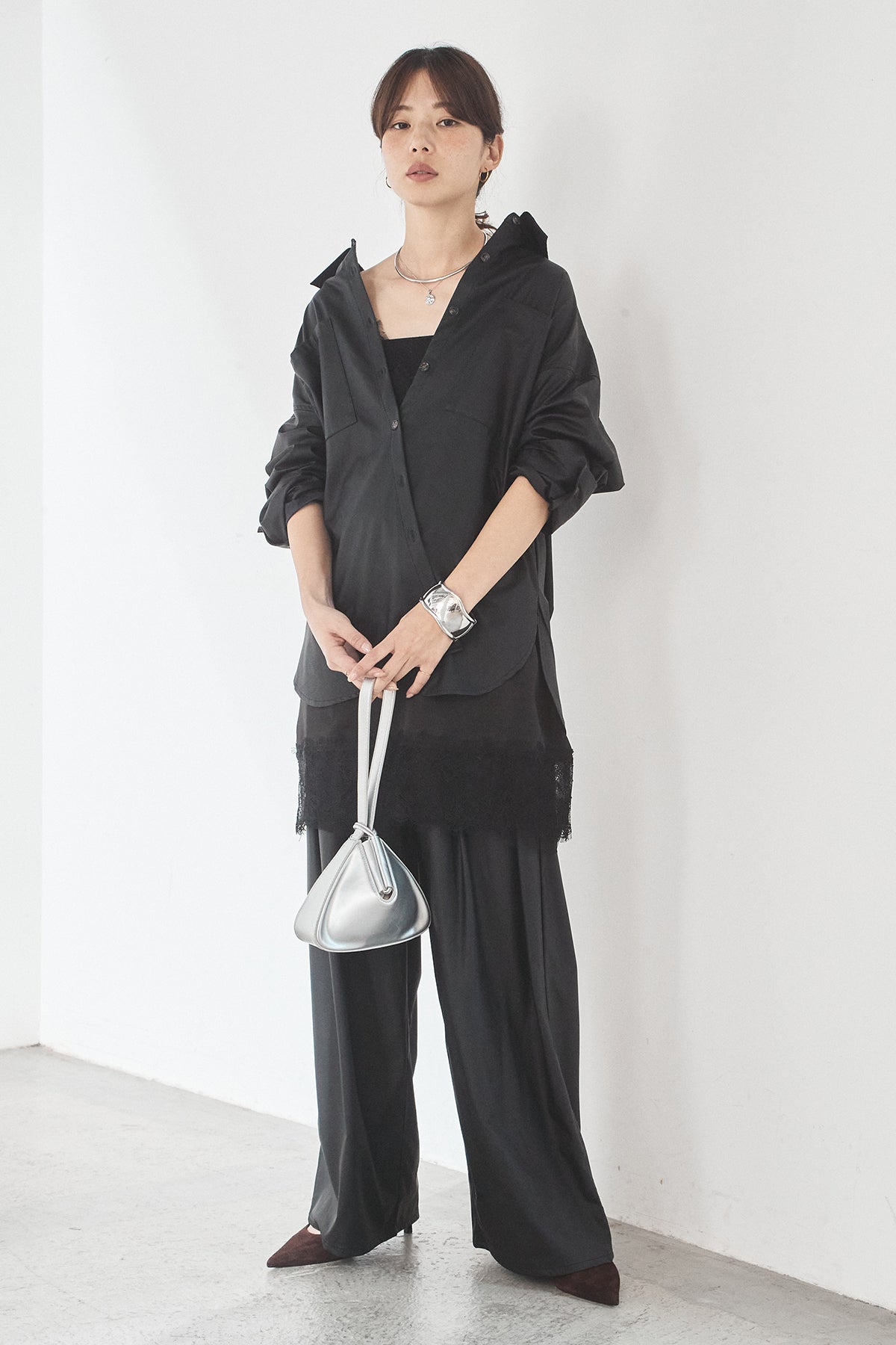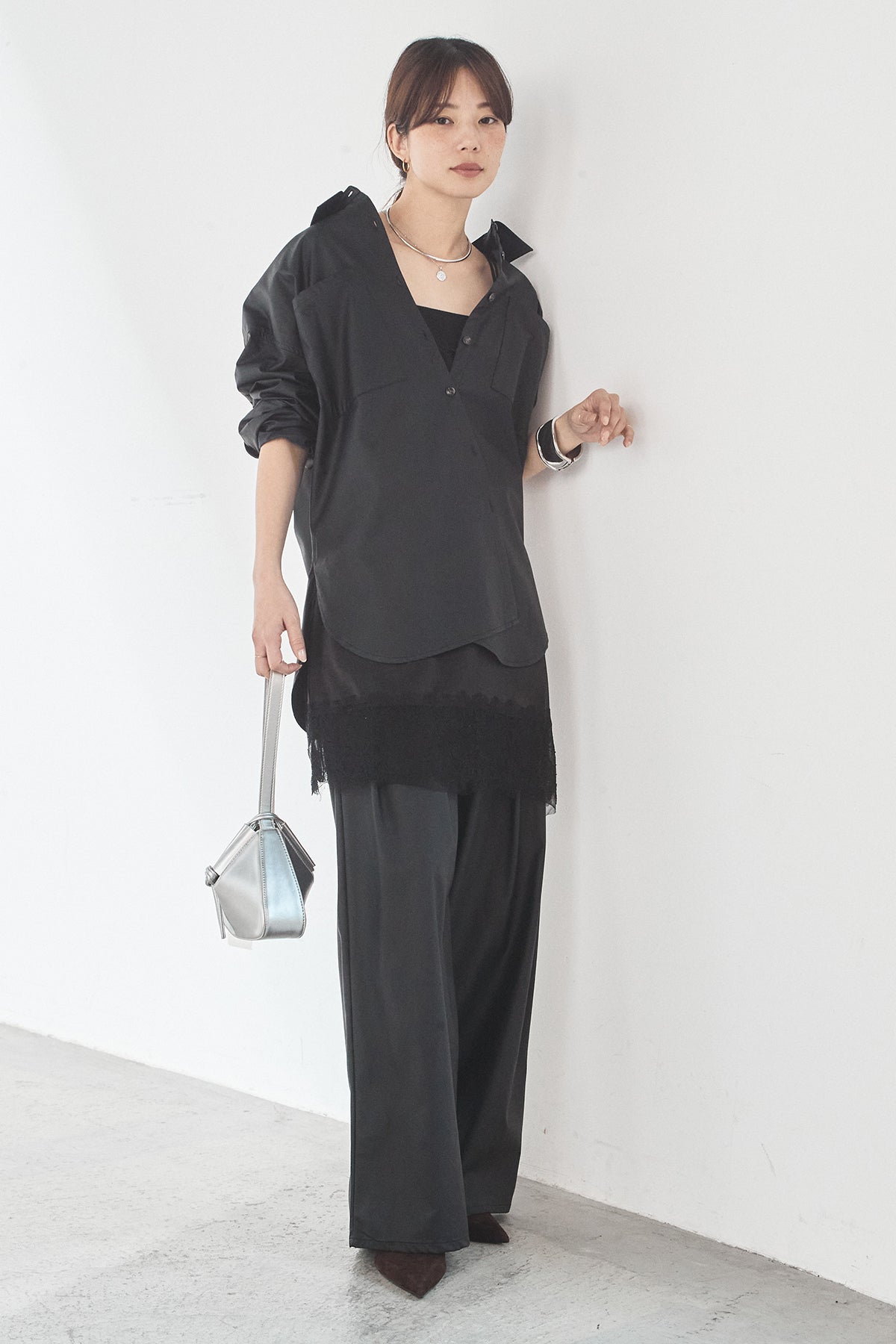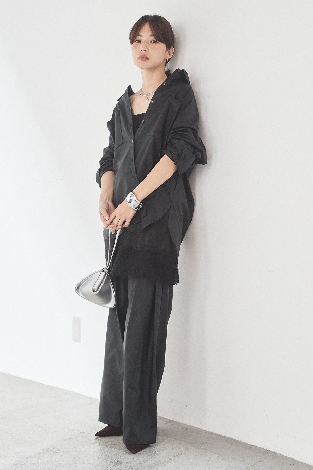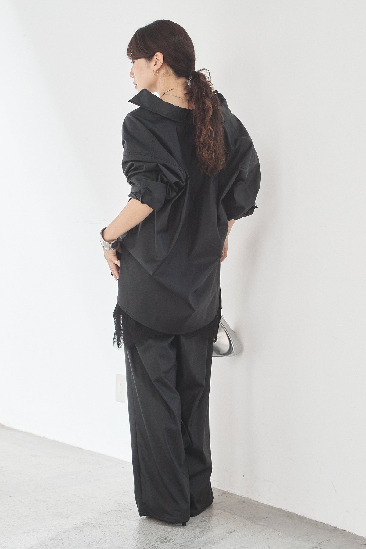 [SET]ウォッシャブルエコレザービックカフスシャツ+ウォッシャブルエコレザータックパンツ(2set)