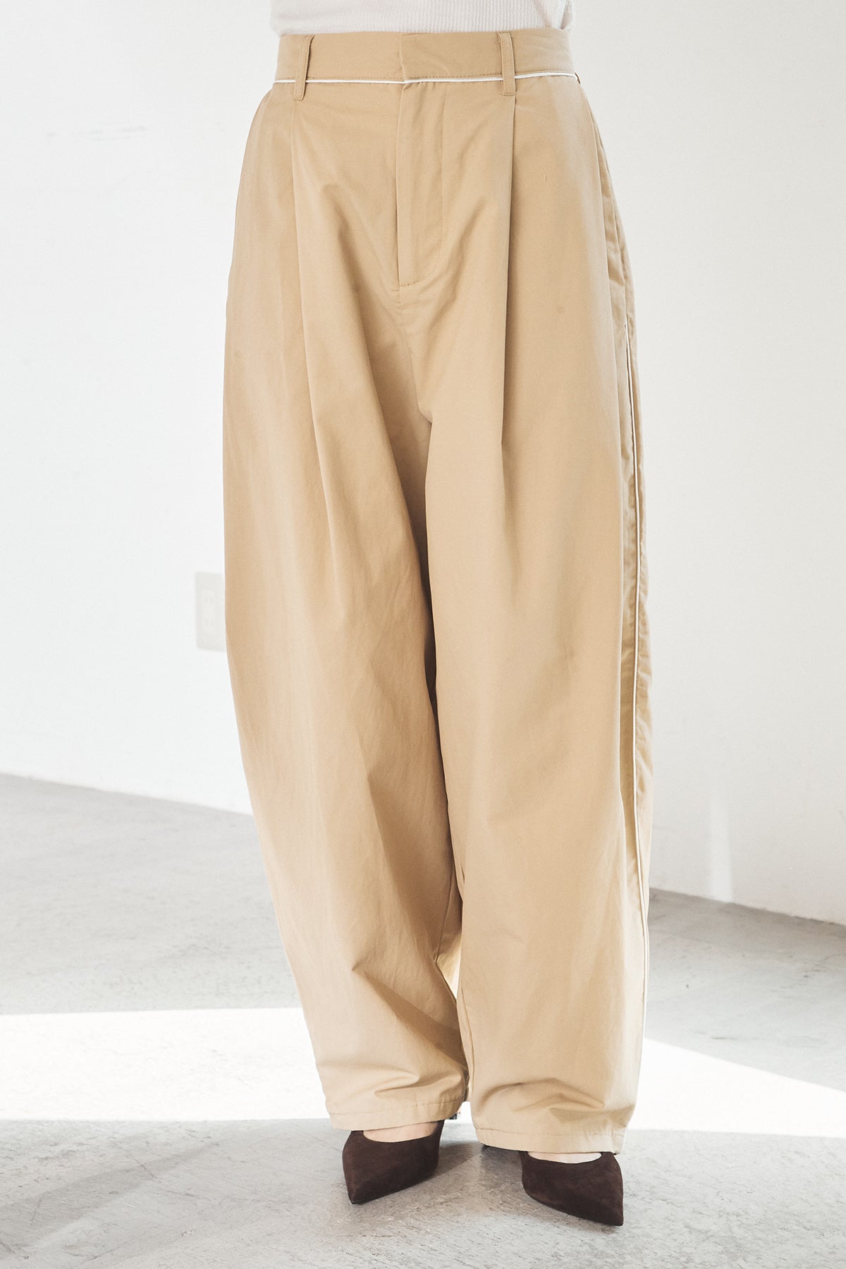 合繊ツイルパイピングタックカーブパンツ