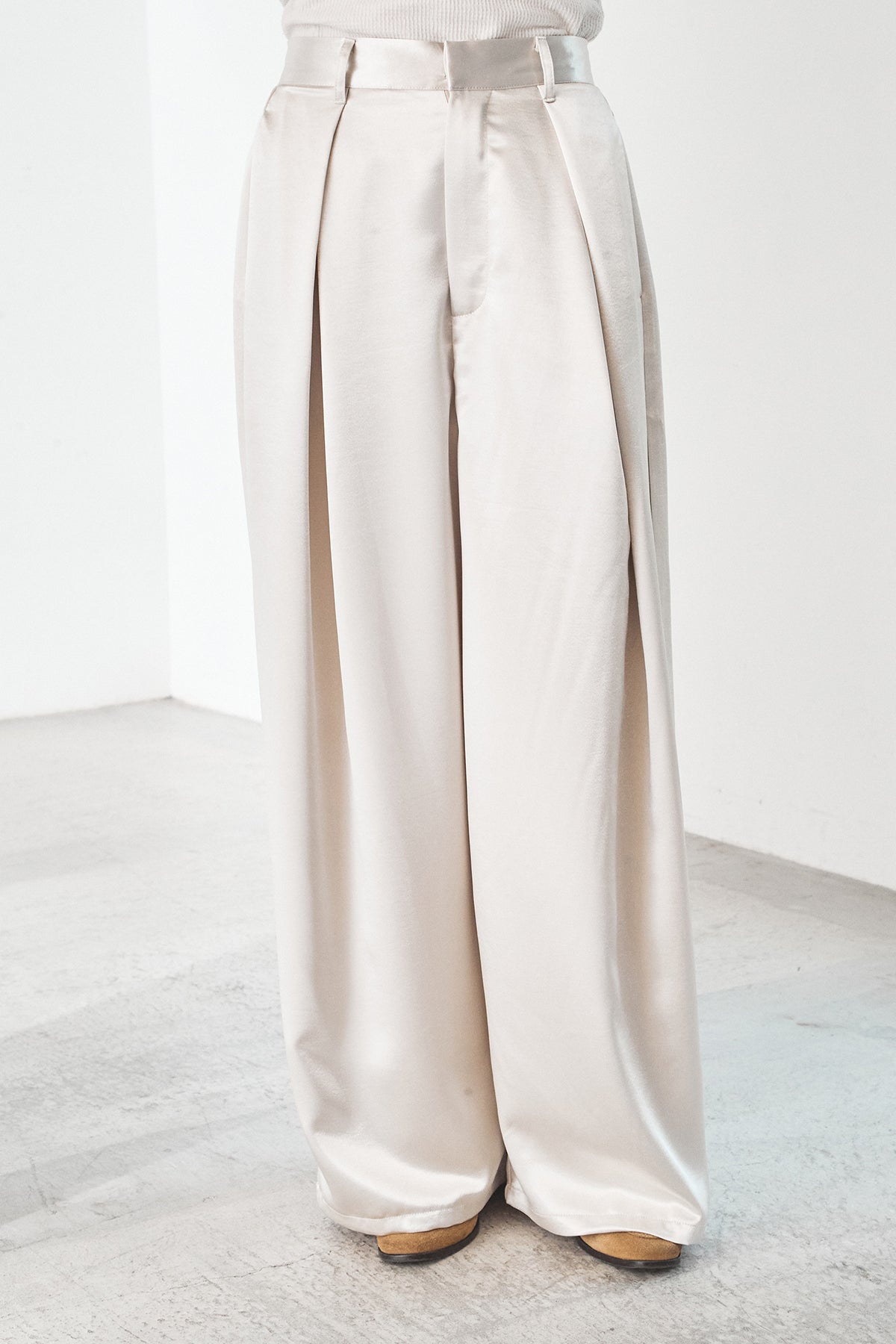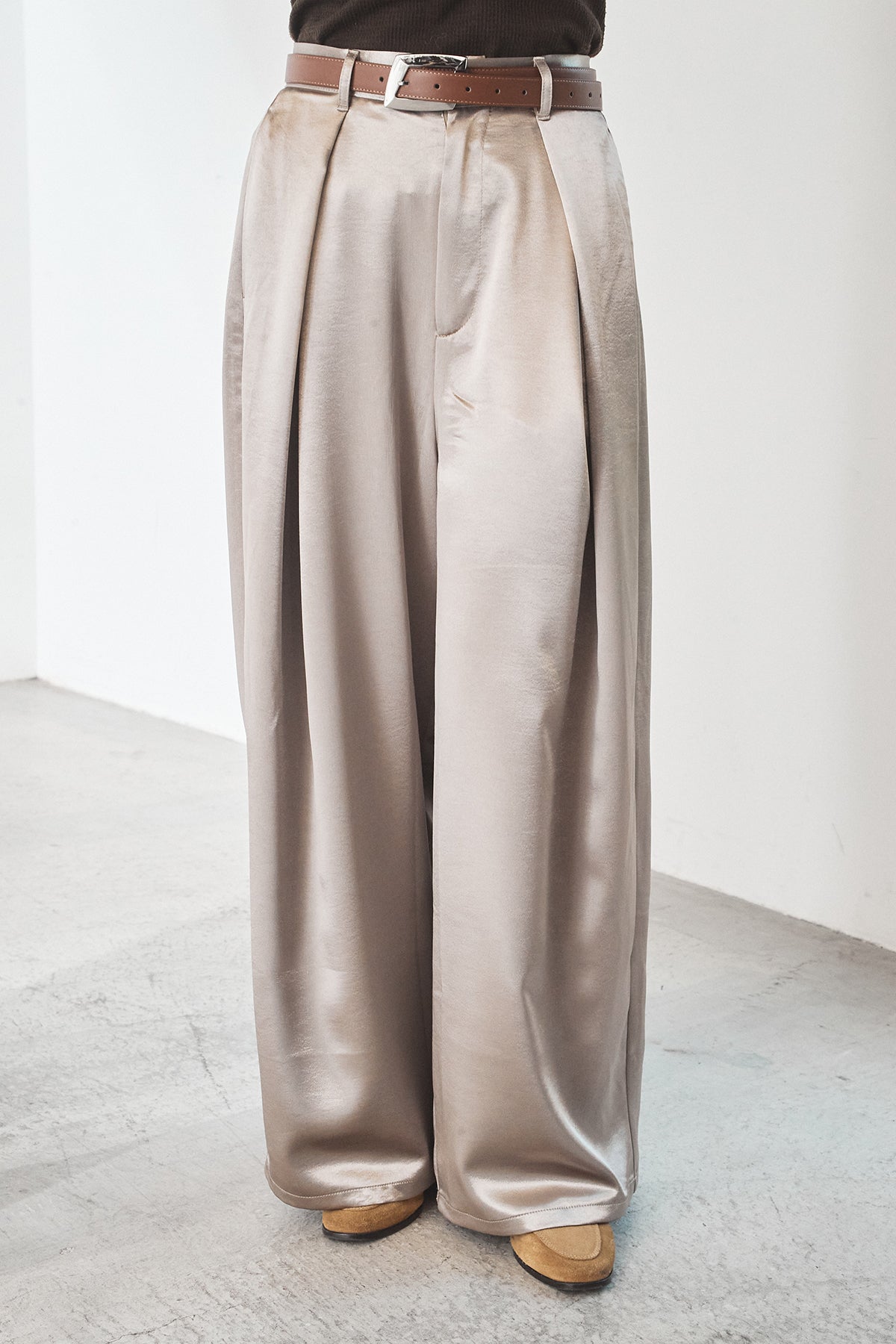 サテンタックワイドパンツ