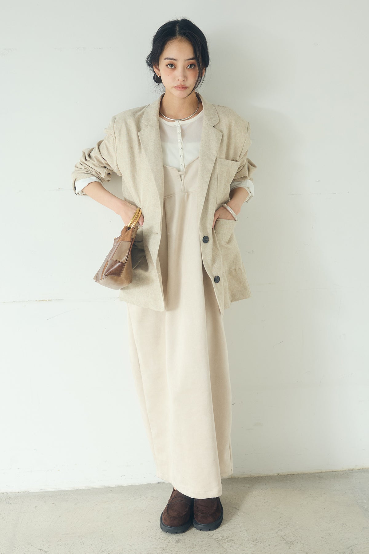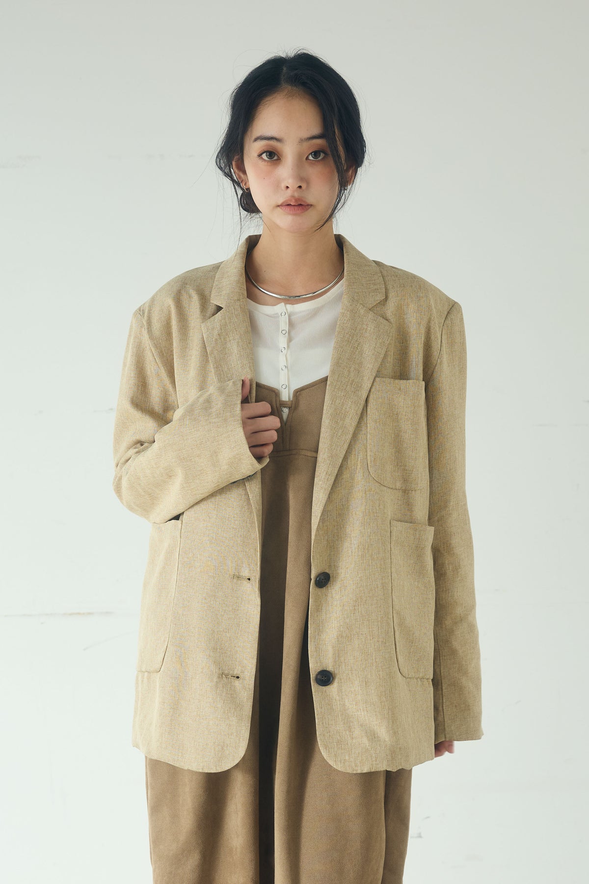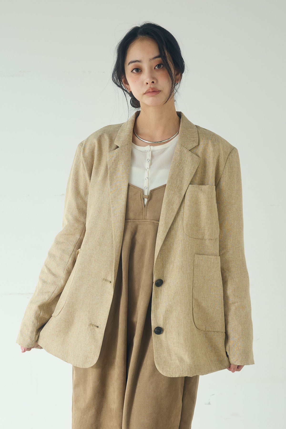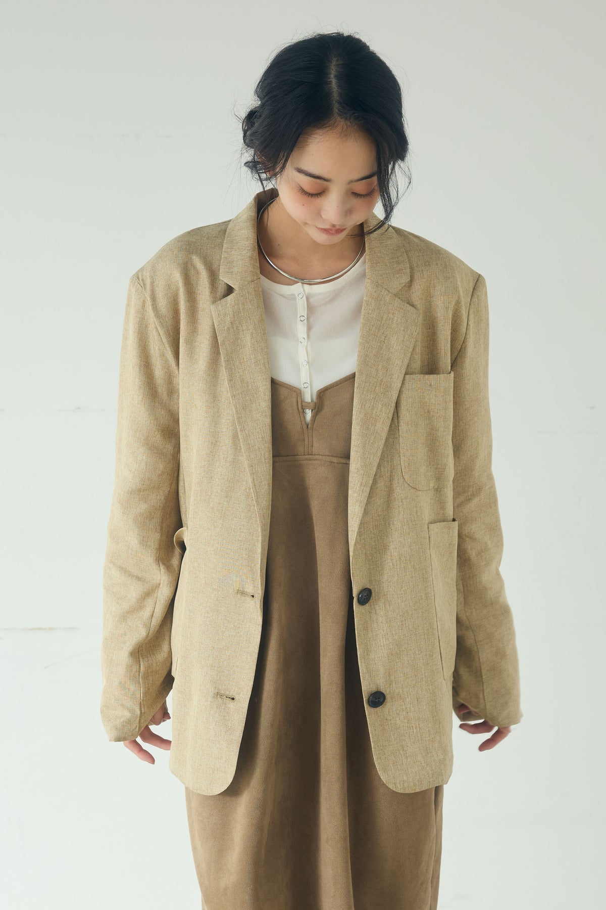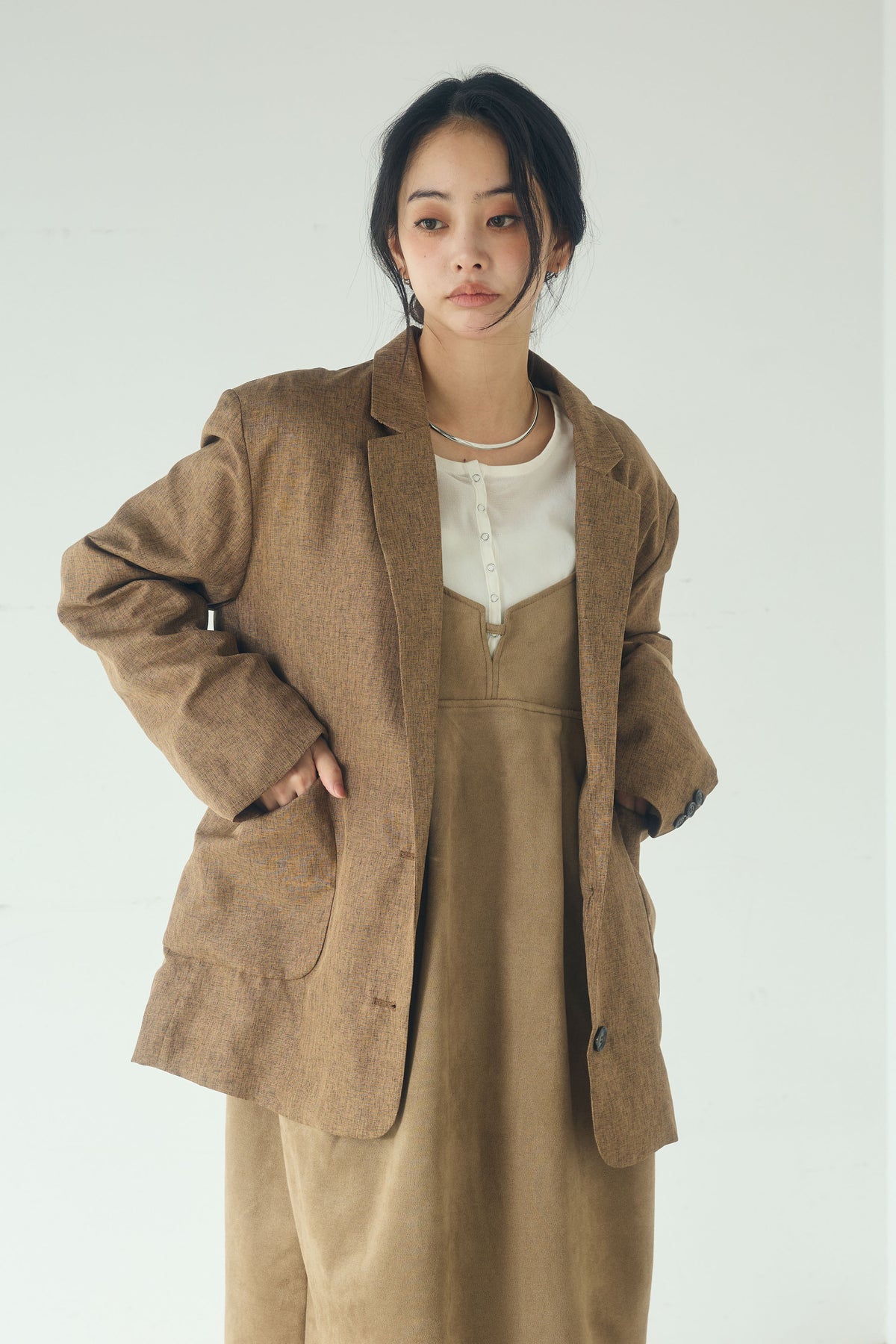 [SET]リネンライクテーラードジャケット+スエードポンチキャミワンピース(2set)