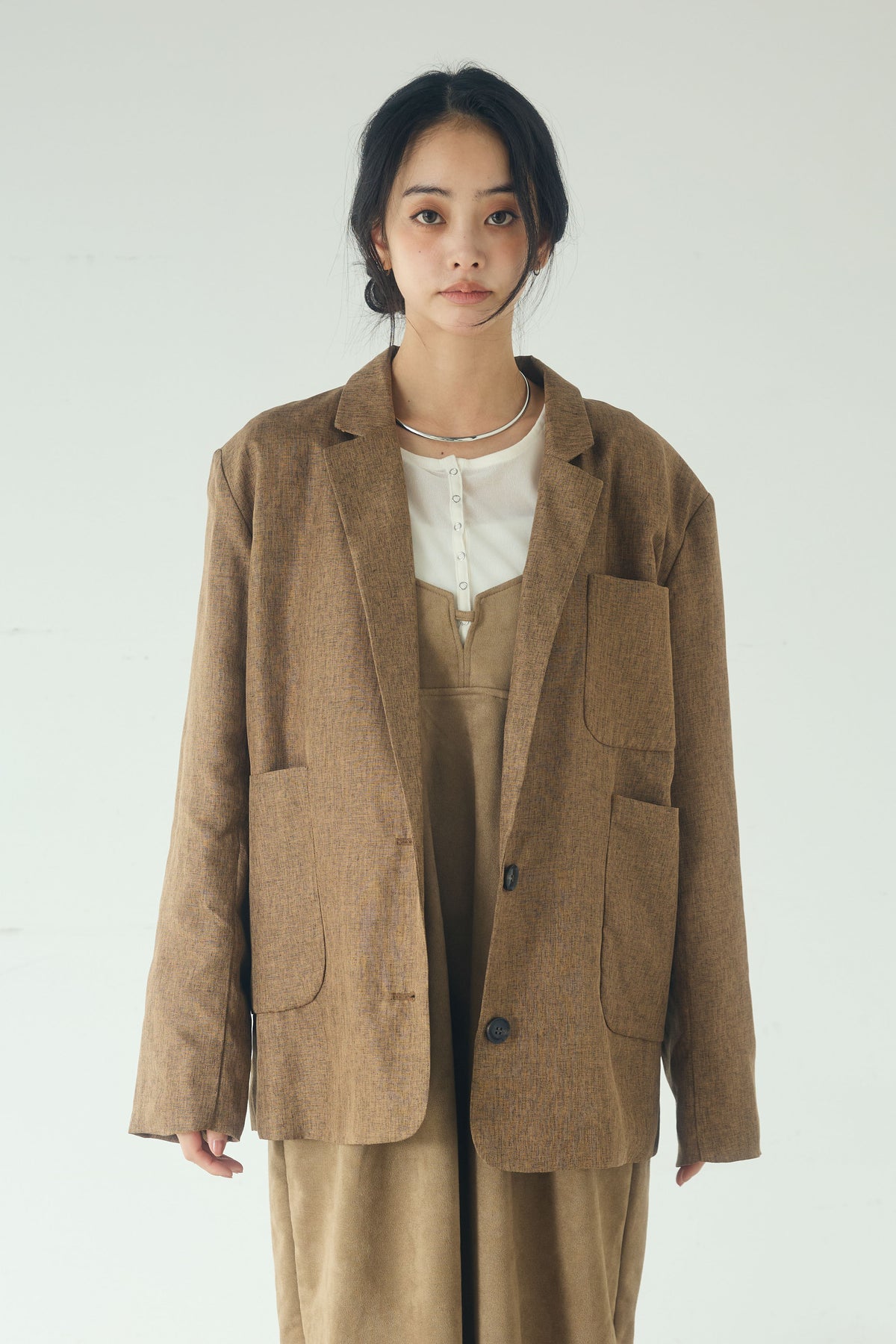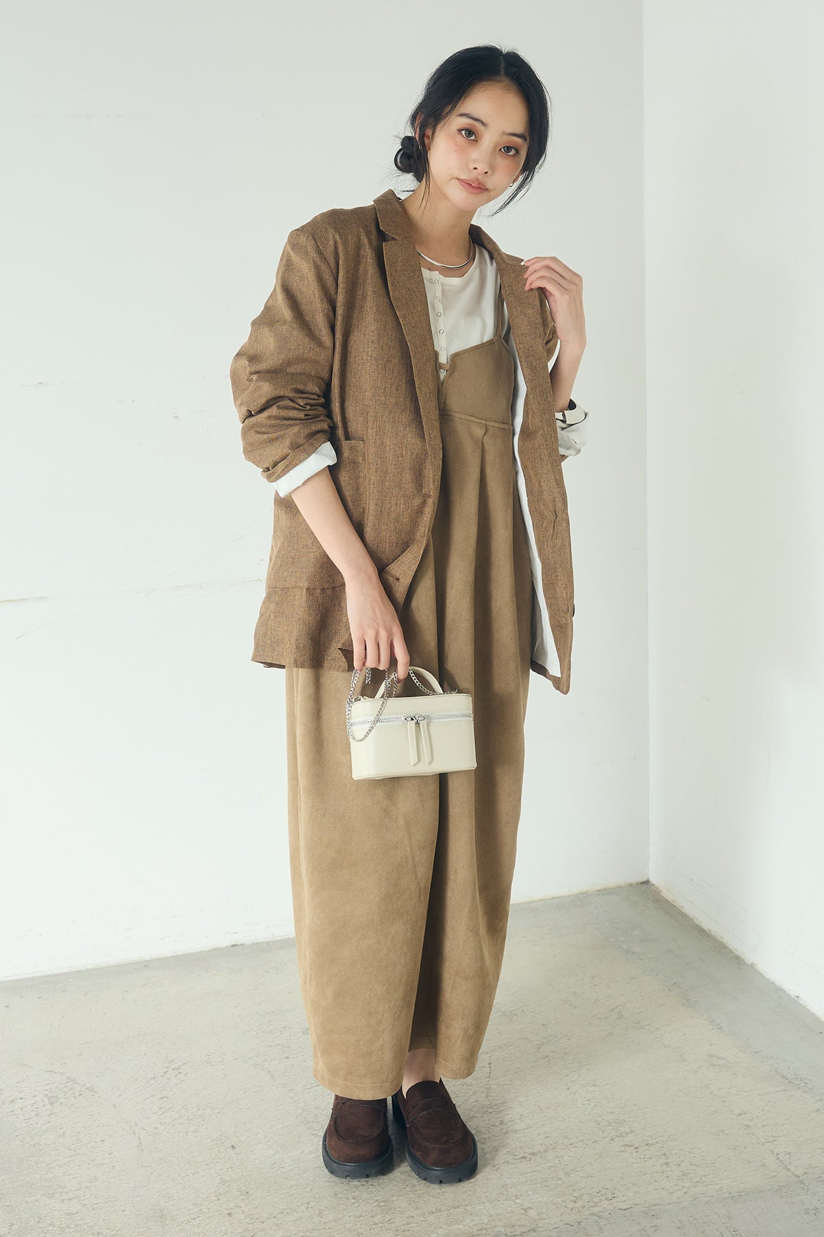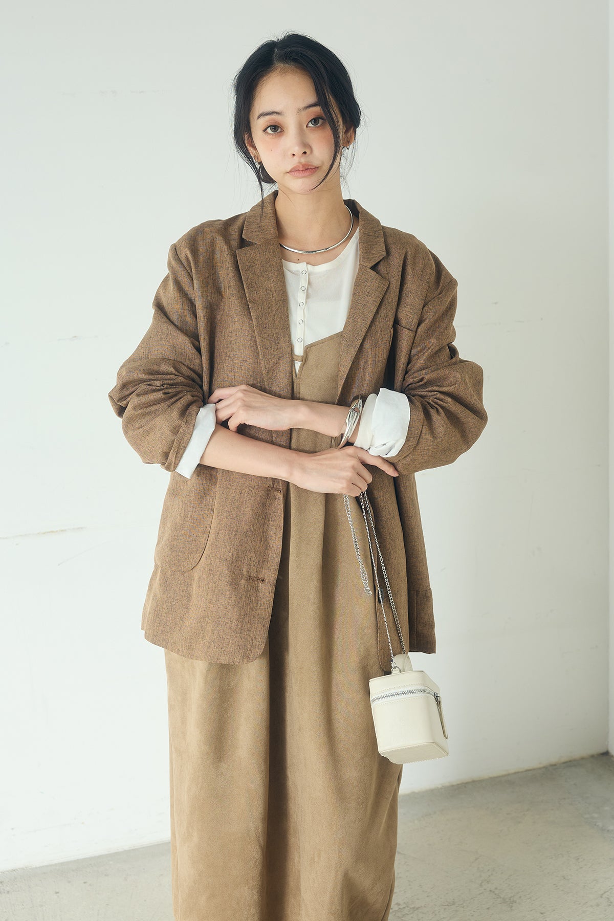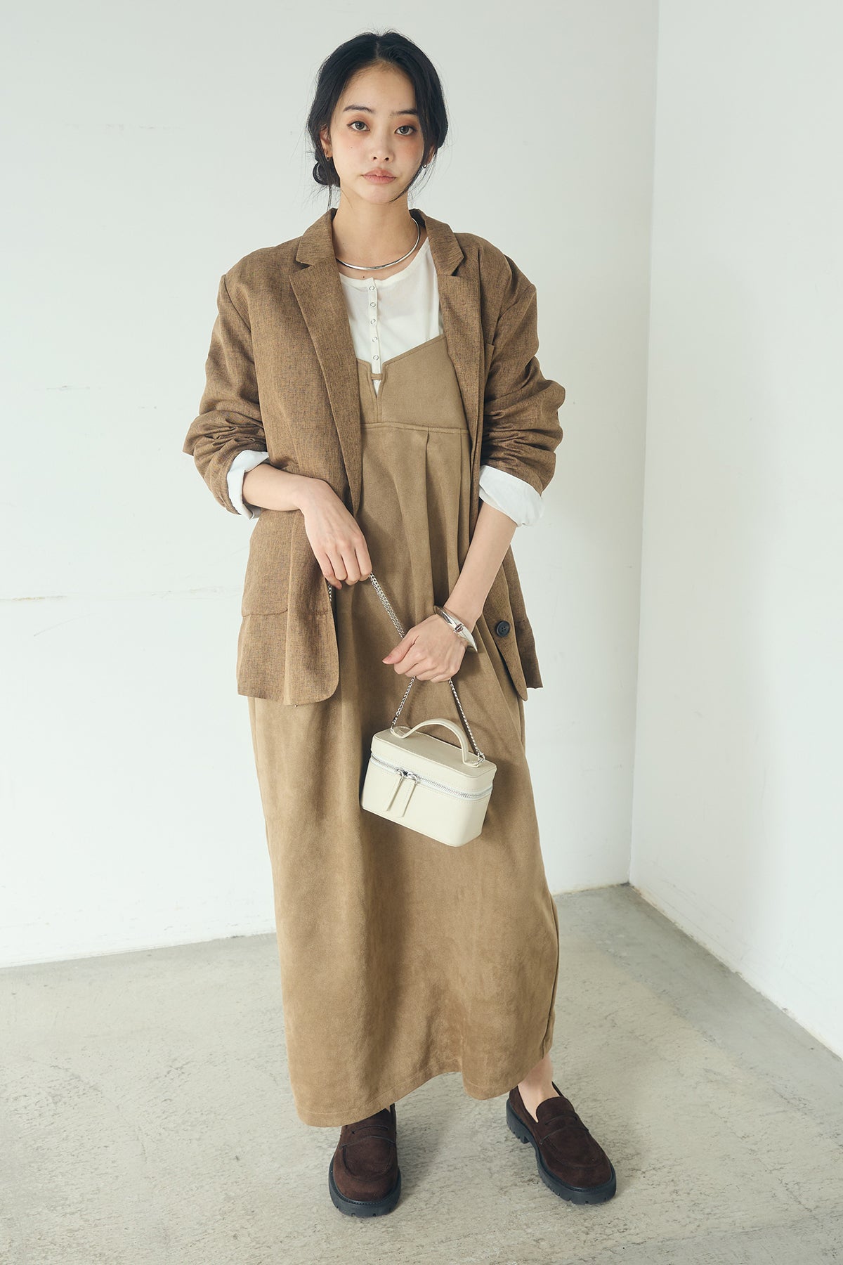 [SET]リネンライクテーラードジャケット+スエードポンチキャミワンピース(2set)
