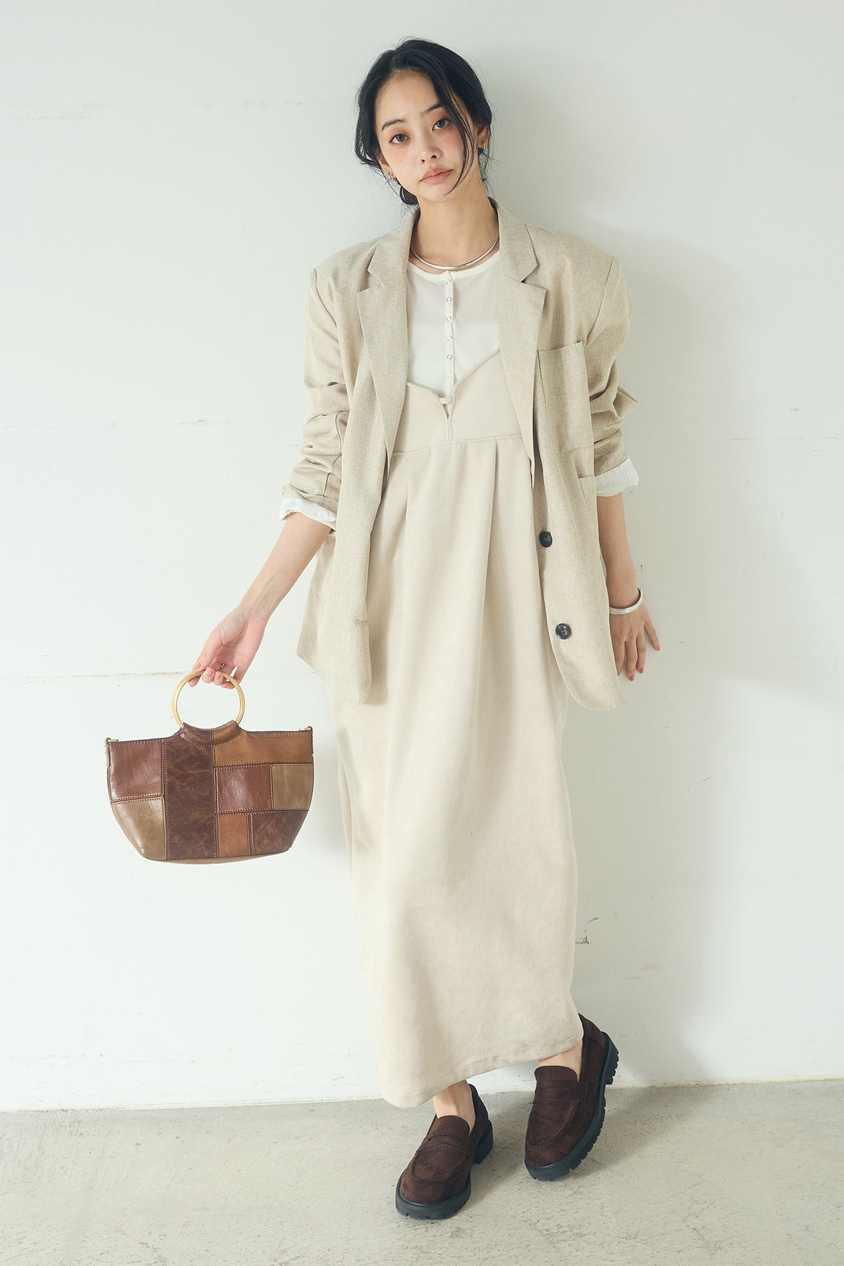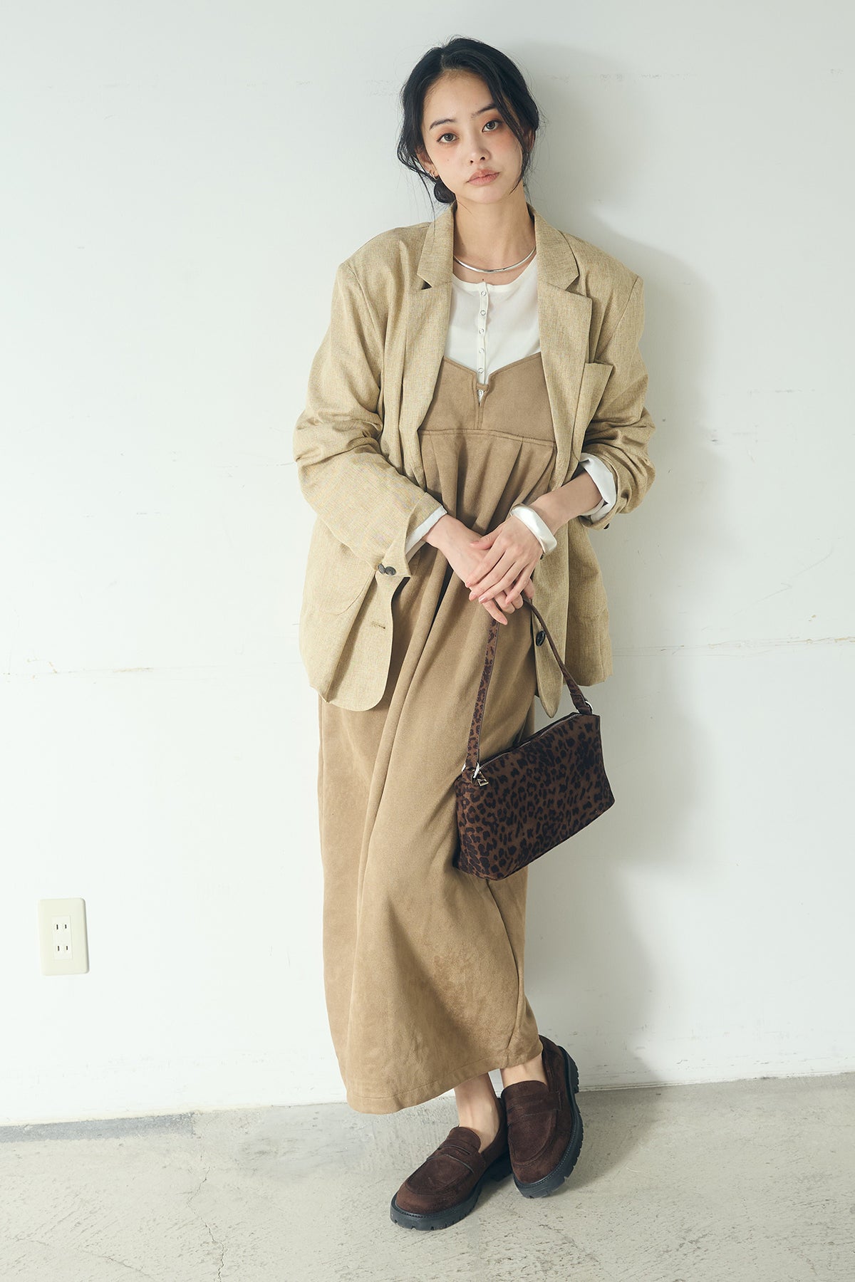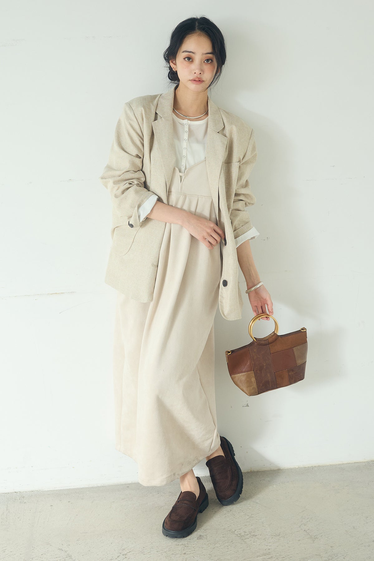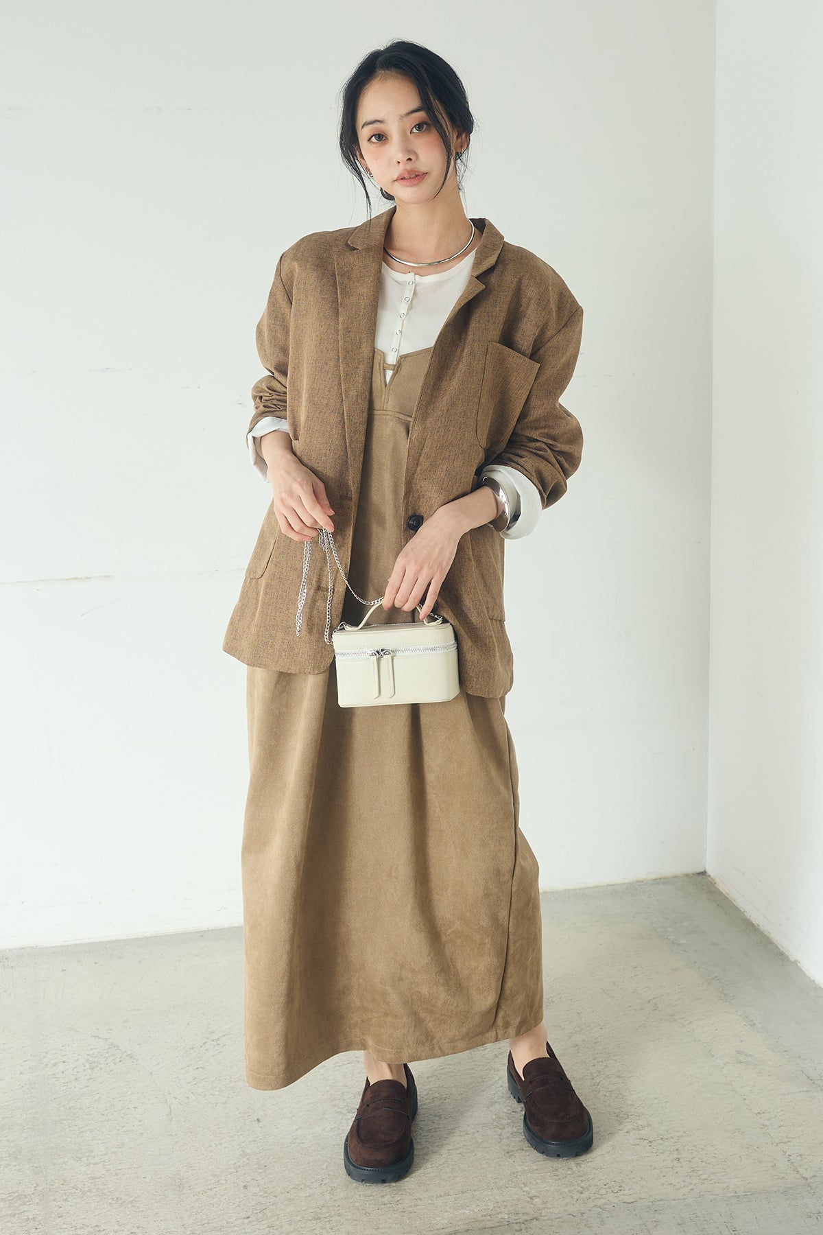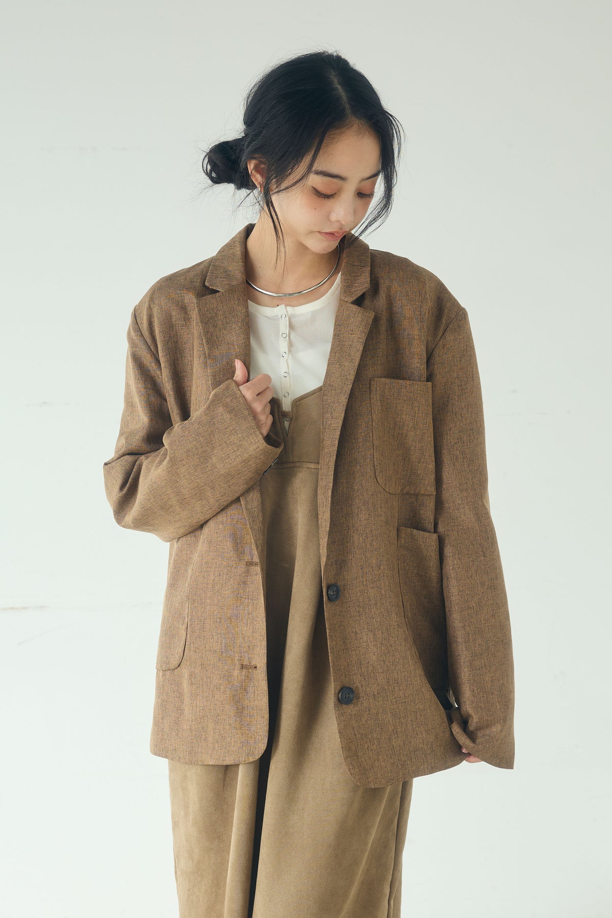 [SET]リネンライクテーラードジャケット+スエードポンチキャミワンピース(2set)
