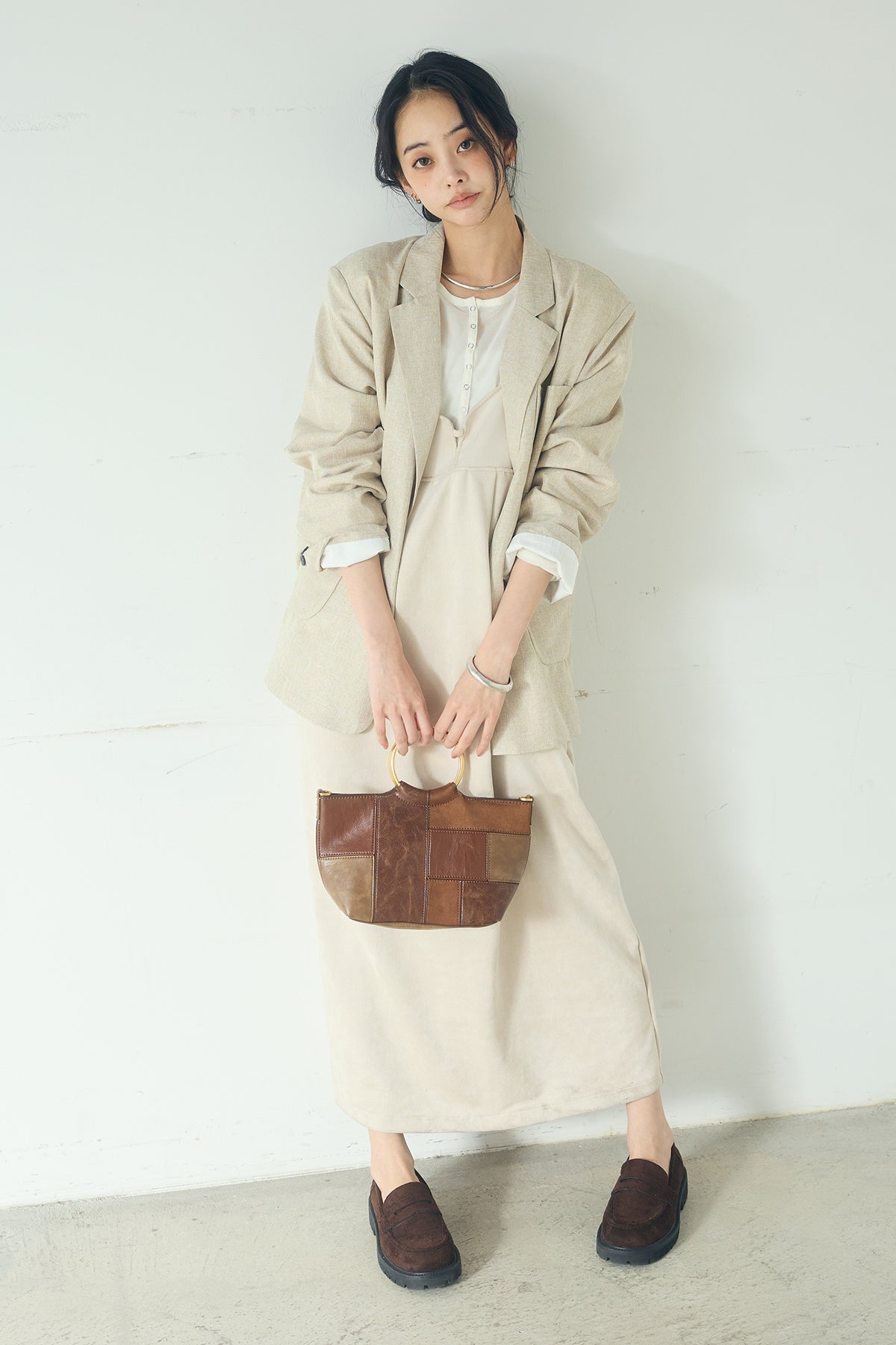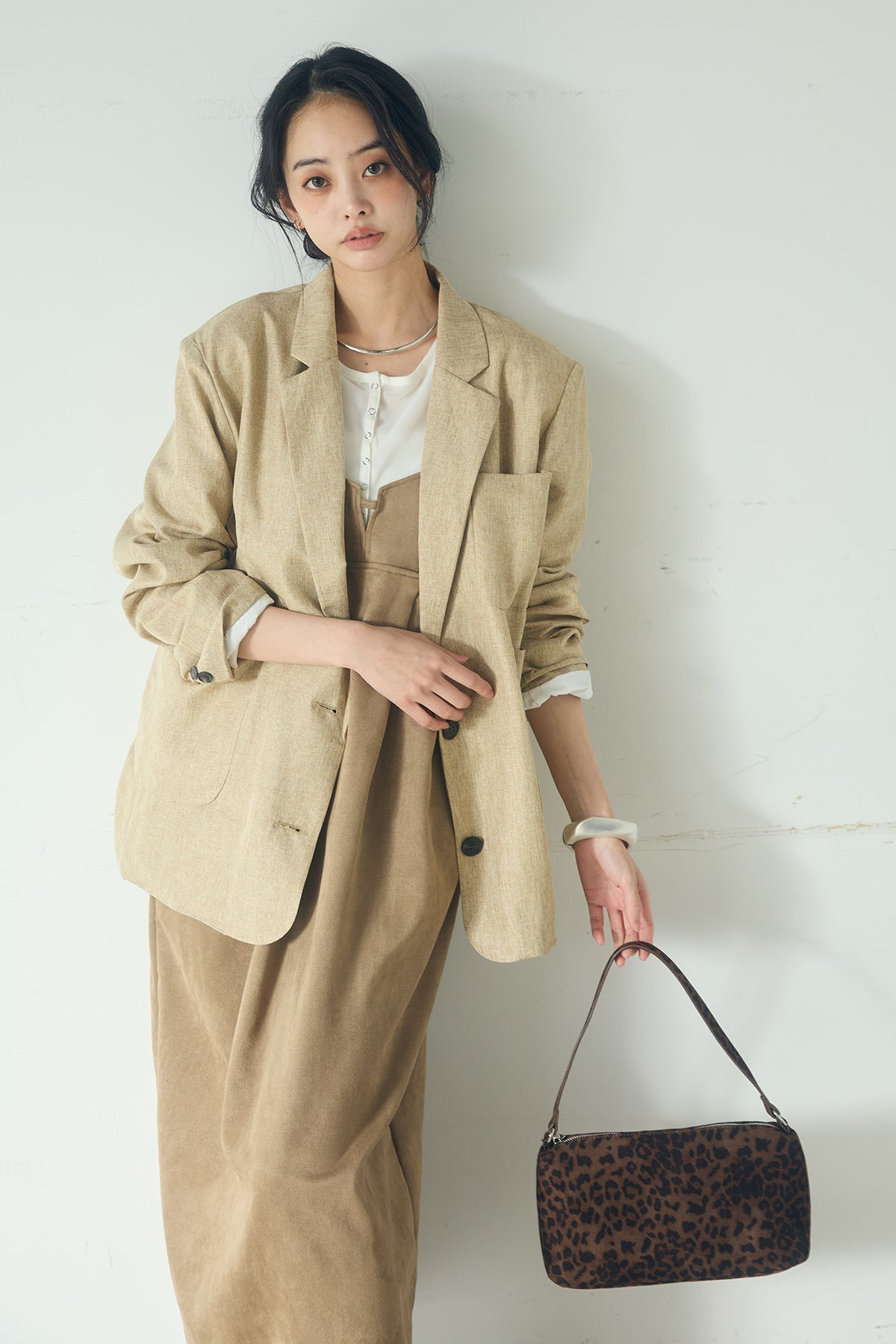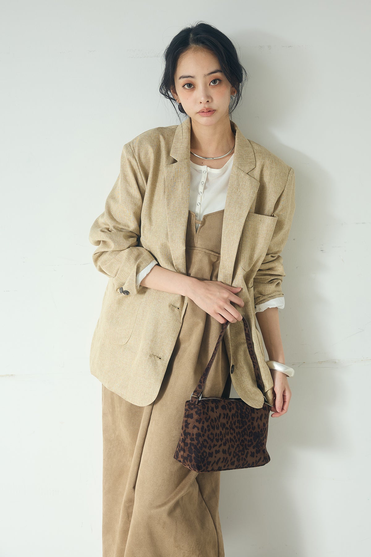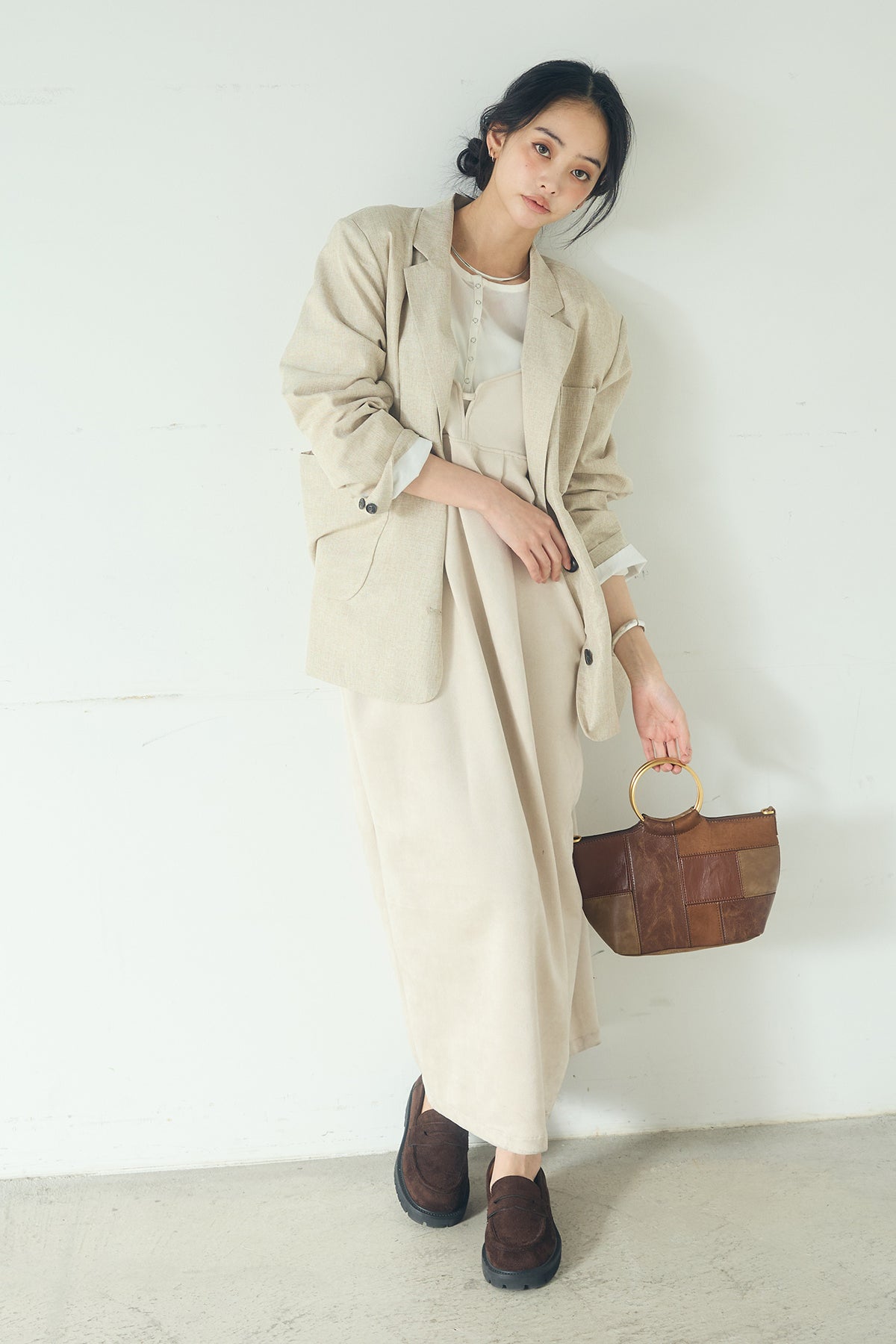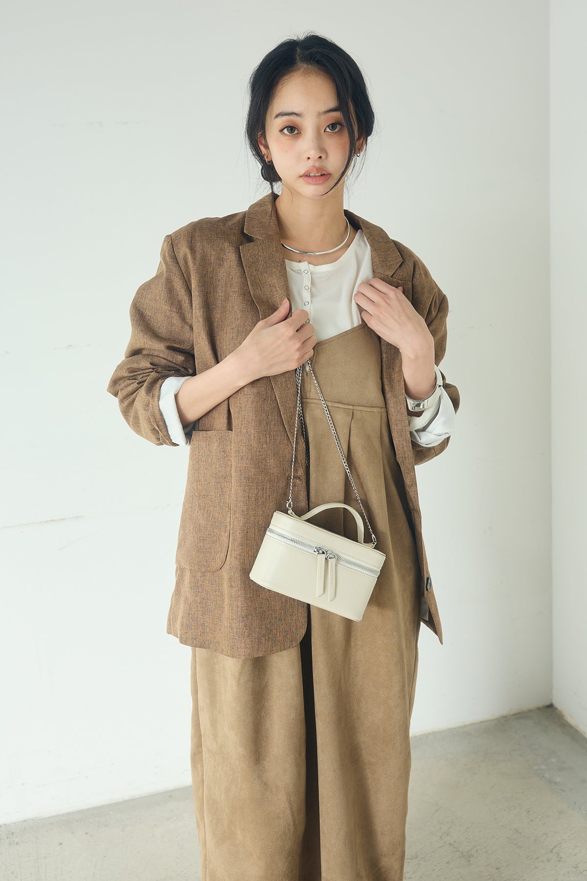 [SET]リネンライクテーラードジャケット+スエードポンチキャミワンピース(2set)