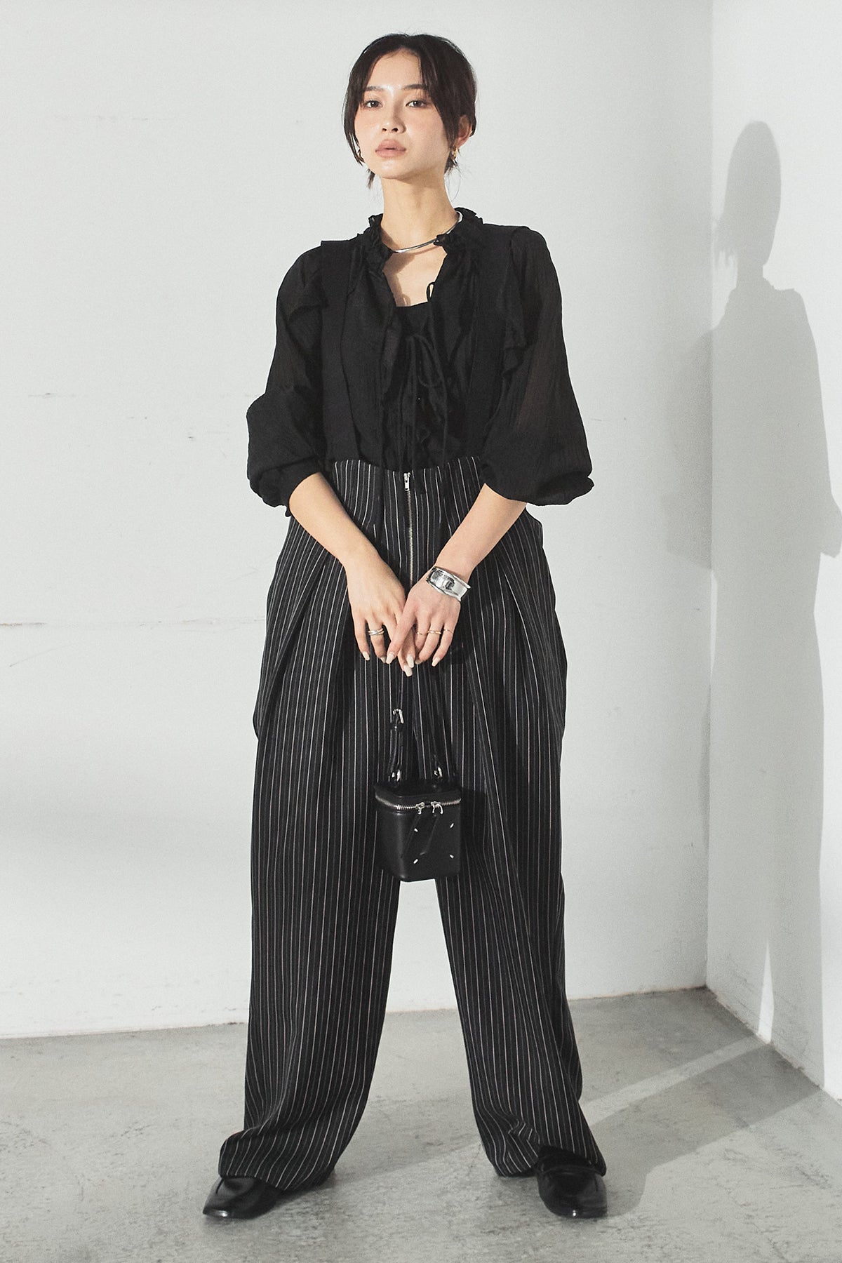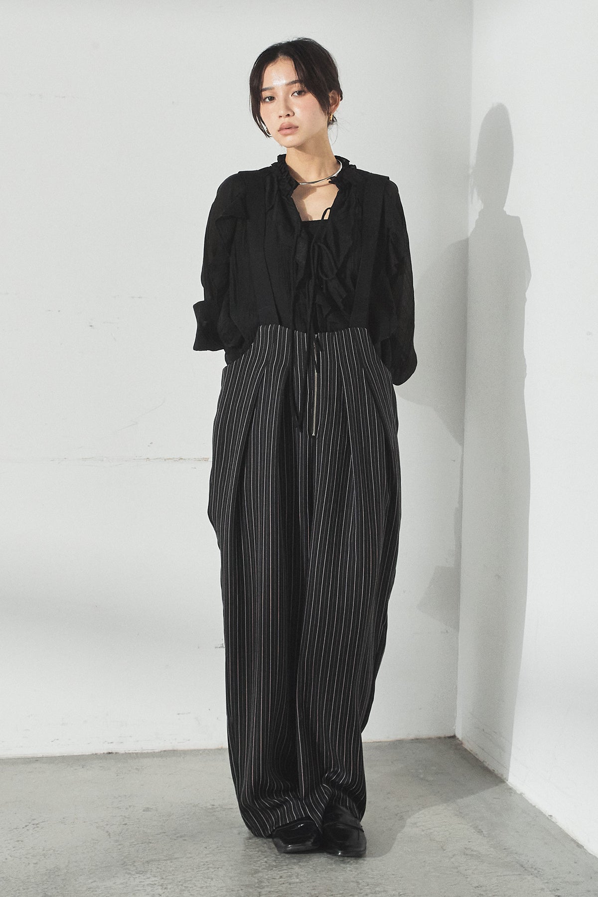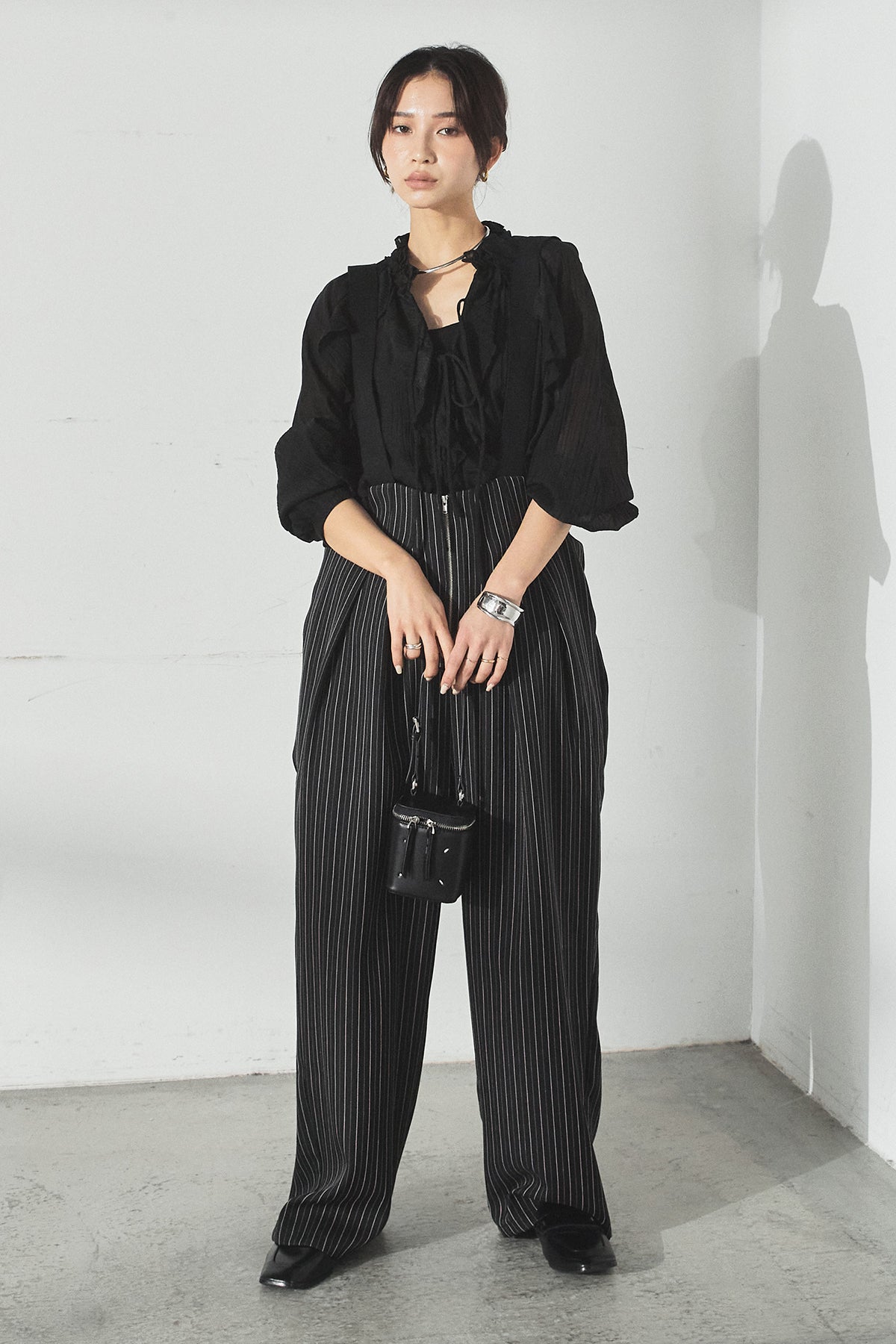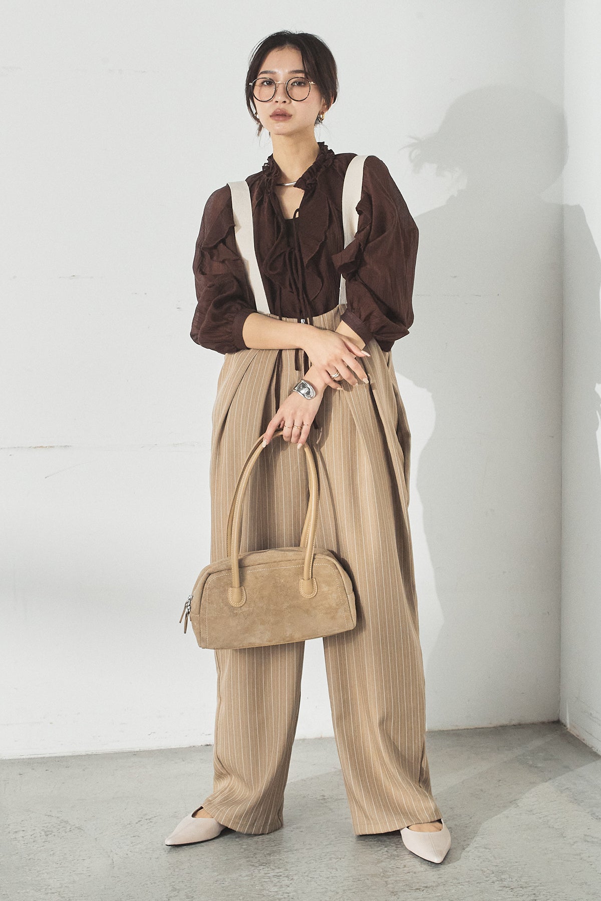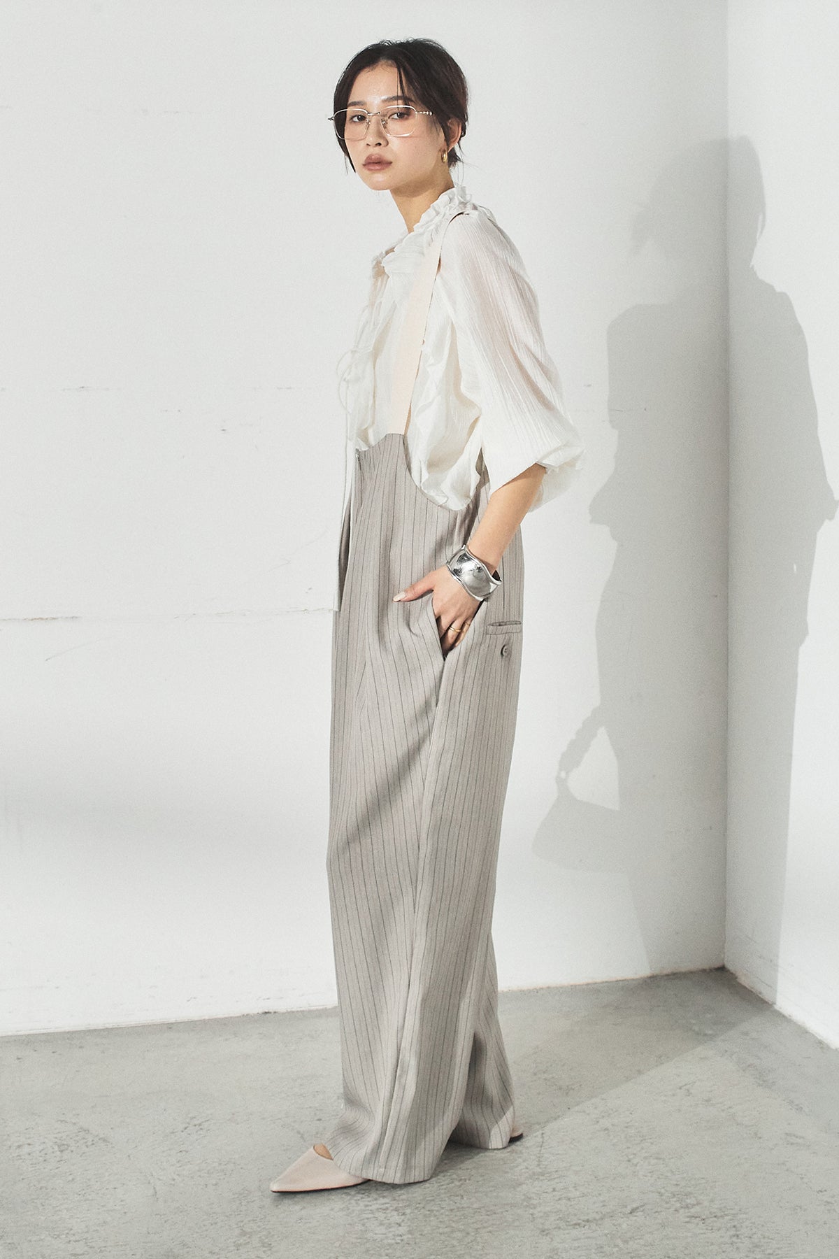 [SET]フロントリボンフリルブラウス+ピンストライプツータックサロペット(2set)