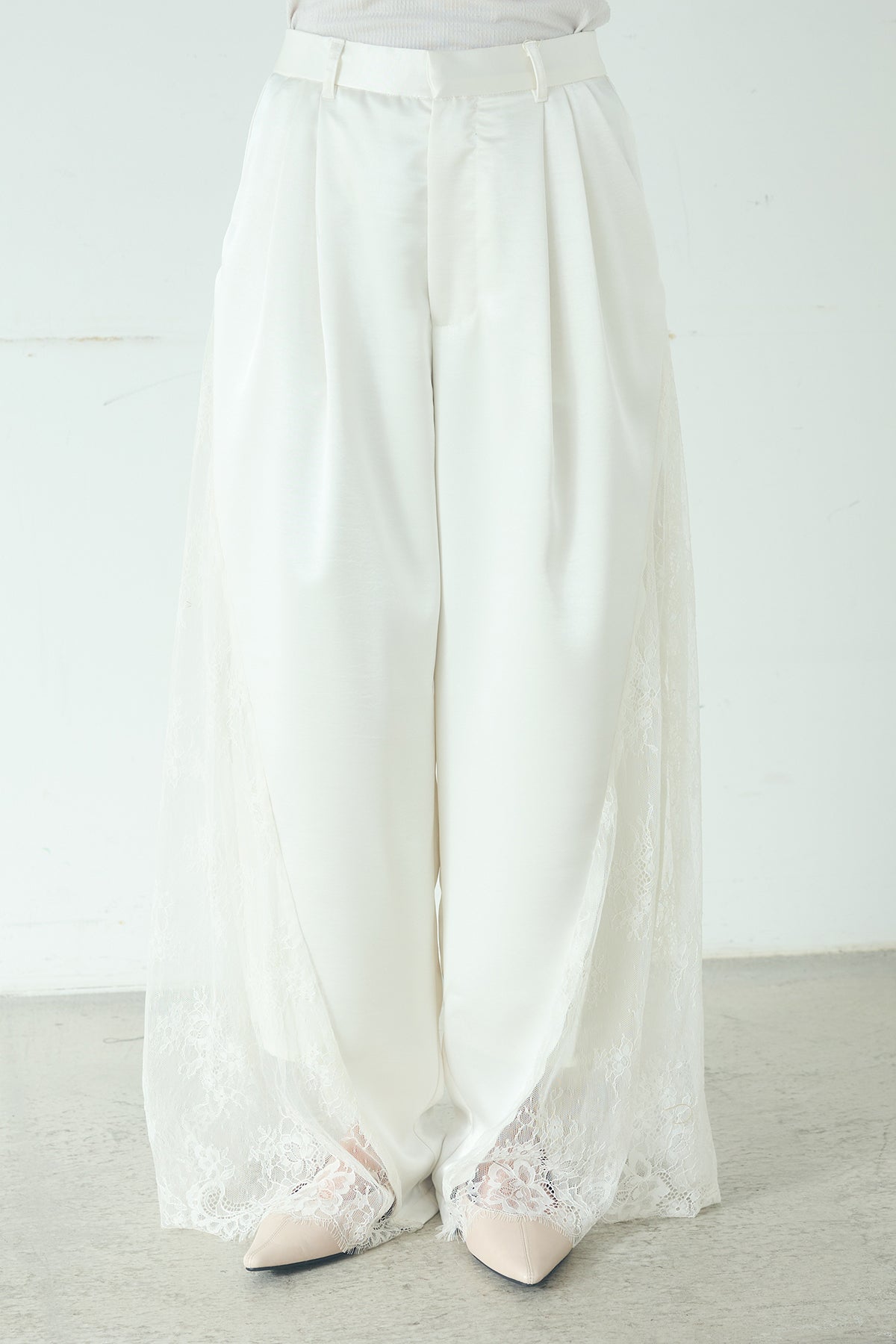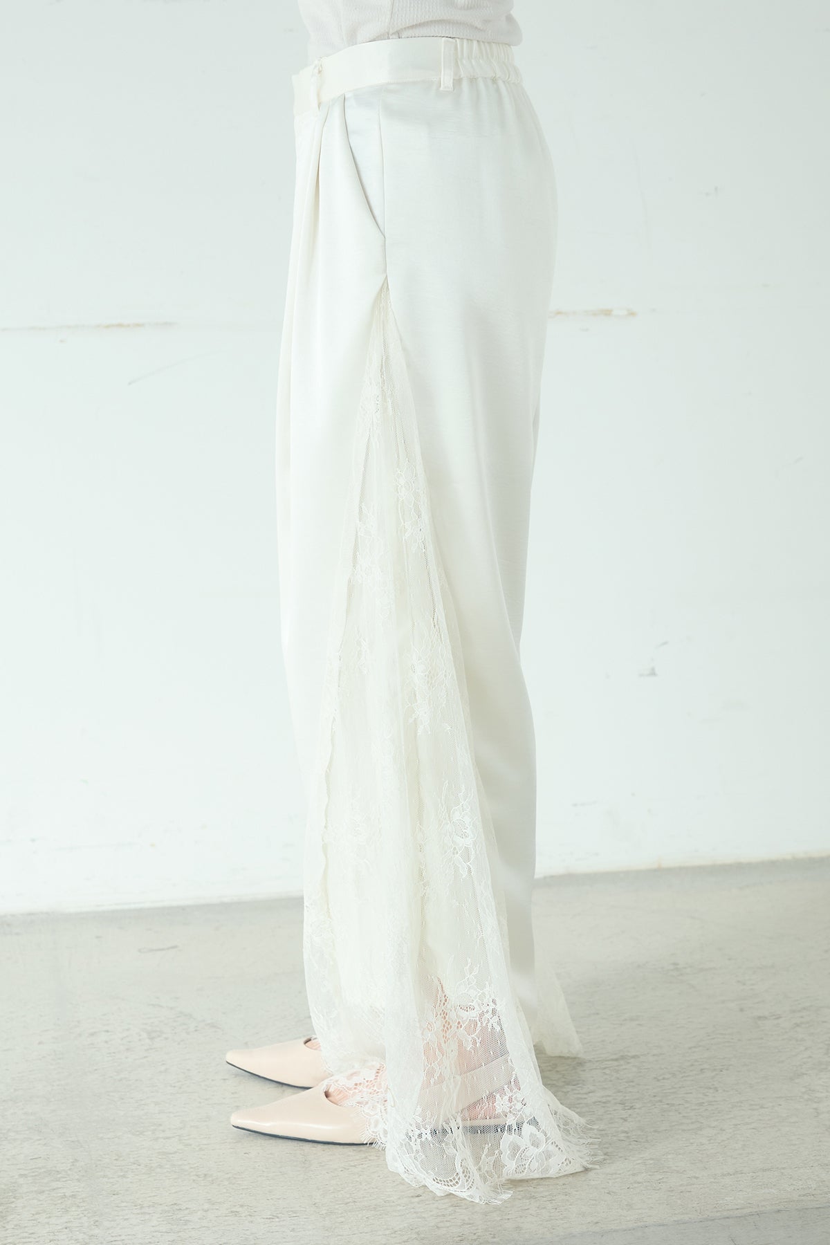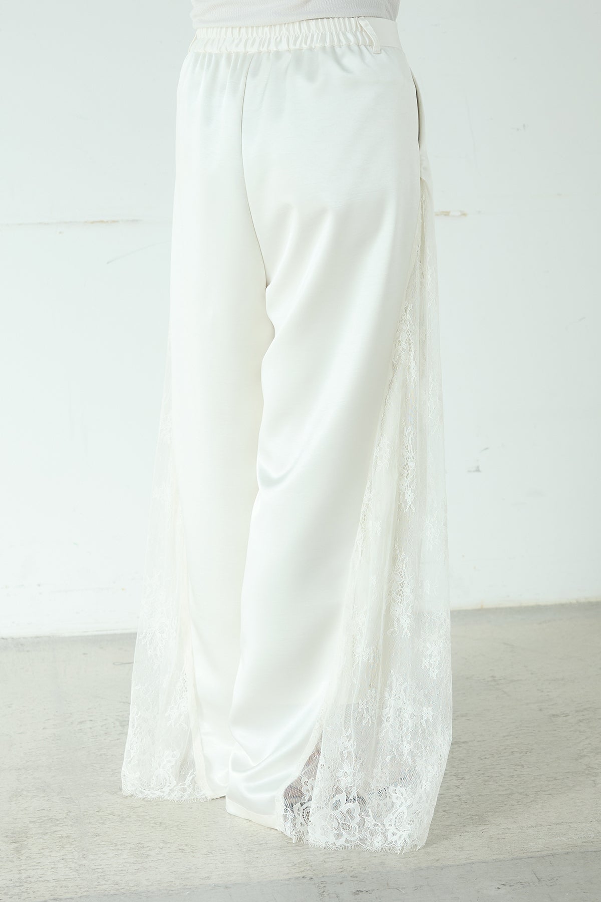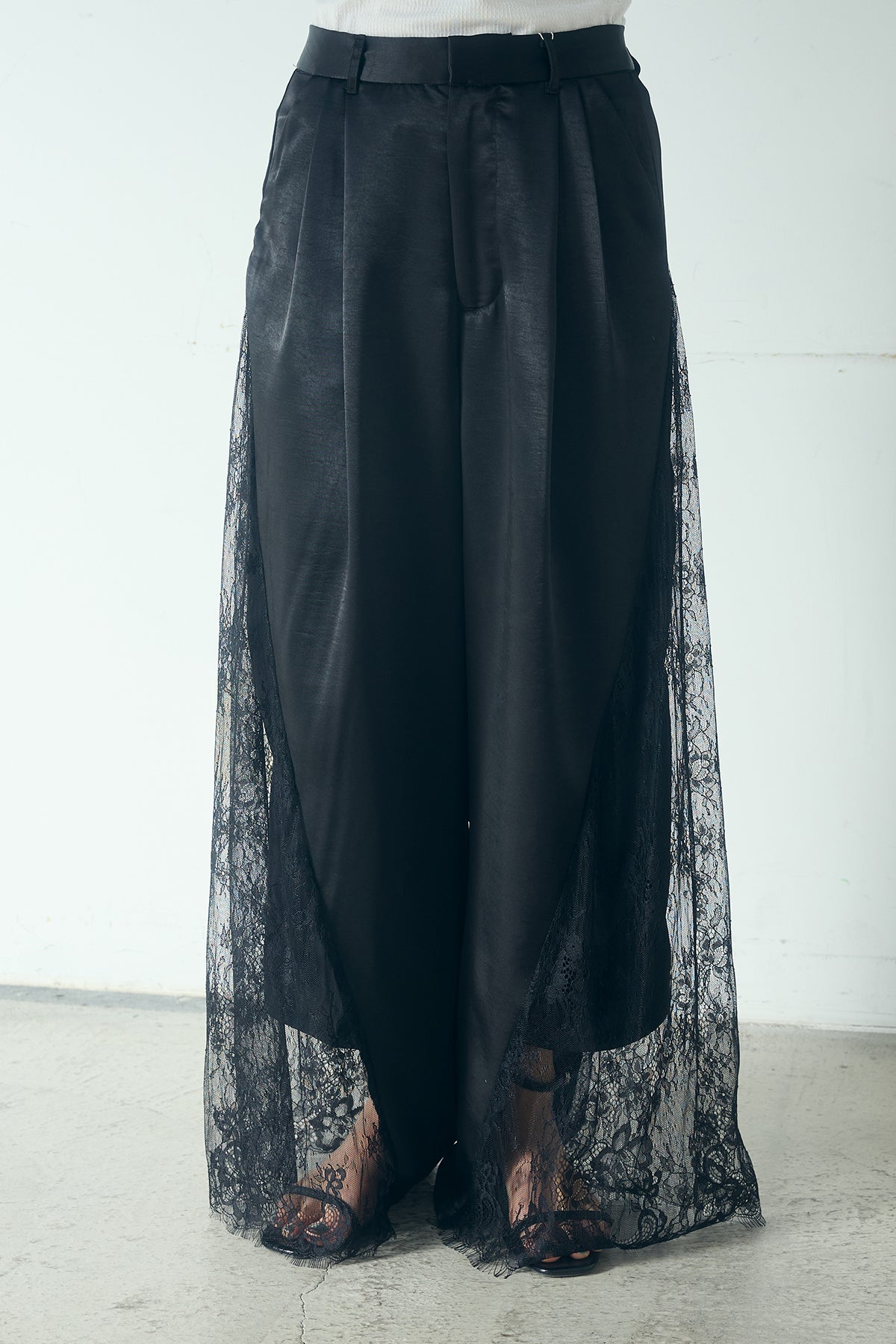 ◆ サテンレース切り替えタックパンツ