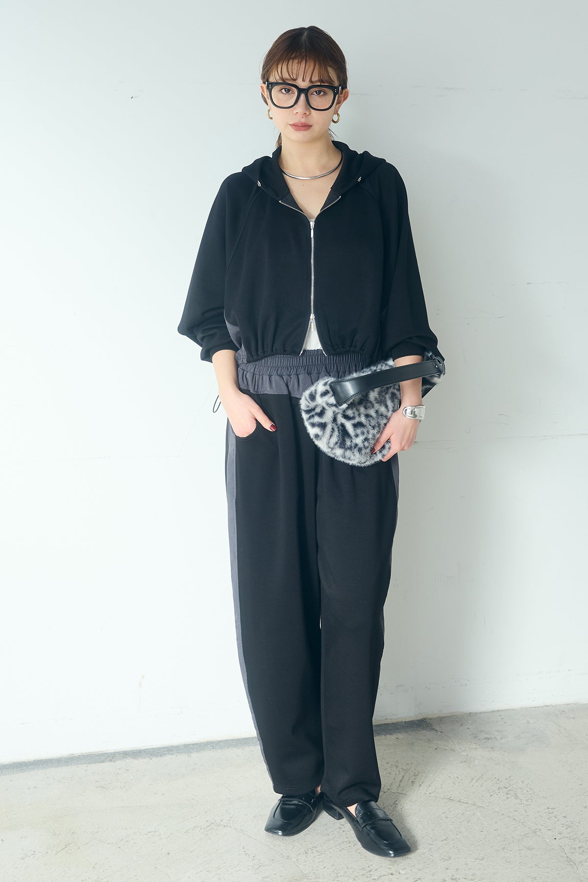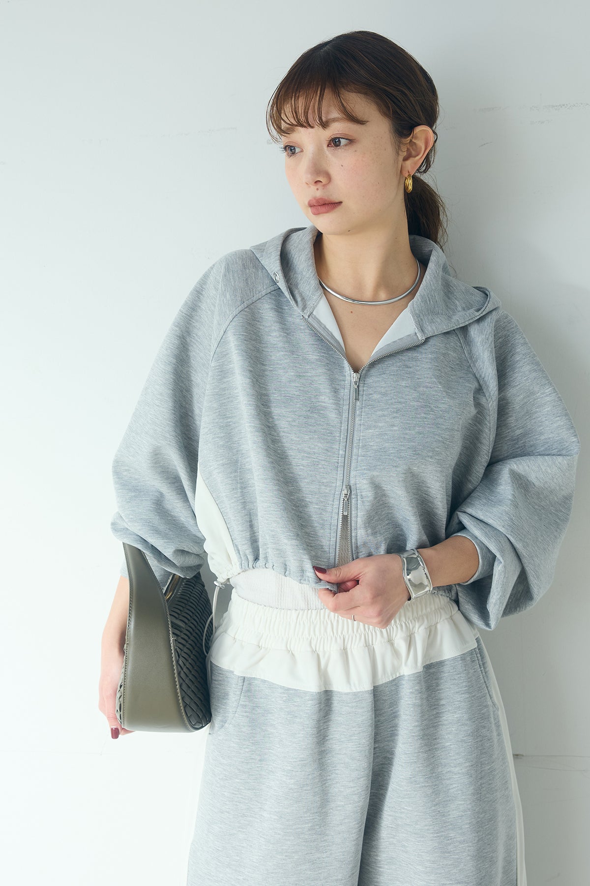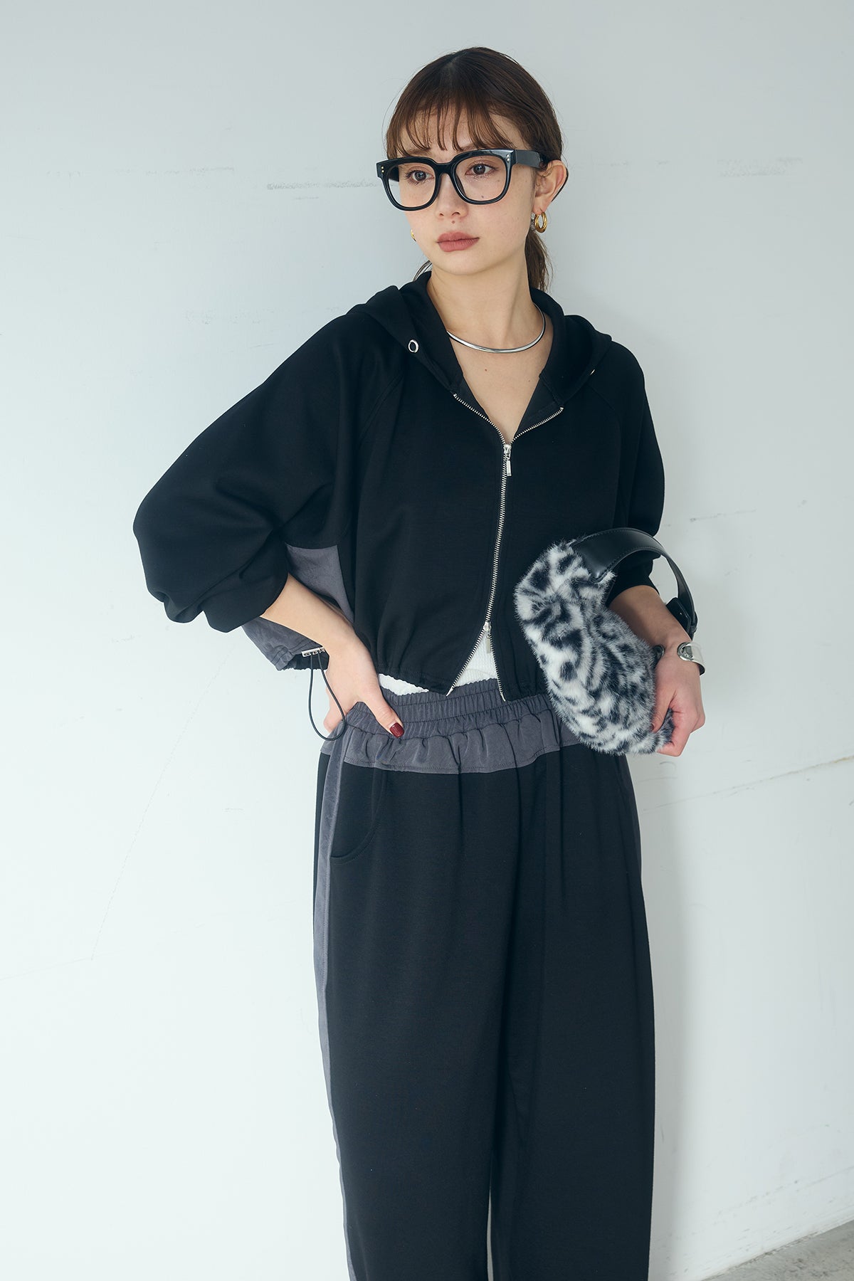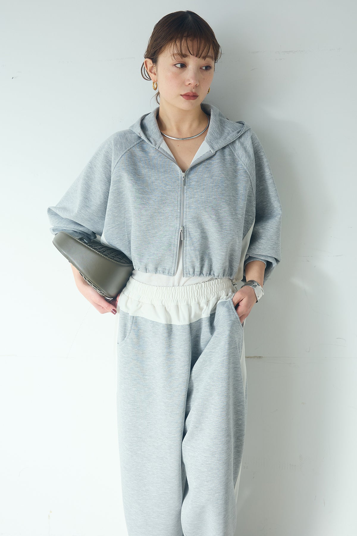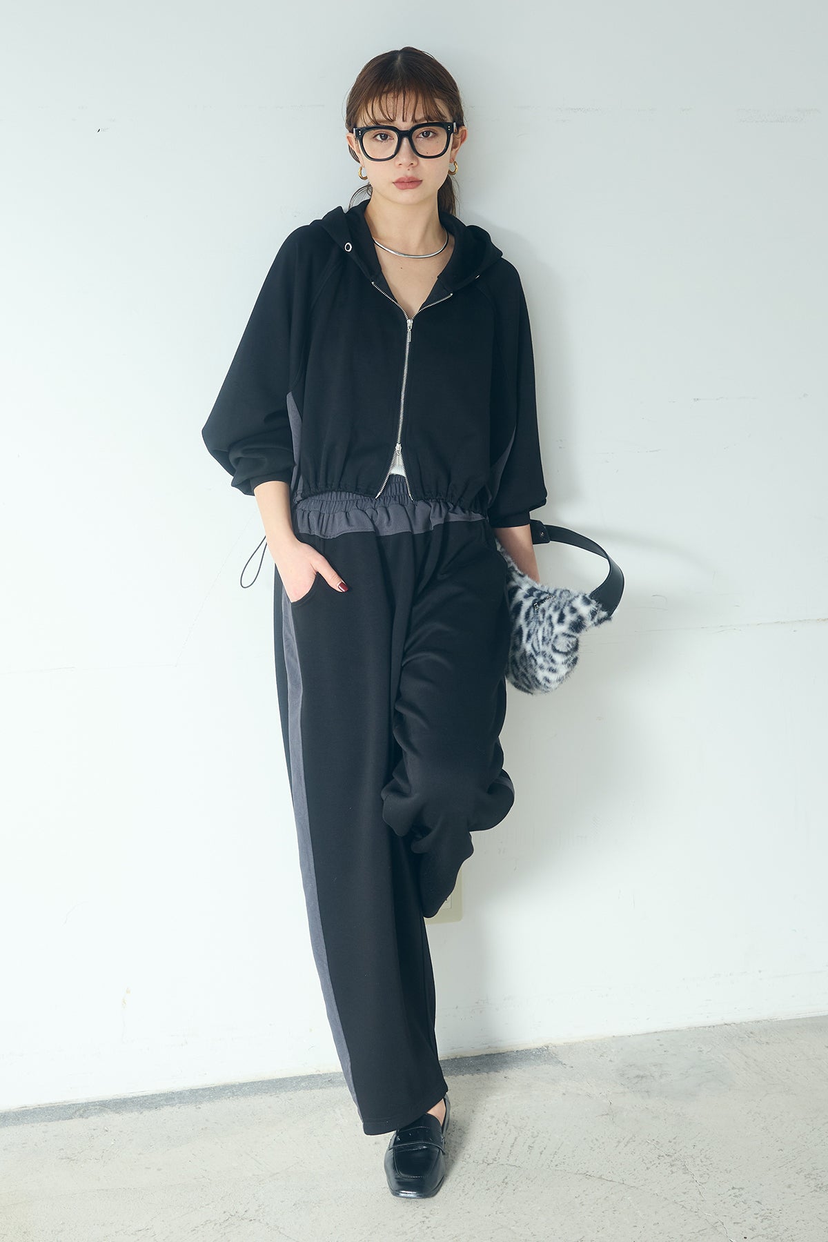 [SET]ドルマンショートフーディー+異素材切り替えスウェットパンツ(2set)