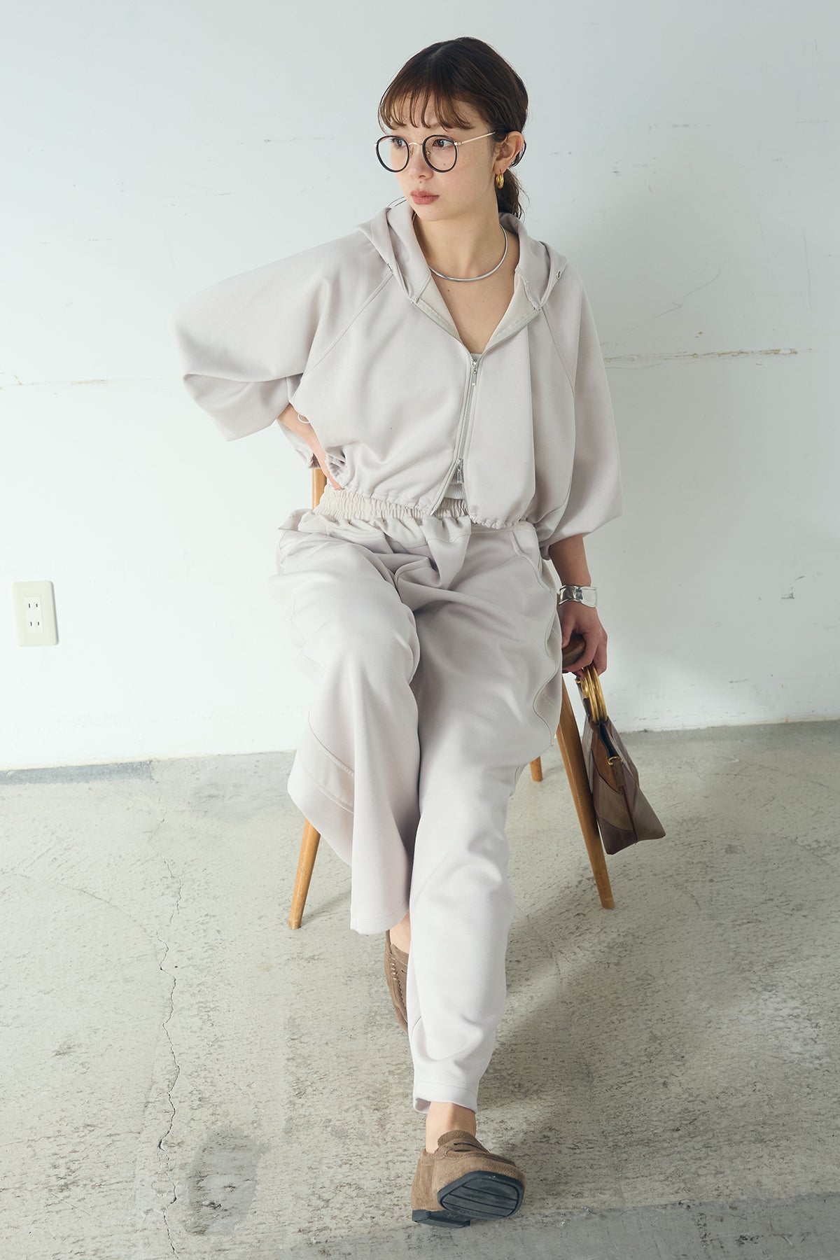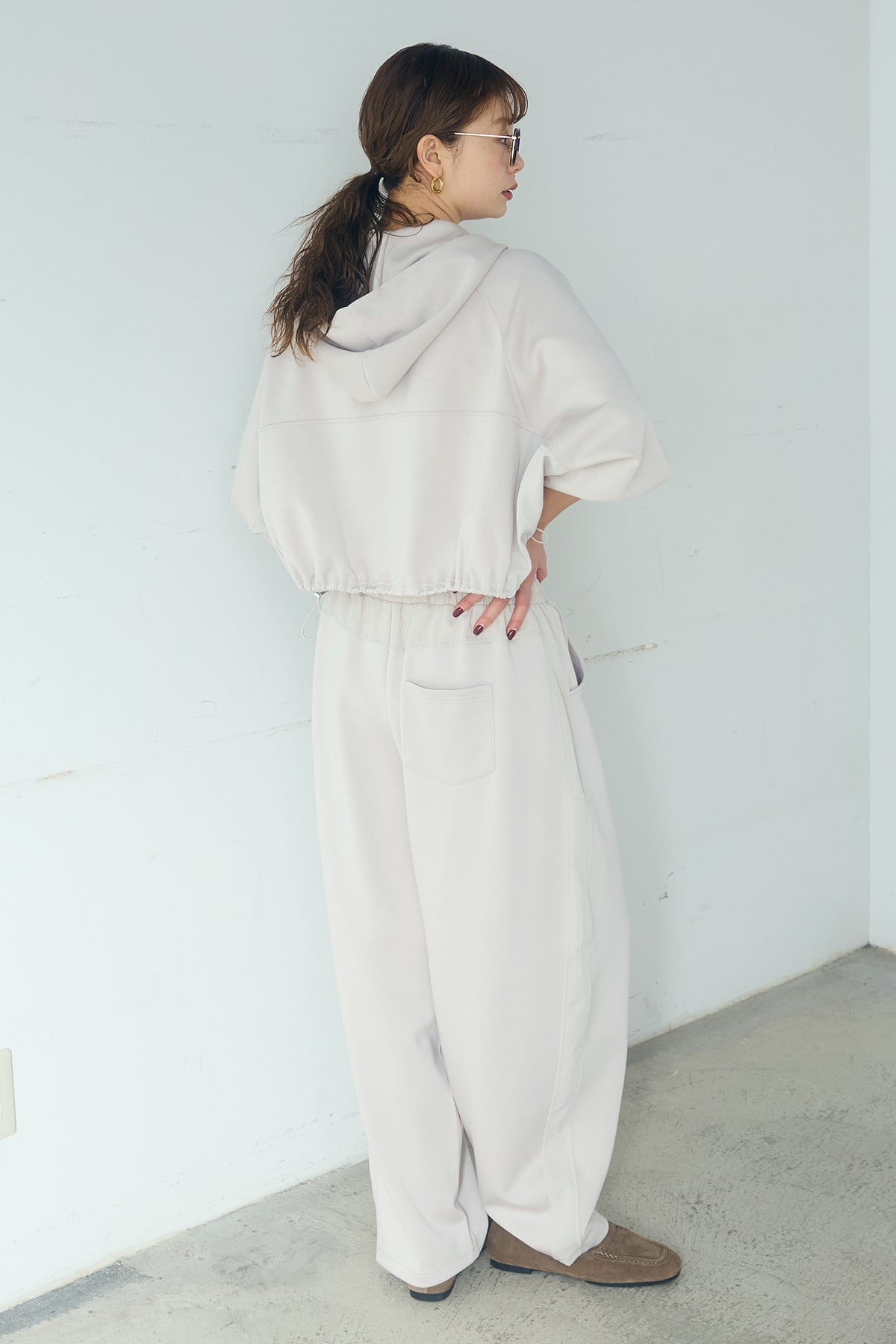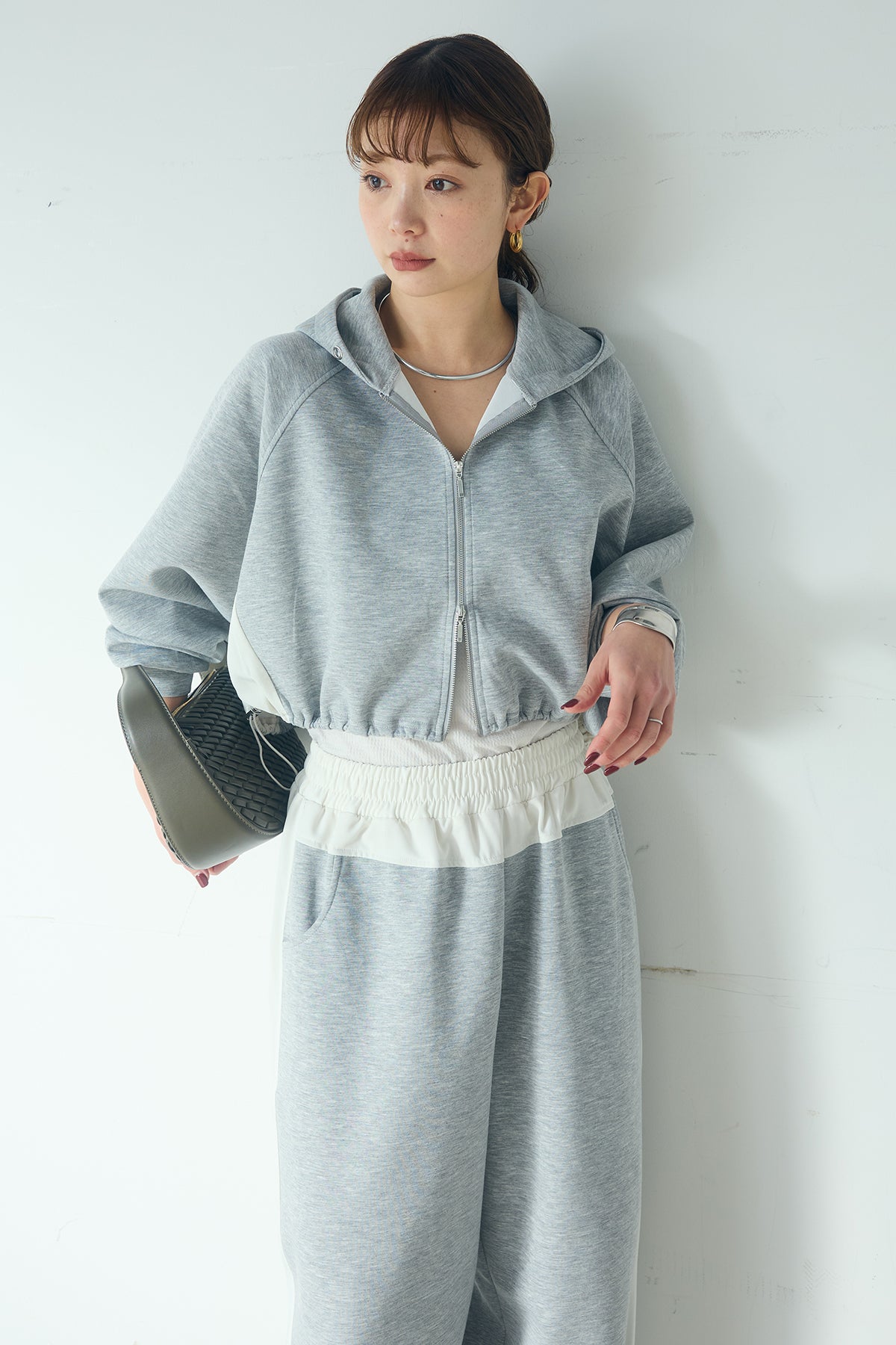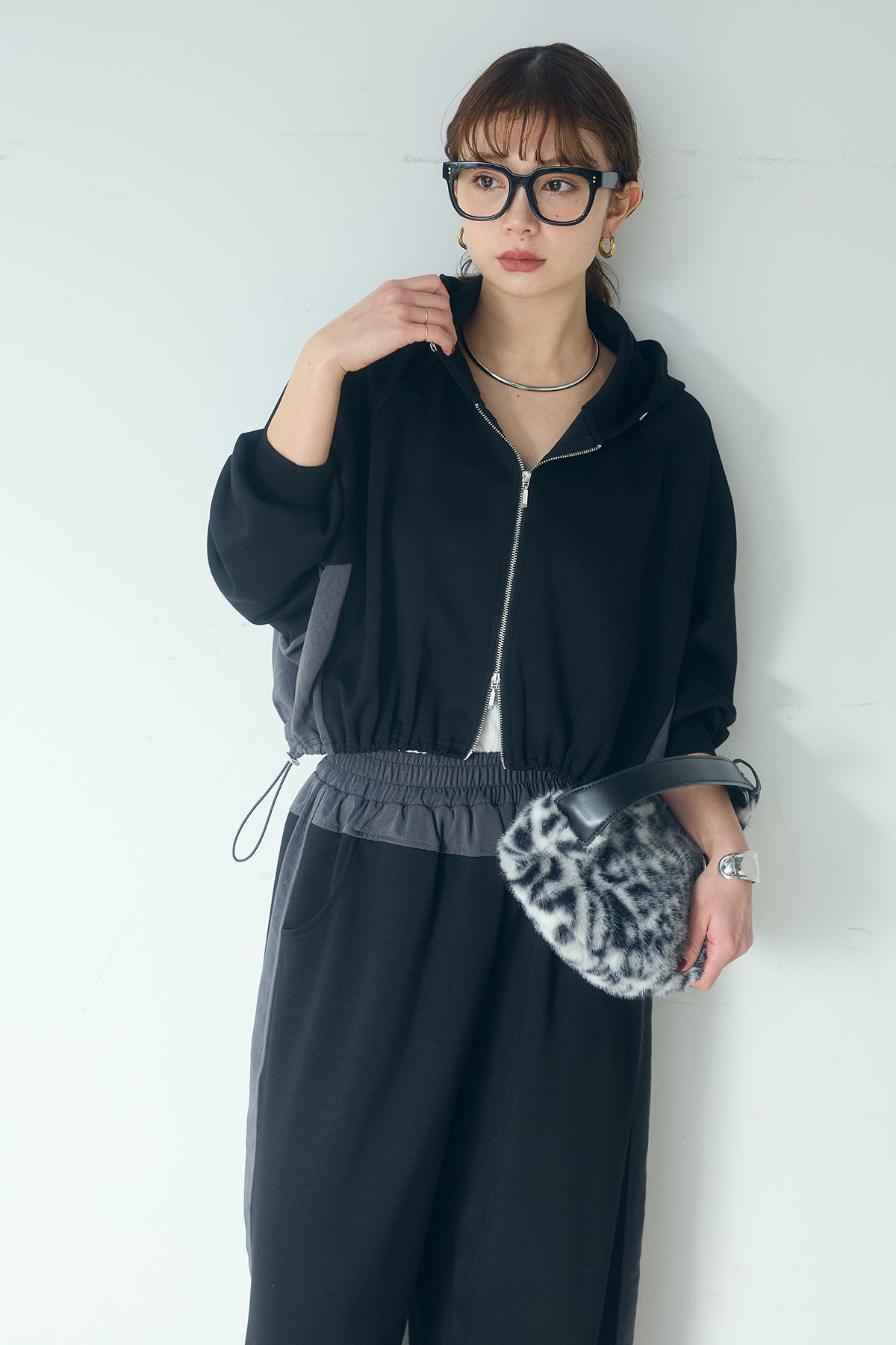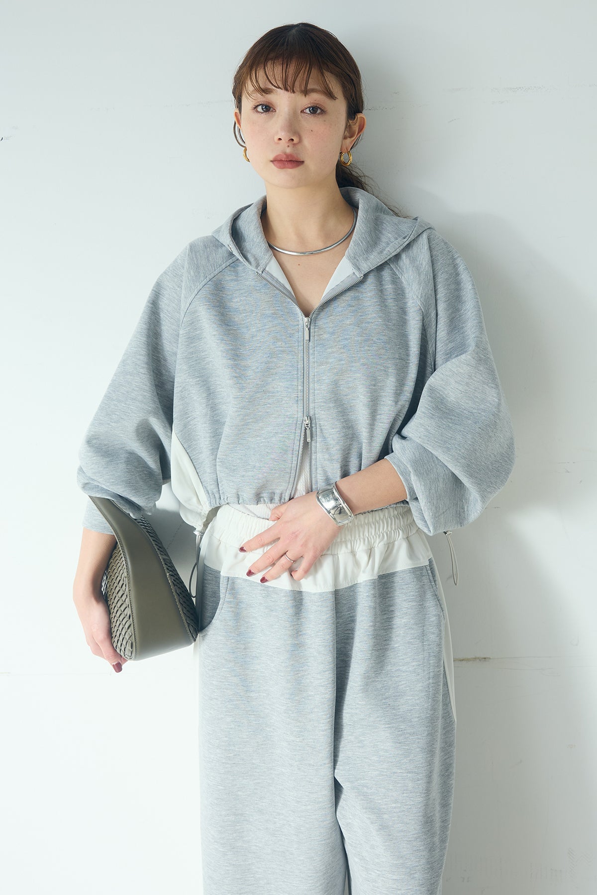[SET]ドルマンショートフーディー+異素材切り替えスウェットパンツ(2set)