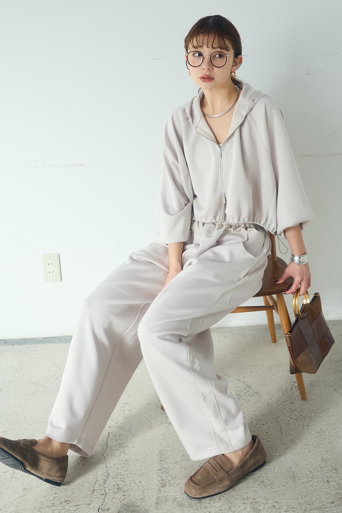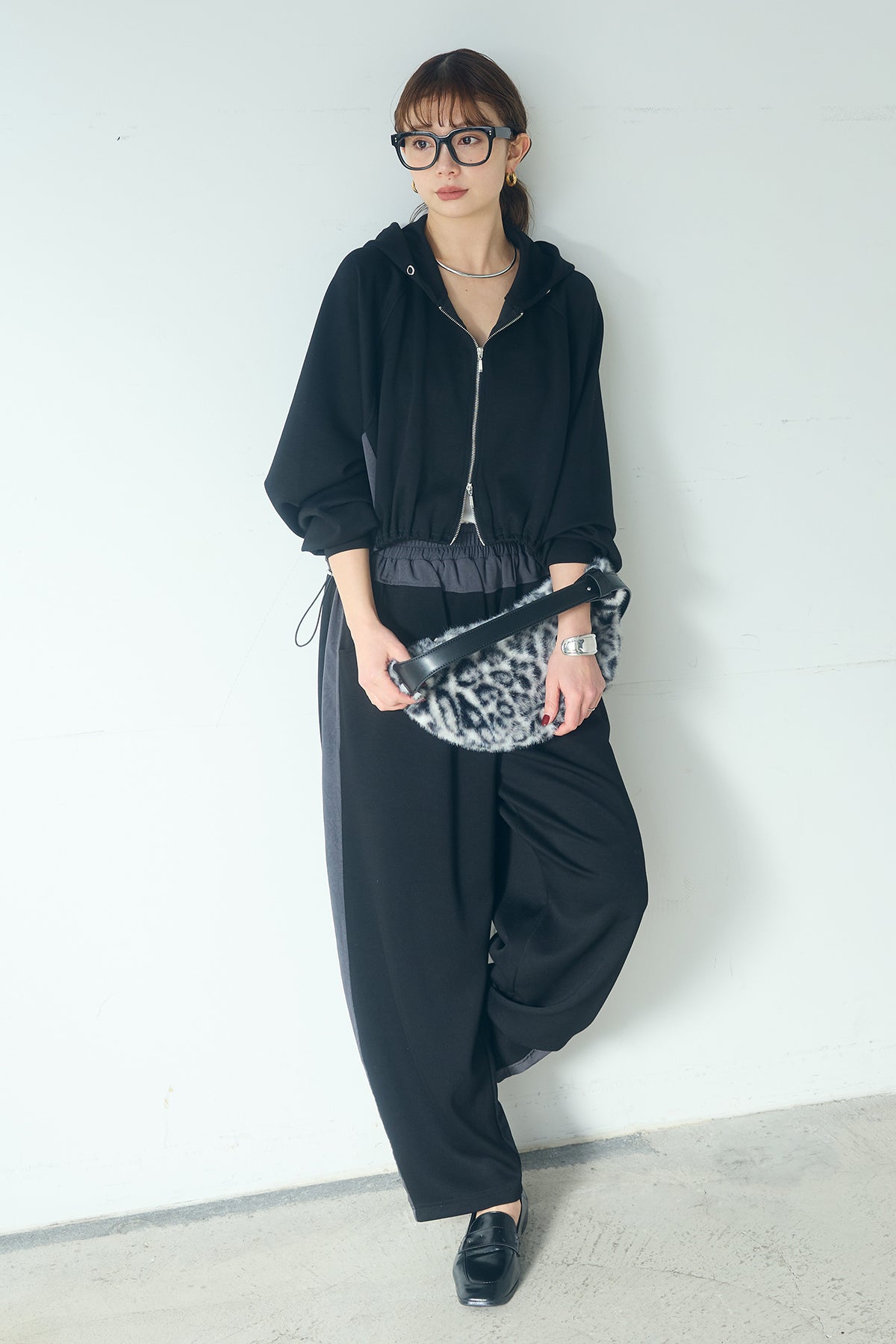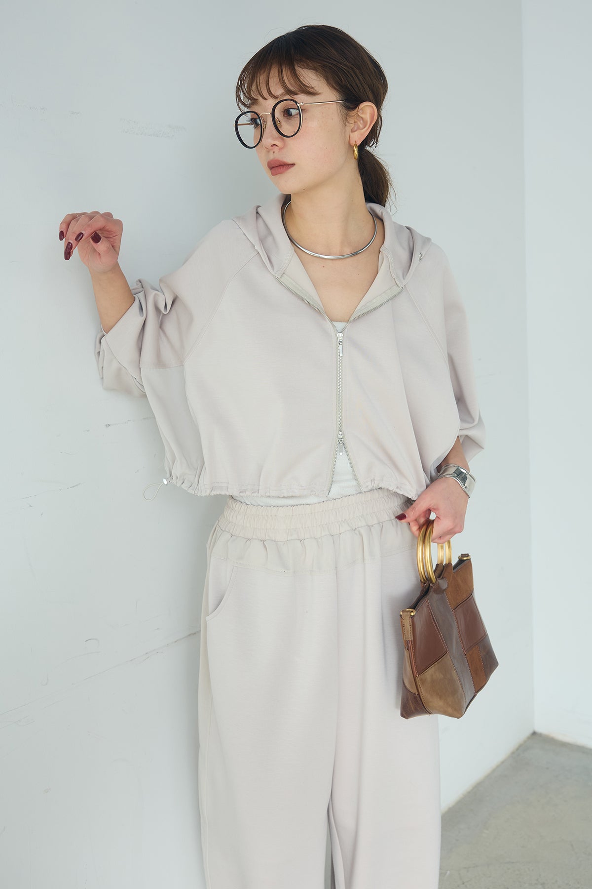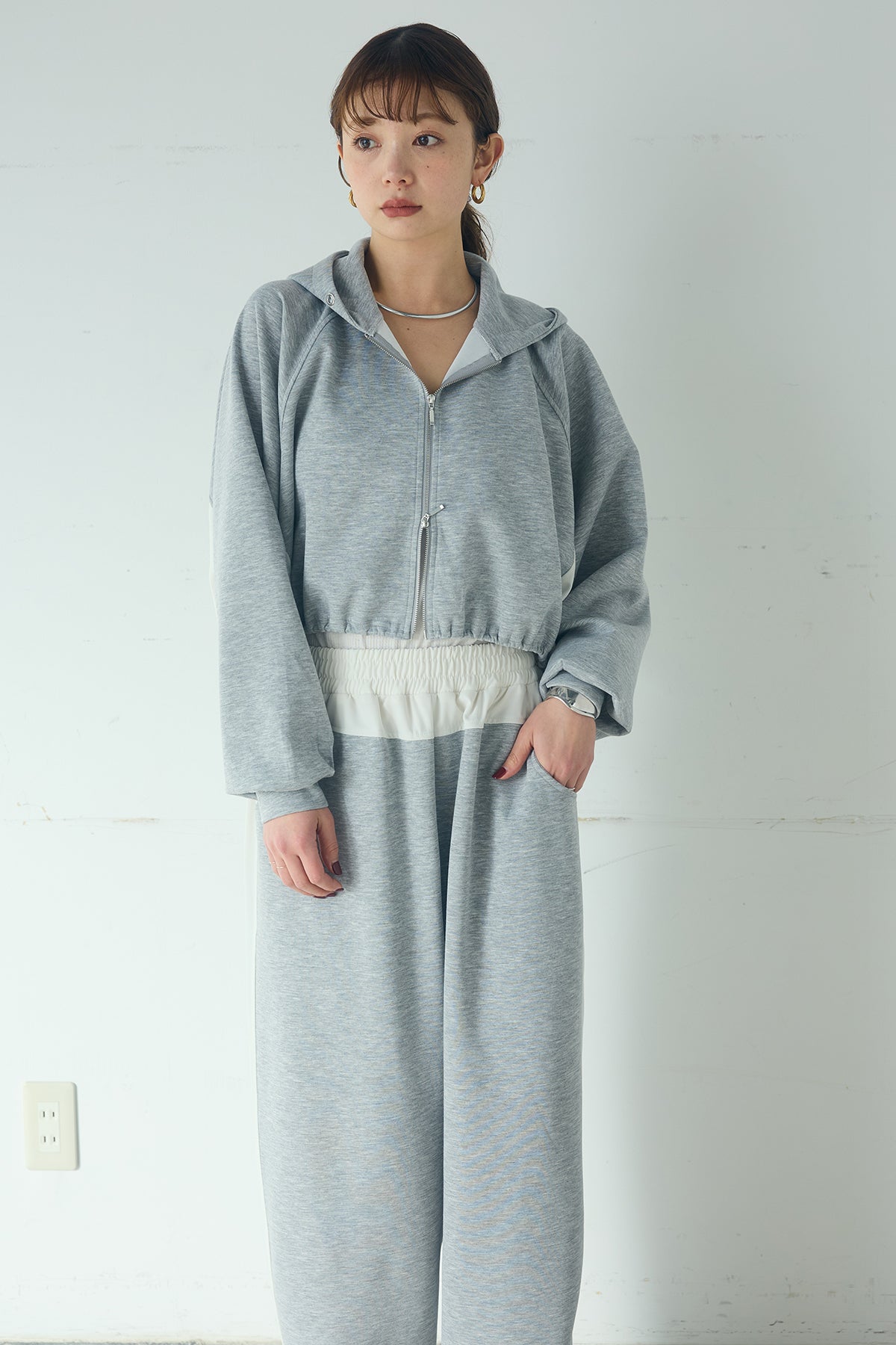 [SET]ドルマンショートフーディー+異素材切り替えスウェットパンツ(2set)