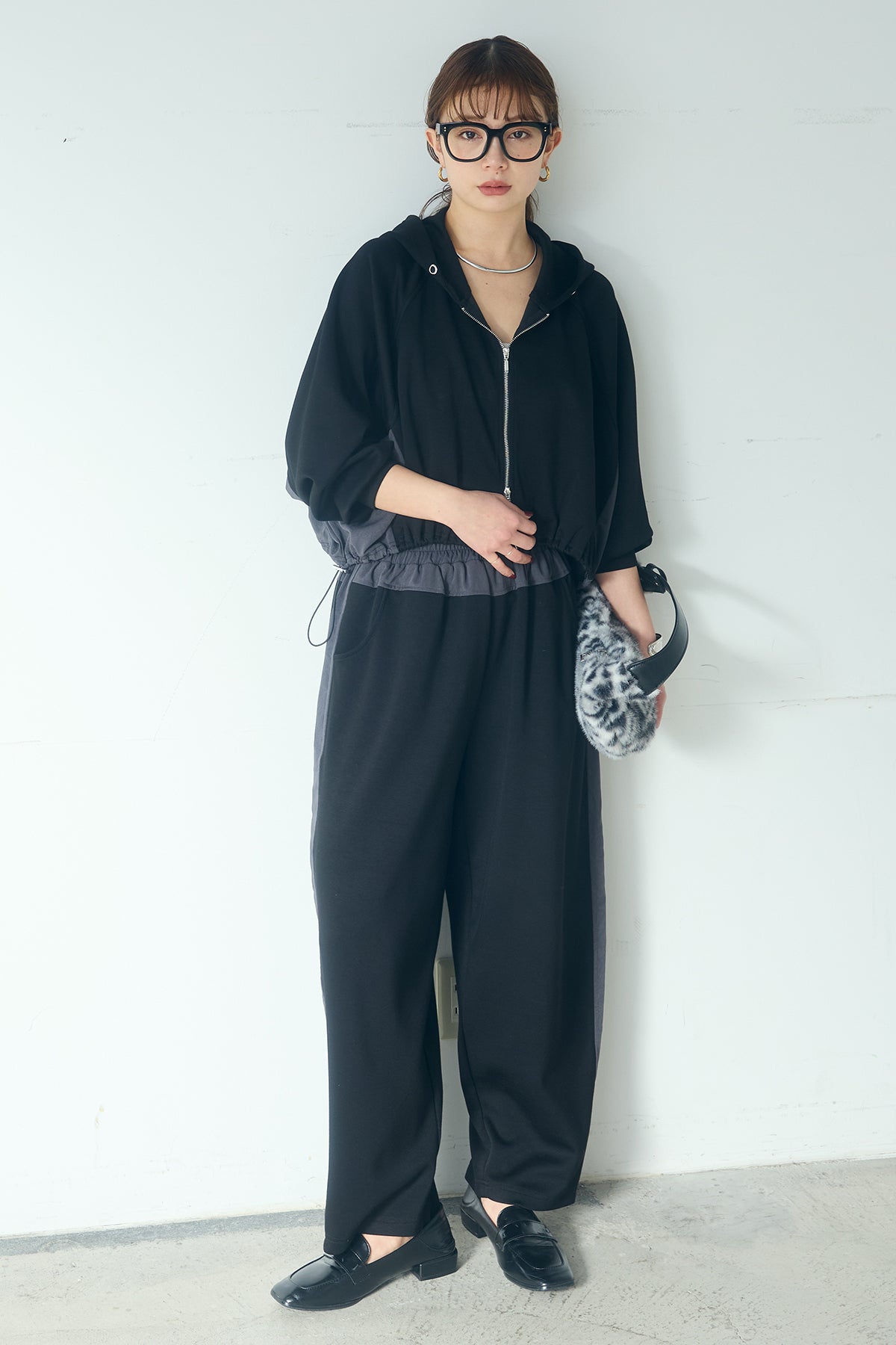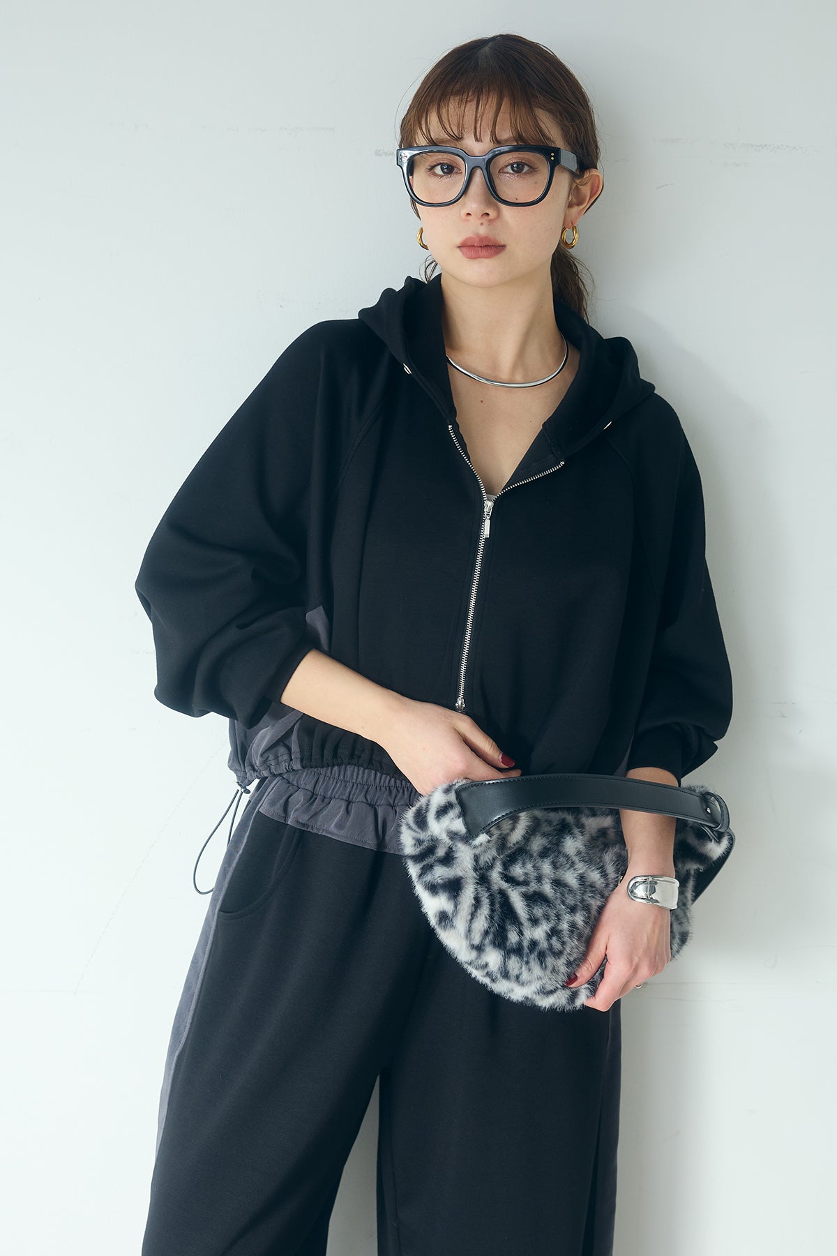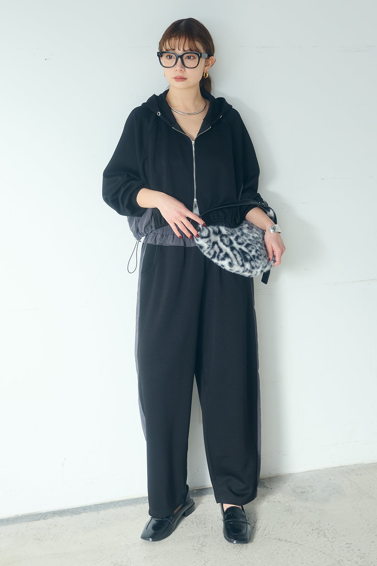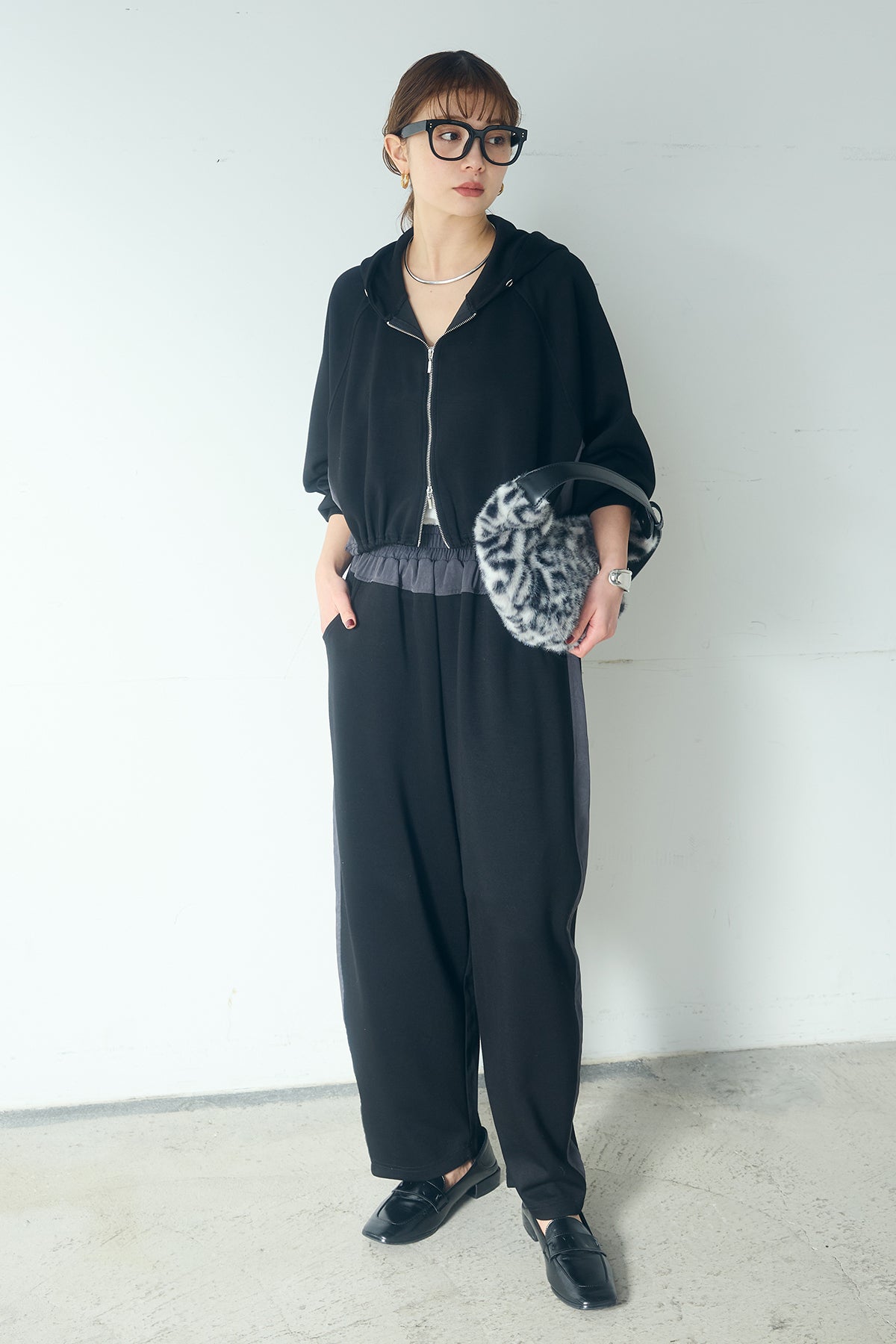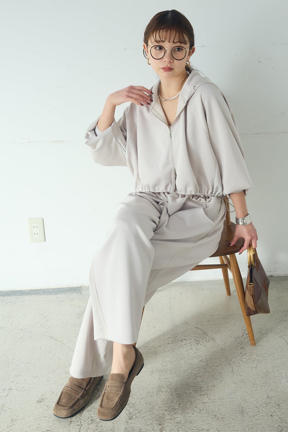 [SET]ドルマンショートフーディー+異素材切り替えスウェットパンツ(2set)