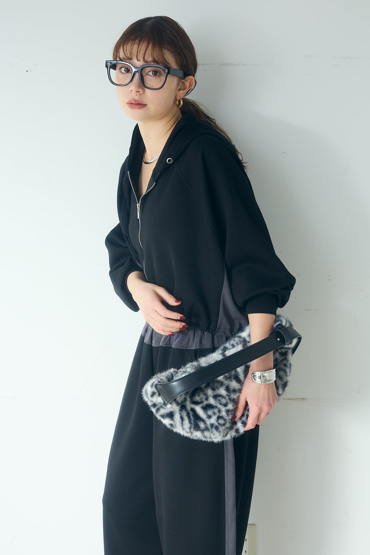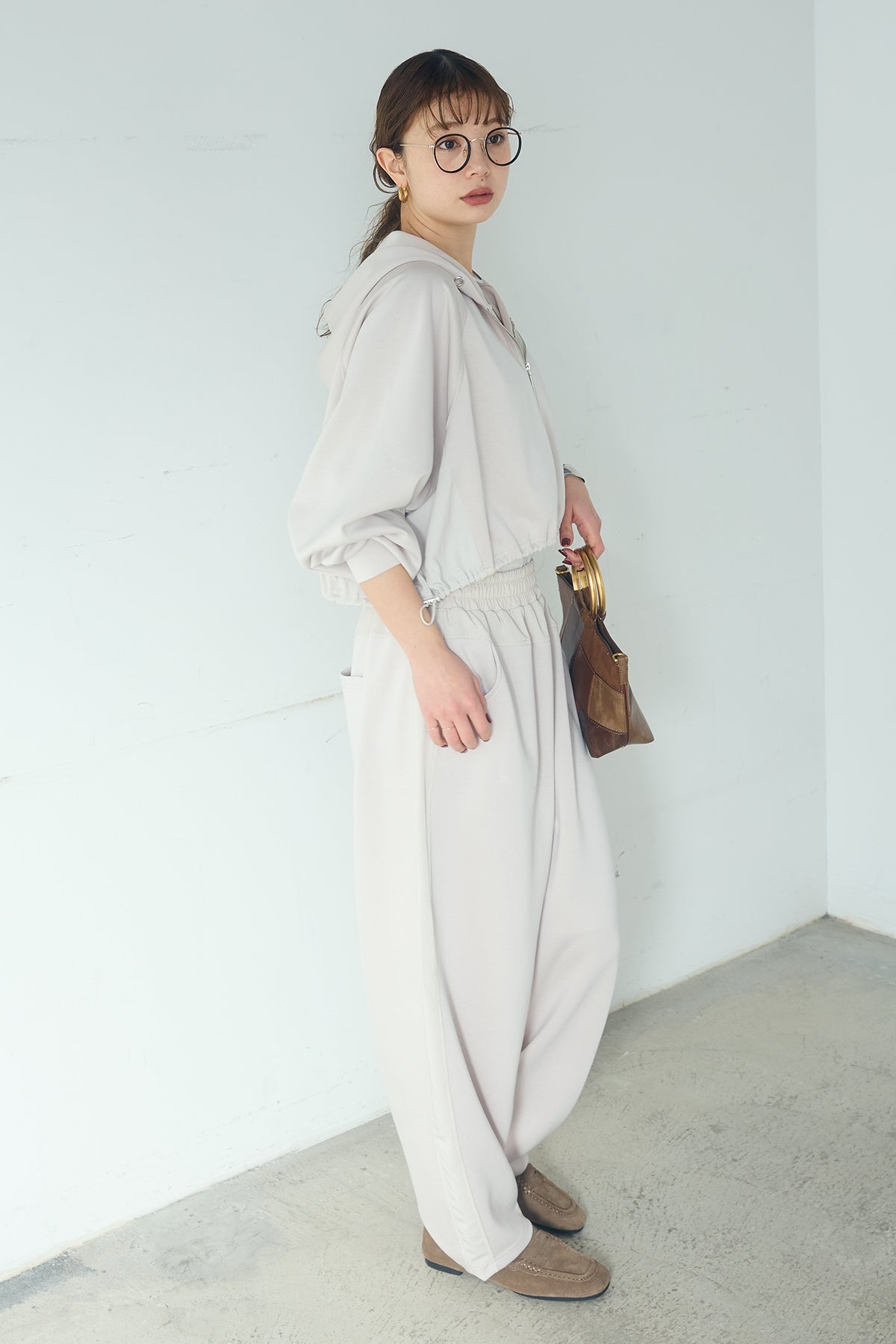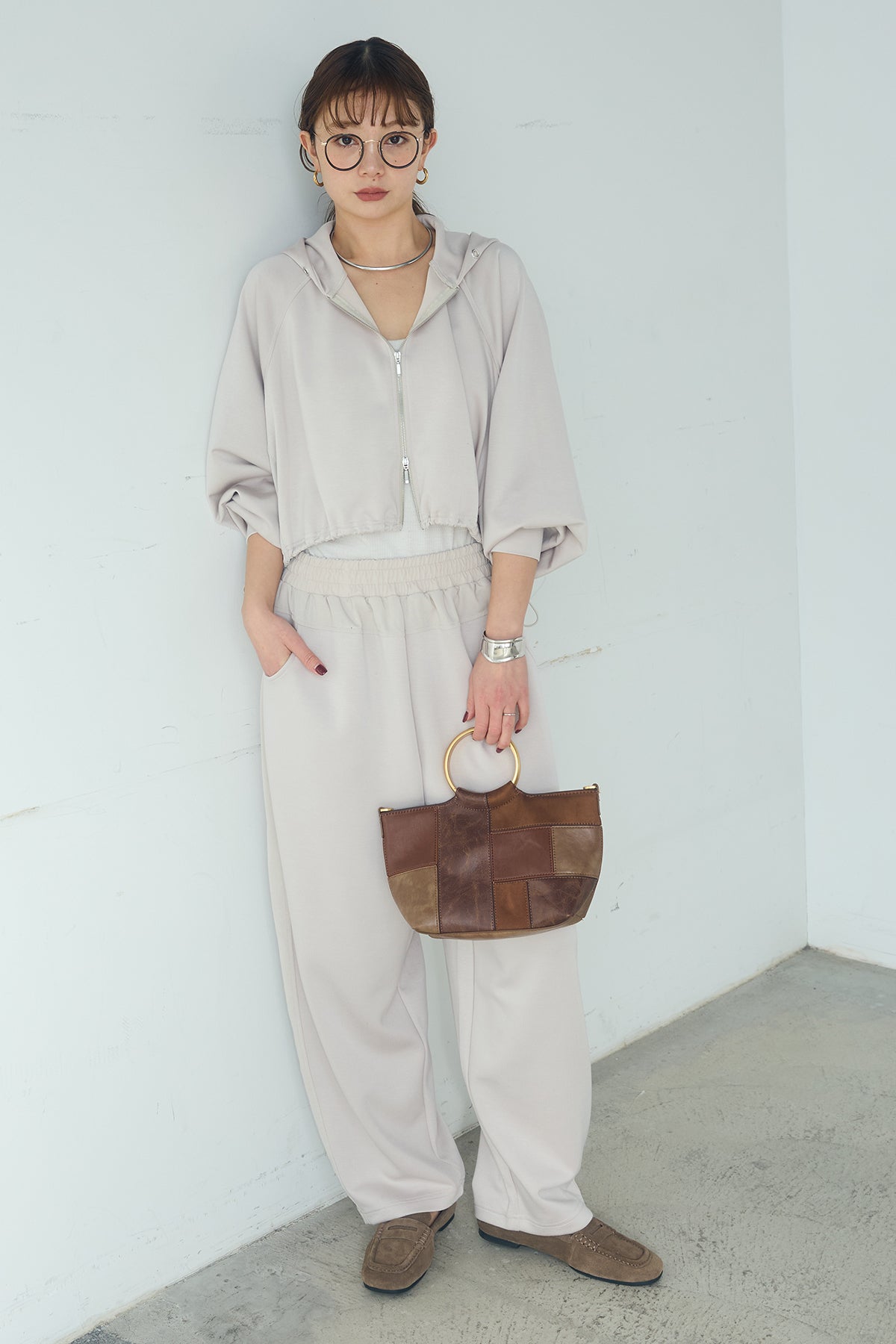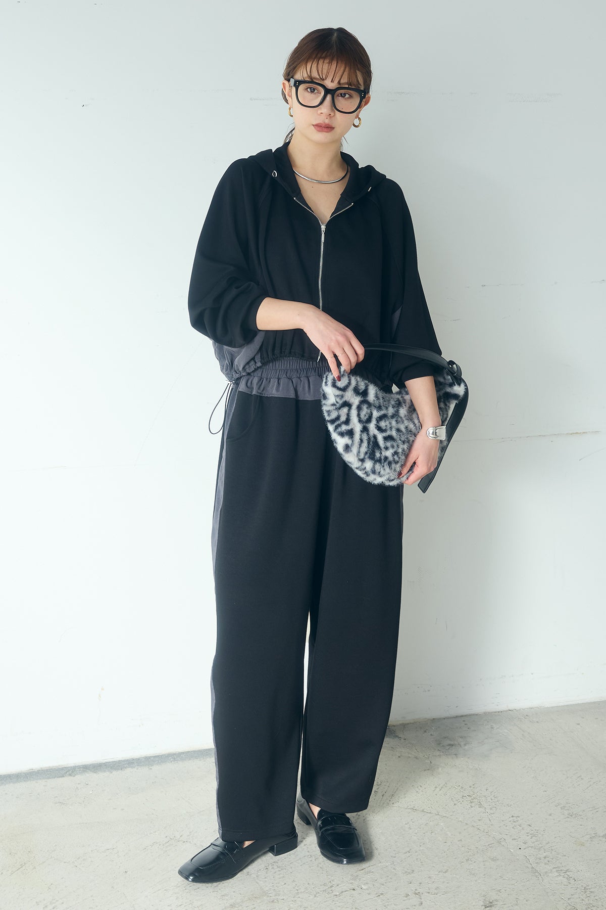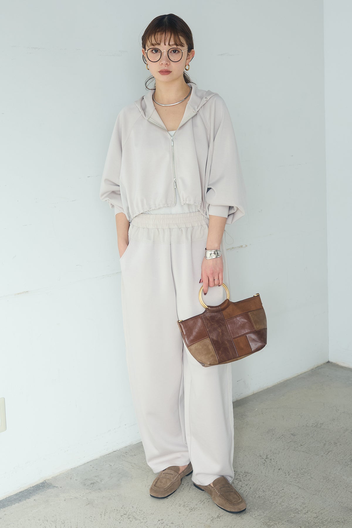 [SET]ドルマンショートフーディー+異素材切り替えスウェットパンツ(2set)