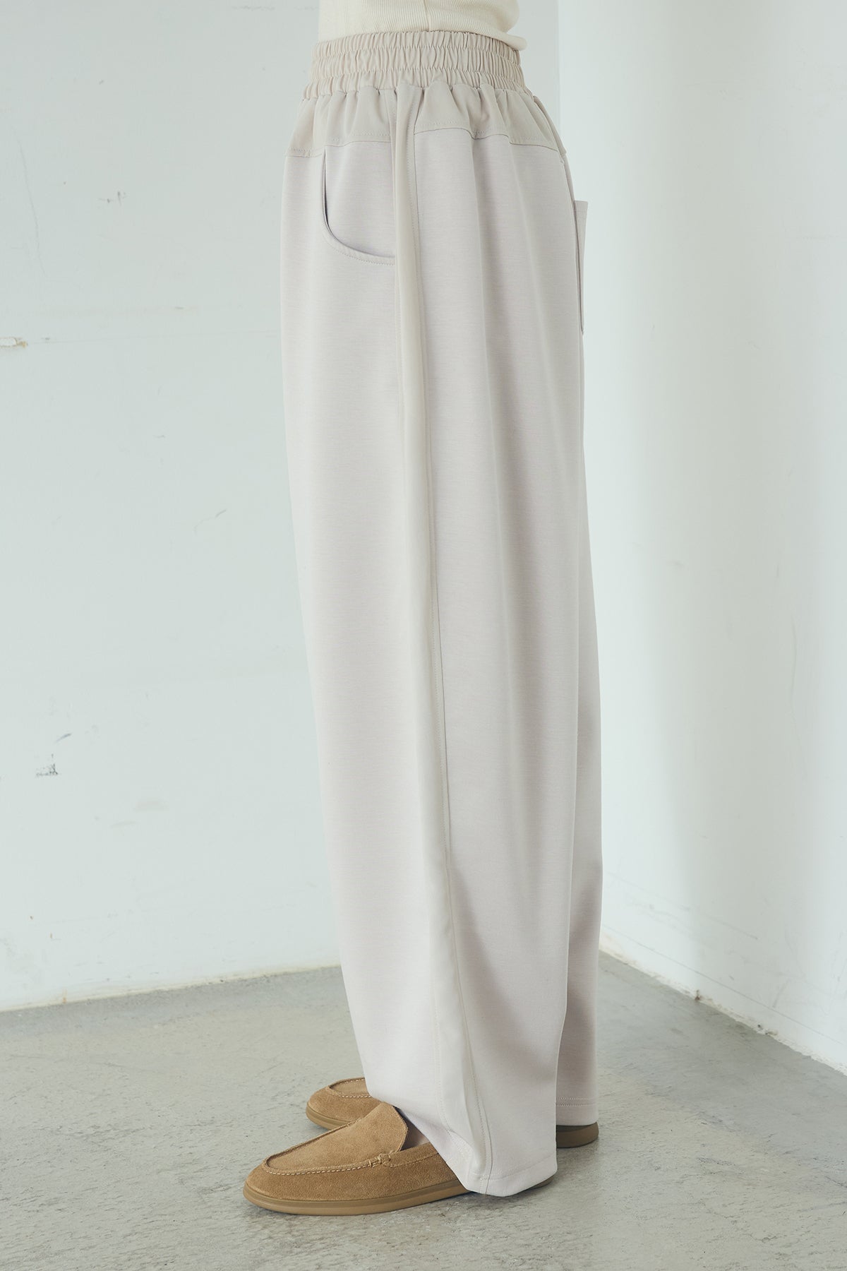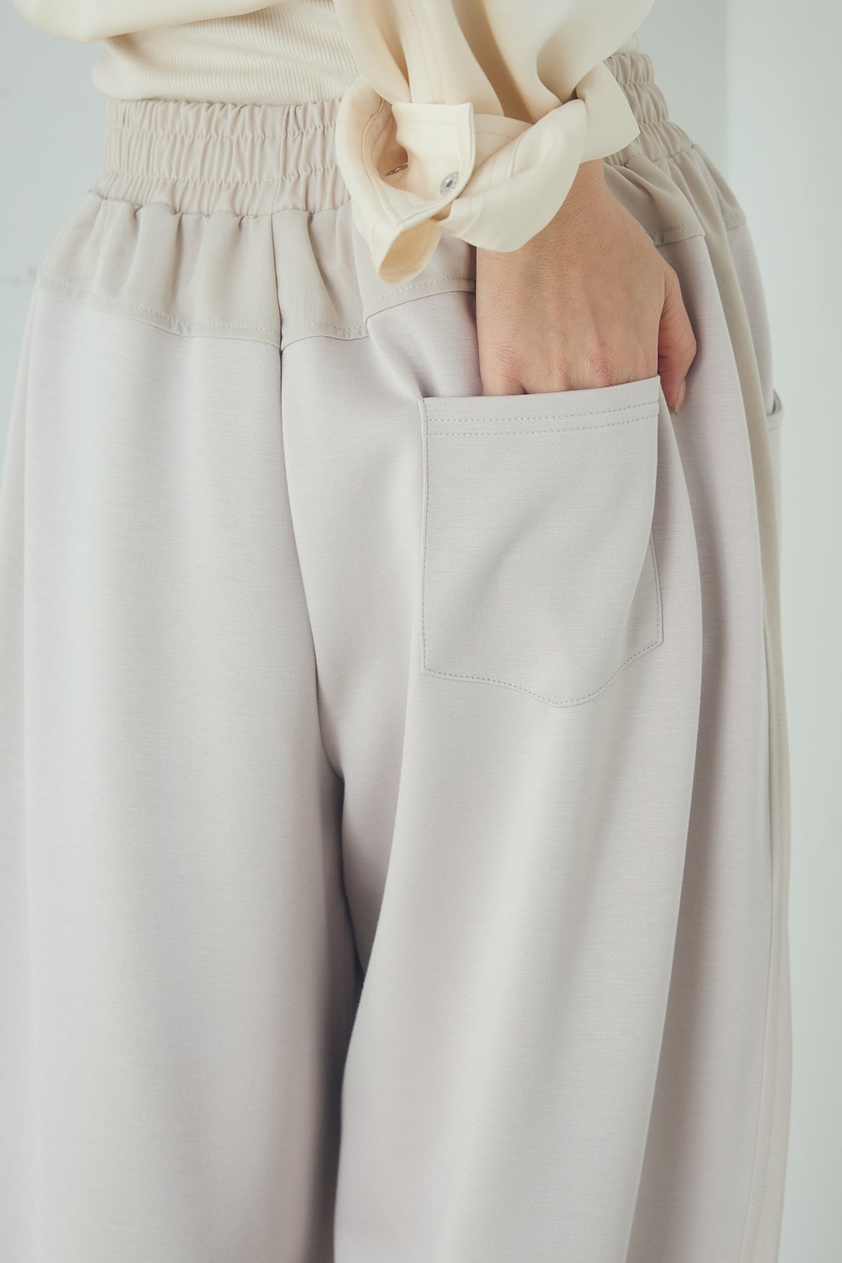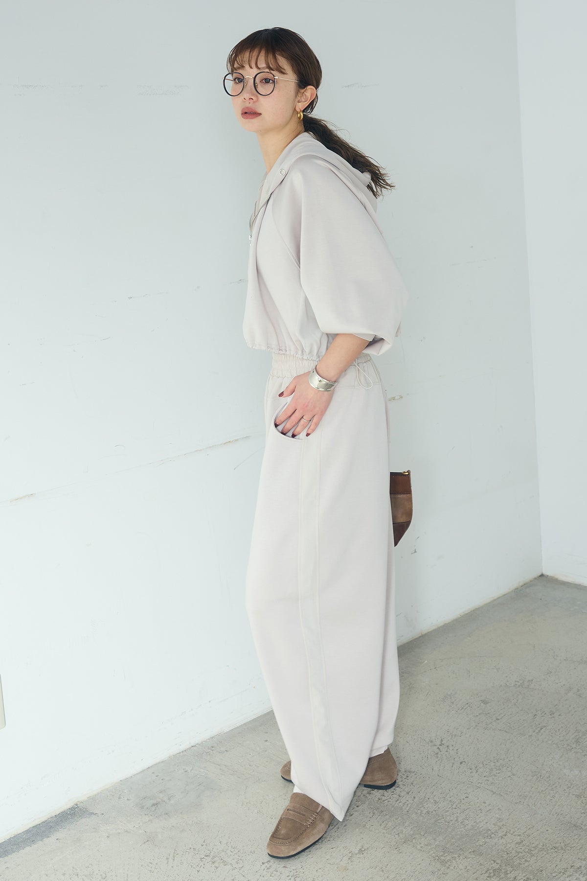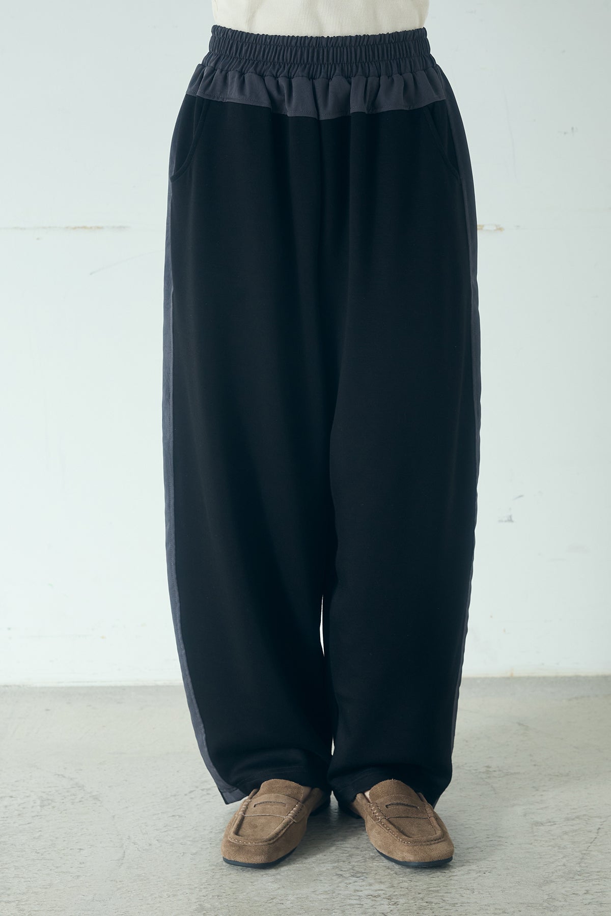 ウエストまわりの切り替えが、シンプルな中に程よいアクセントを添えるスウェットパンツ。 ほどよく落ち感のあるシルエットで、ラフになりすぎず、スタイリングに取り入れやすい一本です。 ウエストはゴム仕様で、リラックス感のある穿き心地。 トップスをインしてもバランスが取りやすく、ニットやシャツとも好相性で幅広く活躍します。