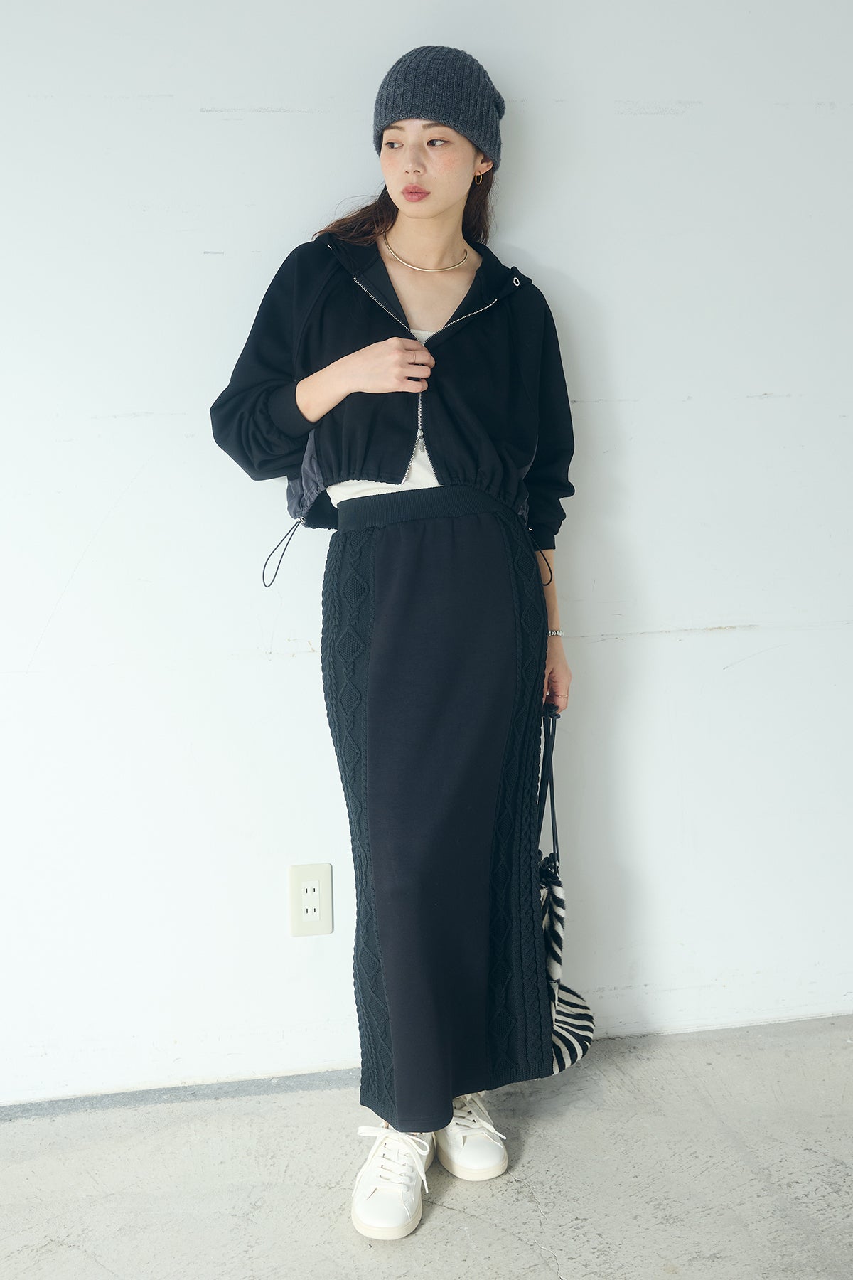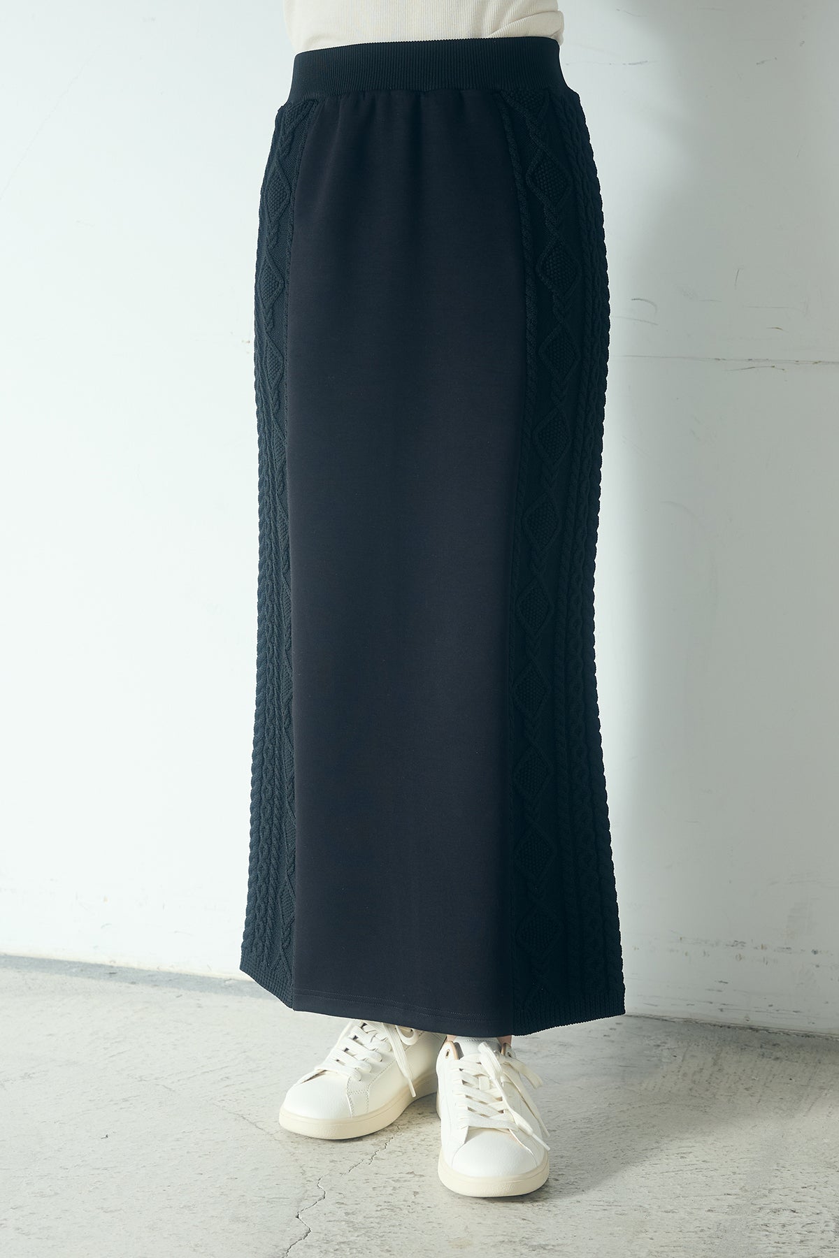 ◆ 異素材ドッキングケーブルニットスカート