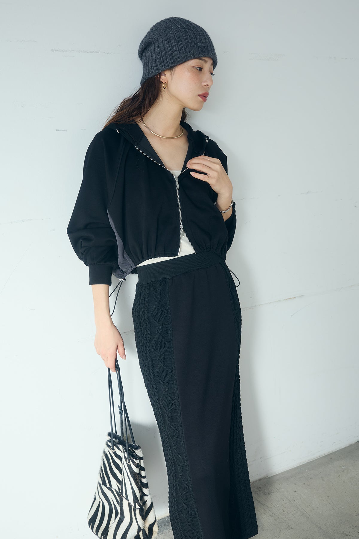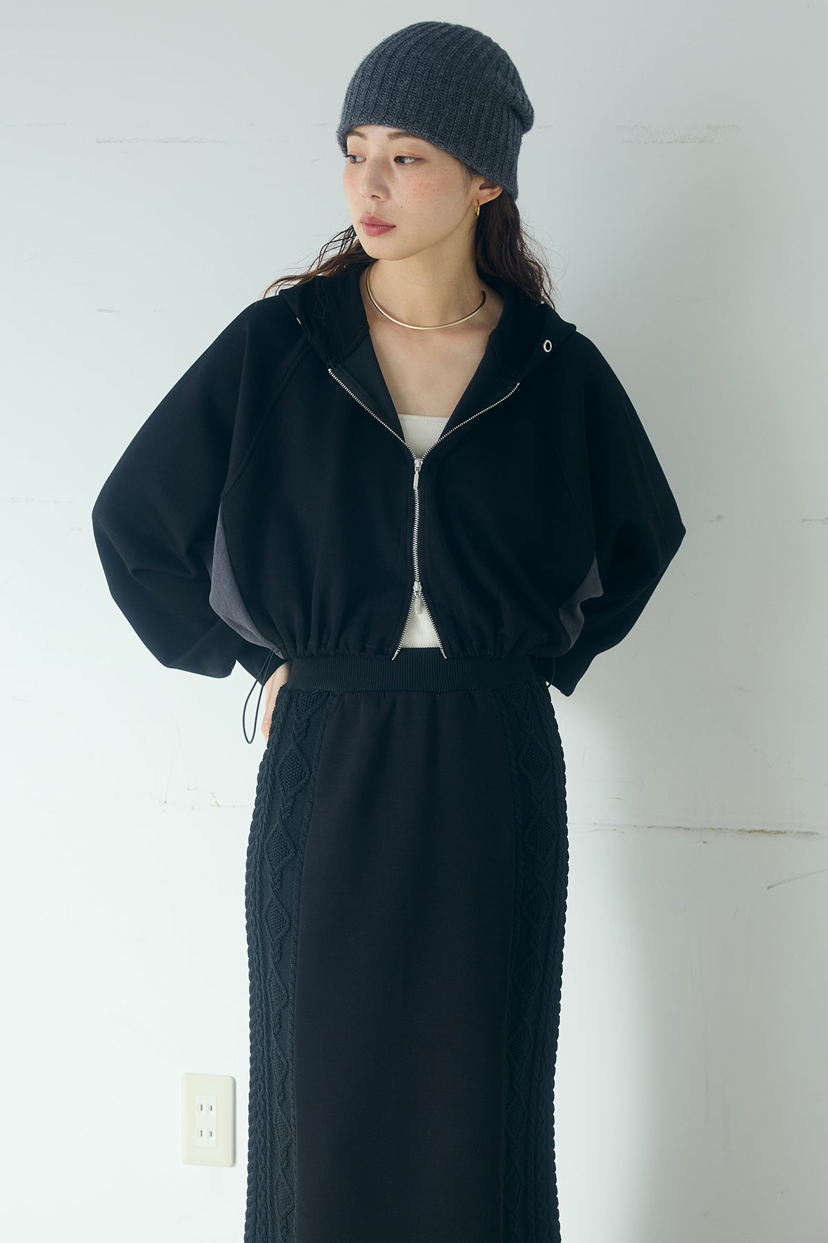 異素材ドッキングケーブルニットスカートの他のセットページはこちら