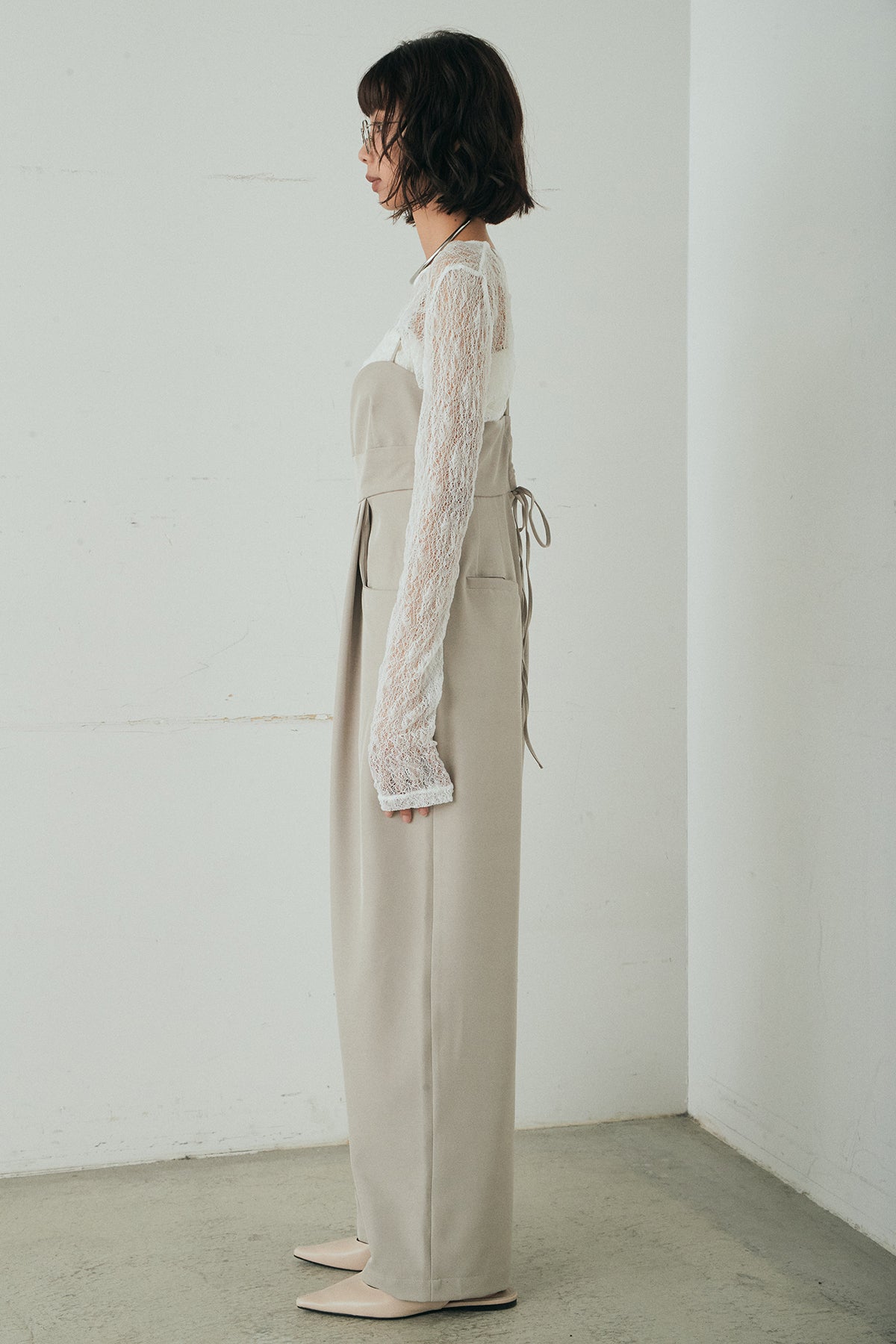 すとんと落ちるワイドシルエットが印象的なキャミロングオールインワン。胸元はすっきりとしたラインで、インナーとのレイヤードが映えるデザインに仕上げました。ハイウエスト位置から広がるシルエットが縦のラインを強調し、バランスよく着こなせます。両サイドのポケットがさりげないアクセントに。カットソーやレーストップスなど、合わせるアイテム次第で雰囲気を変えられる一着です。
