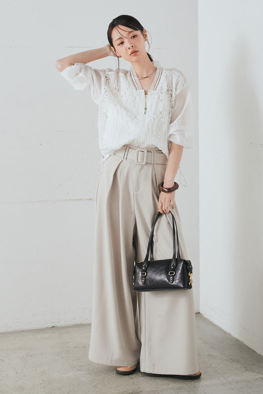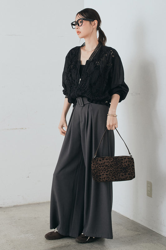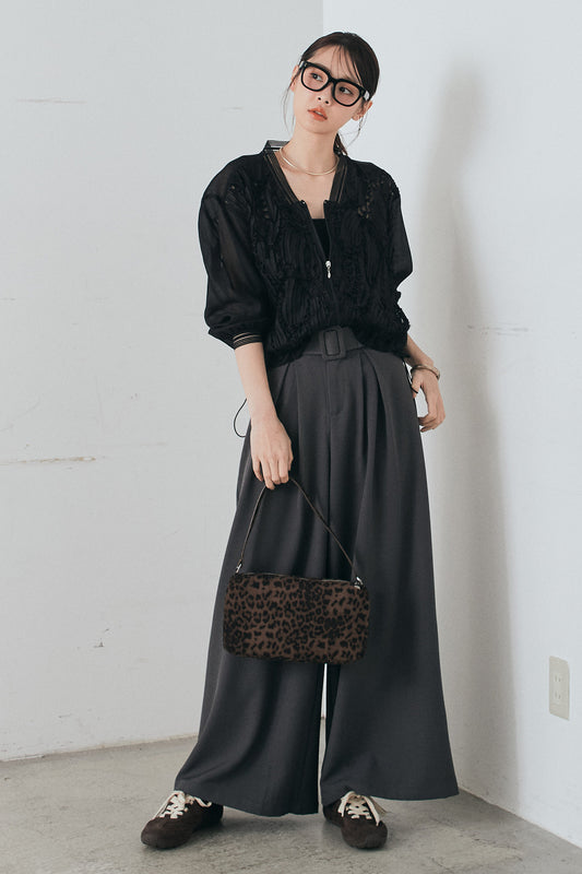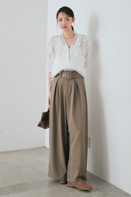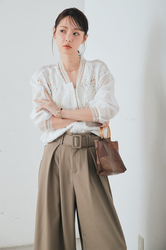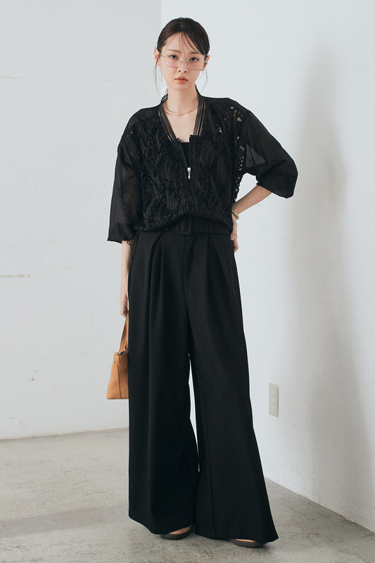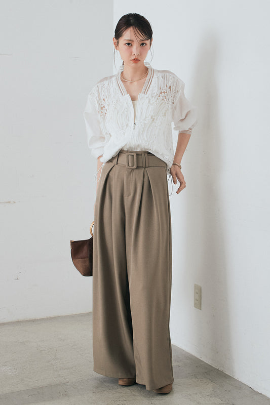 [SET]モチーフ付きシアーブルゾン+ベルト付きツータックワイドパンツ+ベルト付きツータックワイドパンツ(3set)