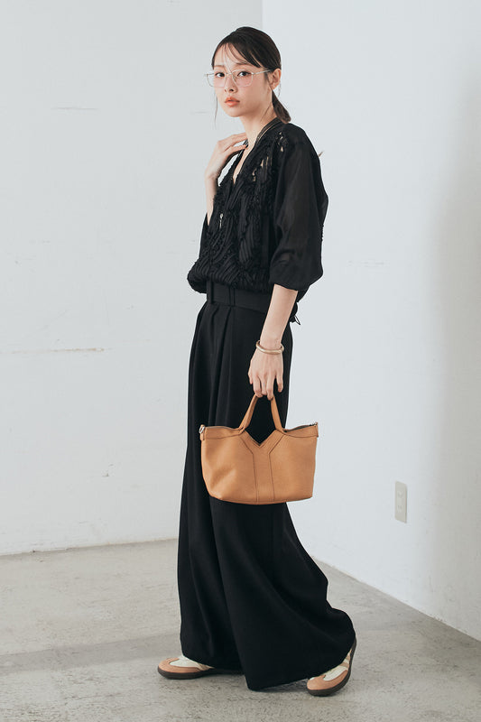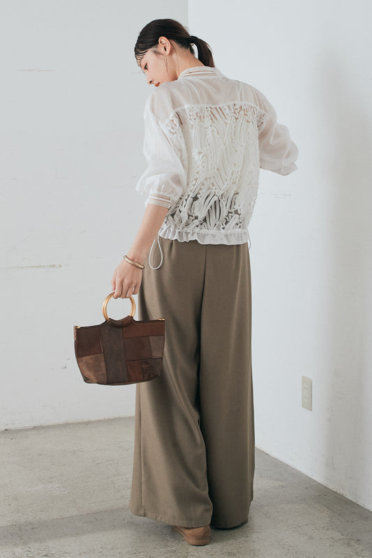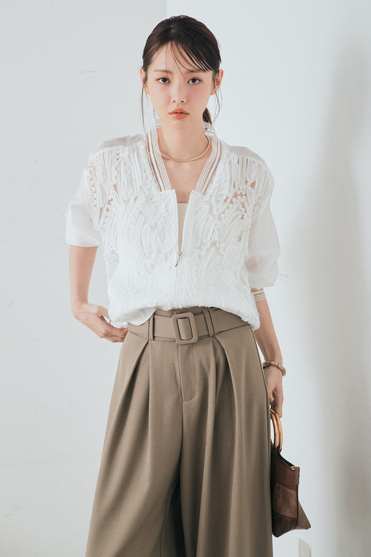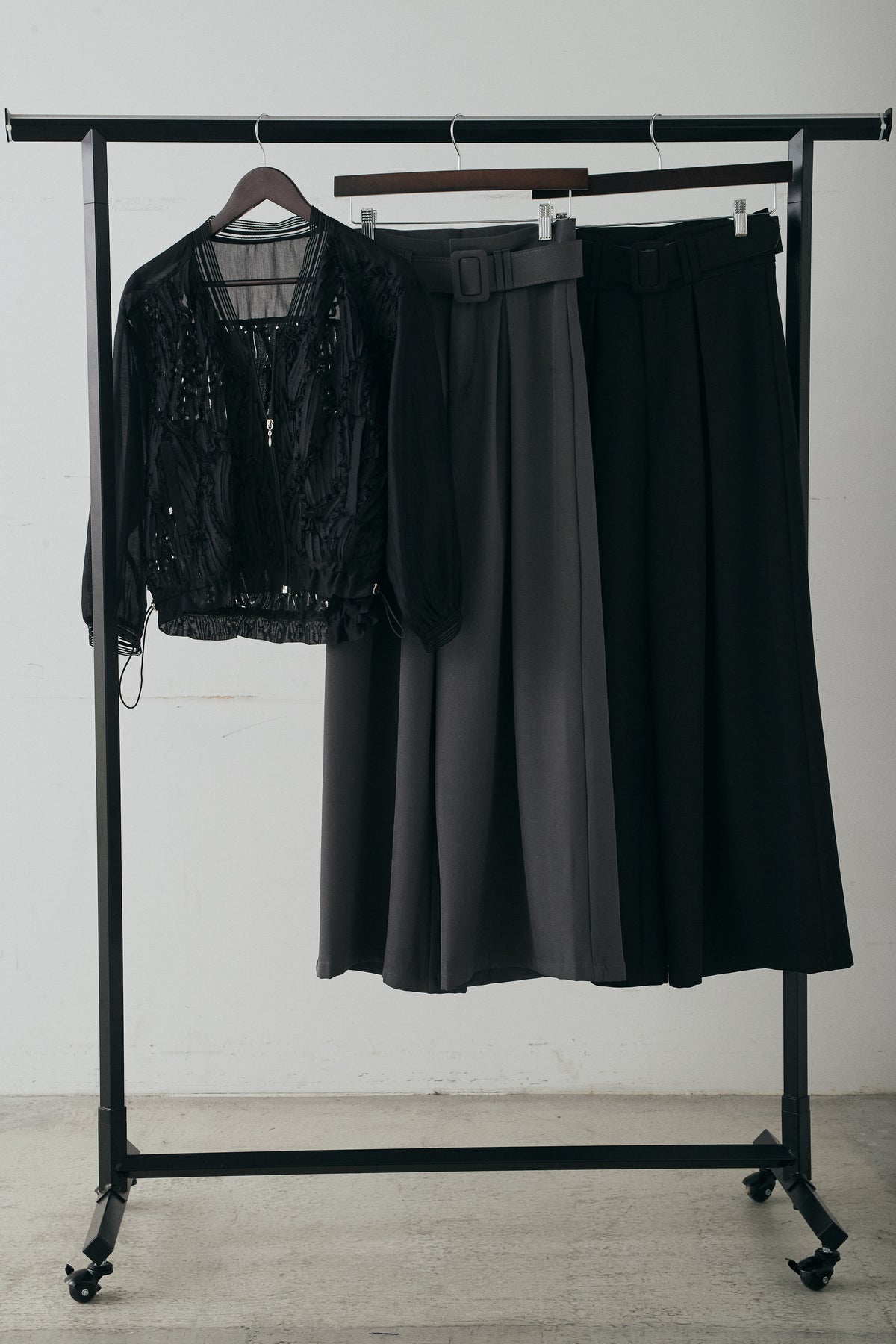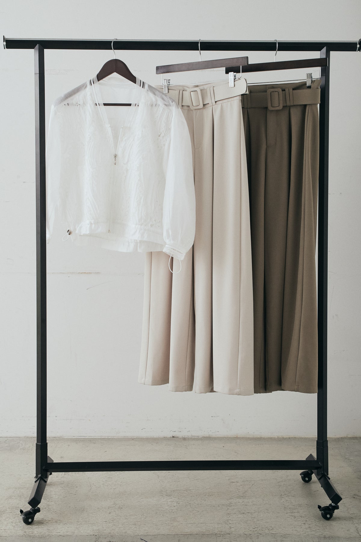 [SET]モチーフ付きシアーブルゾン+ベルト付きツータックワイドパンツ+ベルト付きツータックワイドパンツ(3set)