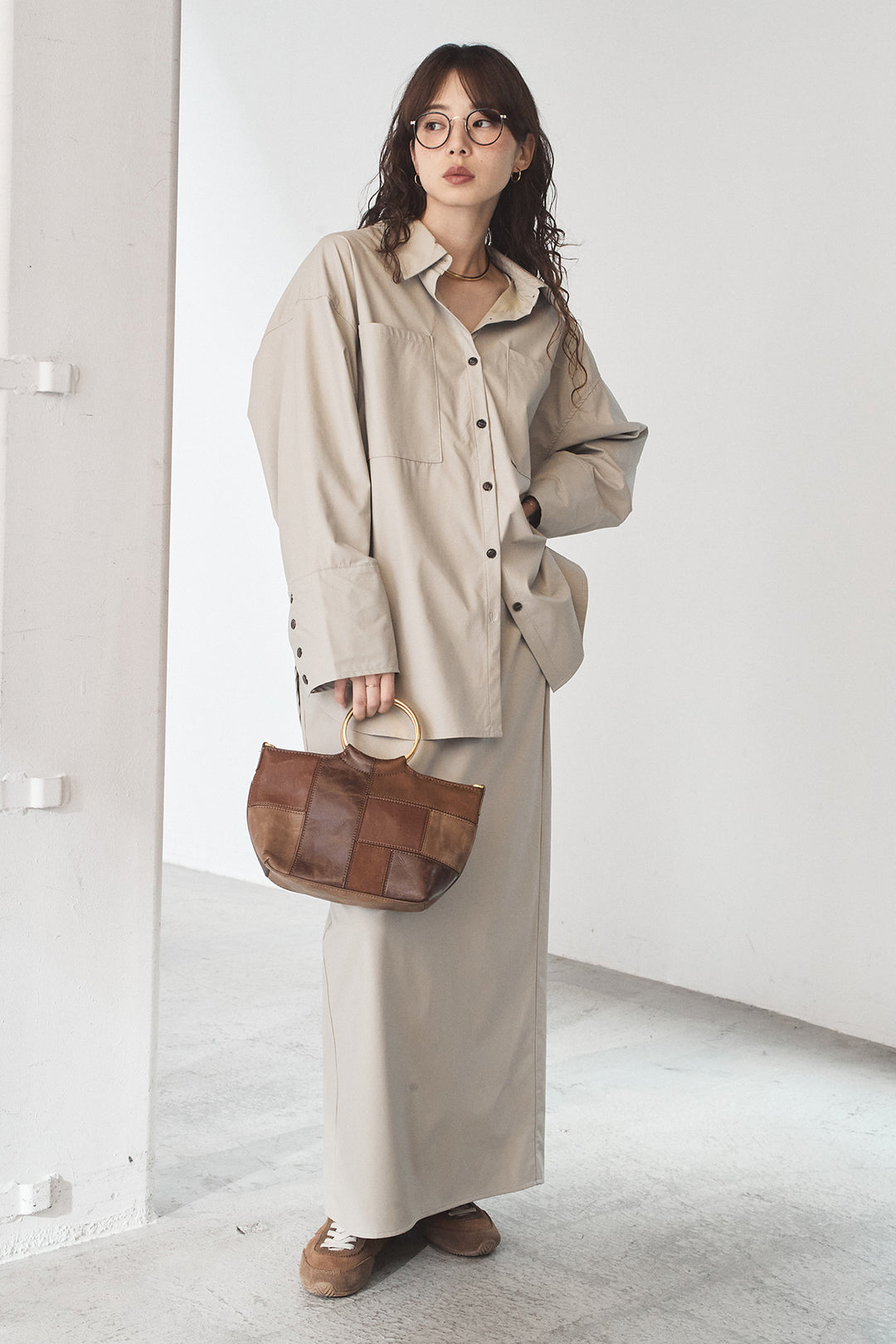 [SET]ウォッシャブルエコレザービックカフスシャツ+ウォッシャブルエコレザーナロースカート(2set)