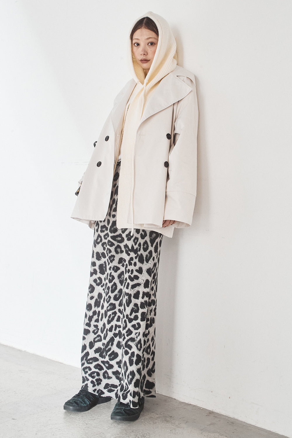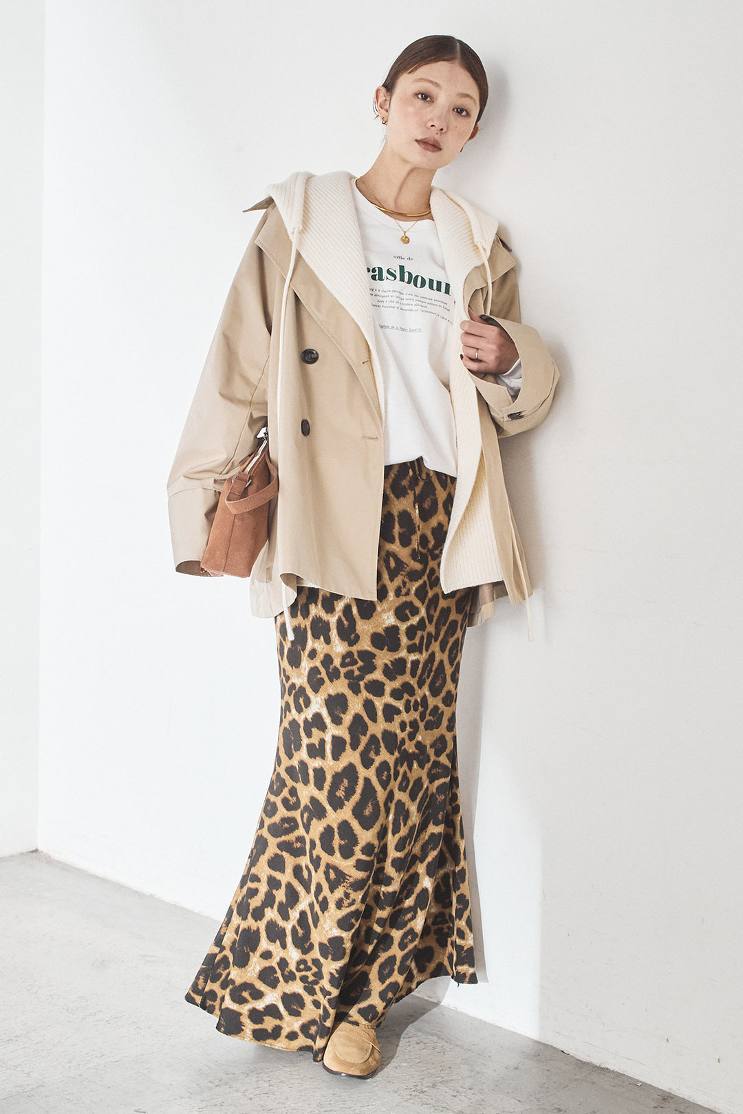 [SET]ナイロントレンチコート+レオパードサテンナロースカート(2set)