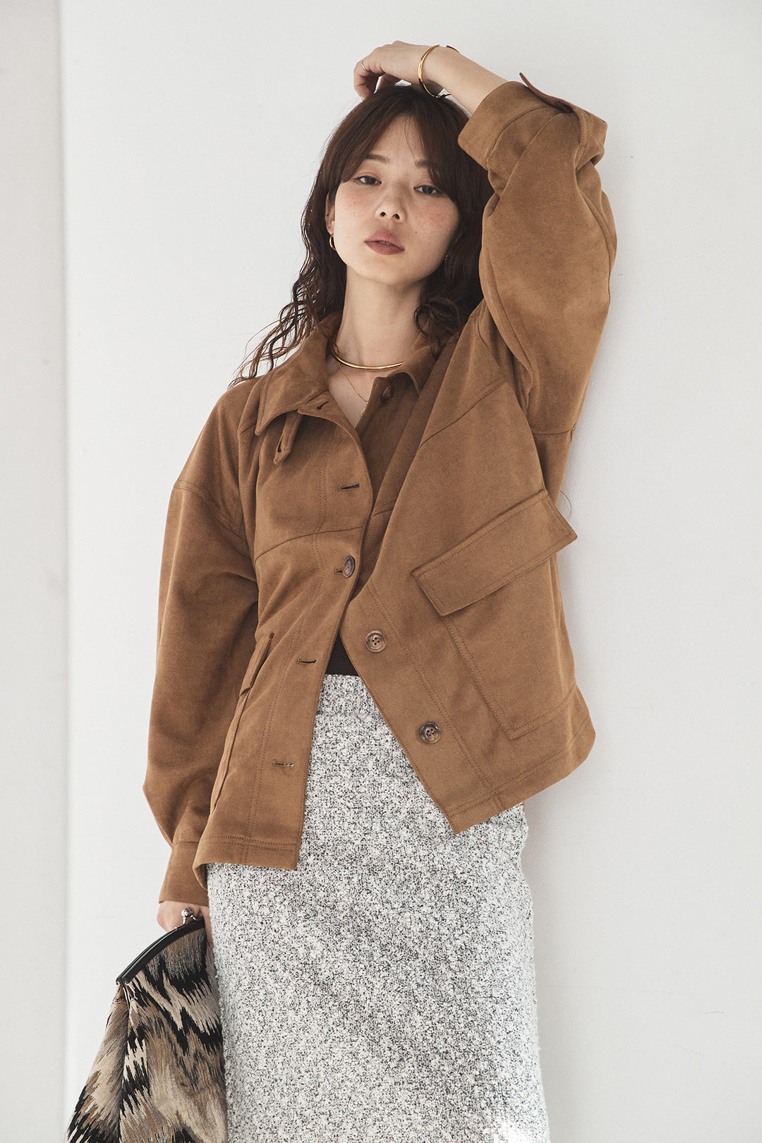 [SET]デカポケスエポンジャケット+ツイード風MIXスラブスカート(2set)