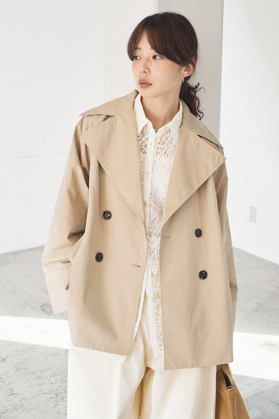 [SET]ナイロントレンチコート+刺繍レースオーバーサイズシャツ(2set)
