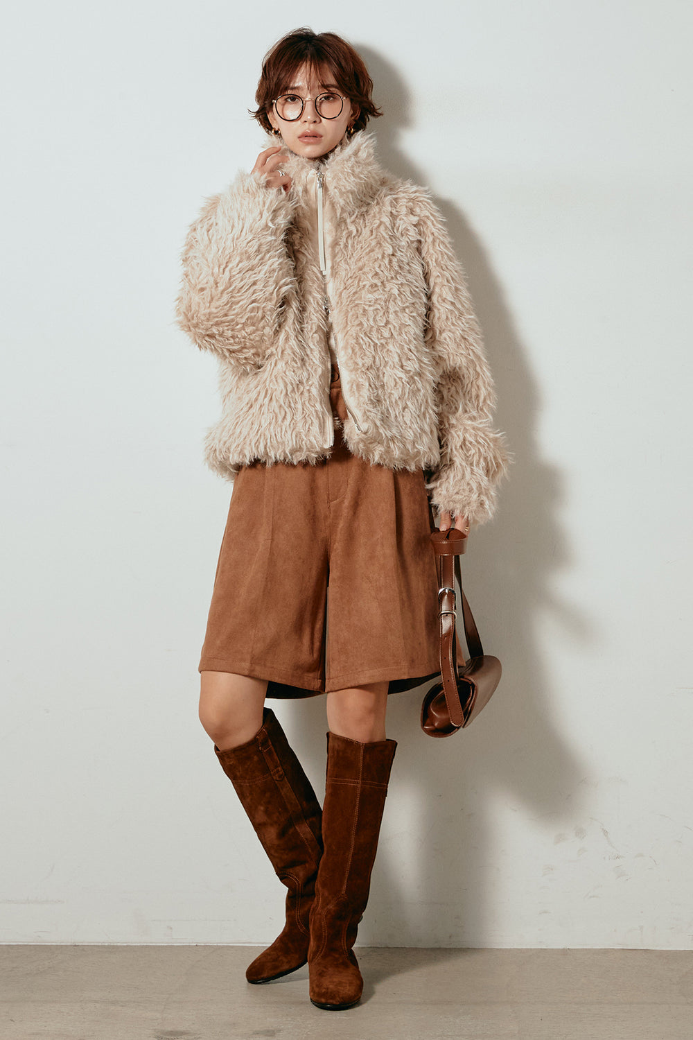 [SET]ミックスシープファースタンドブルゾン+フェイクスウェードハーフパンツ(2set)