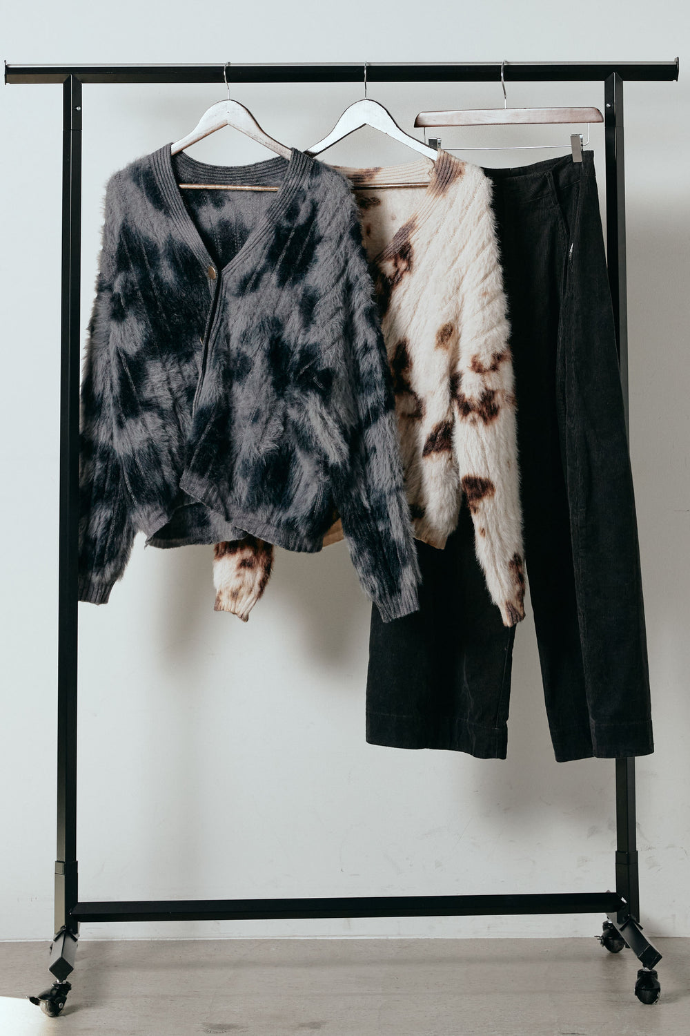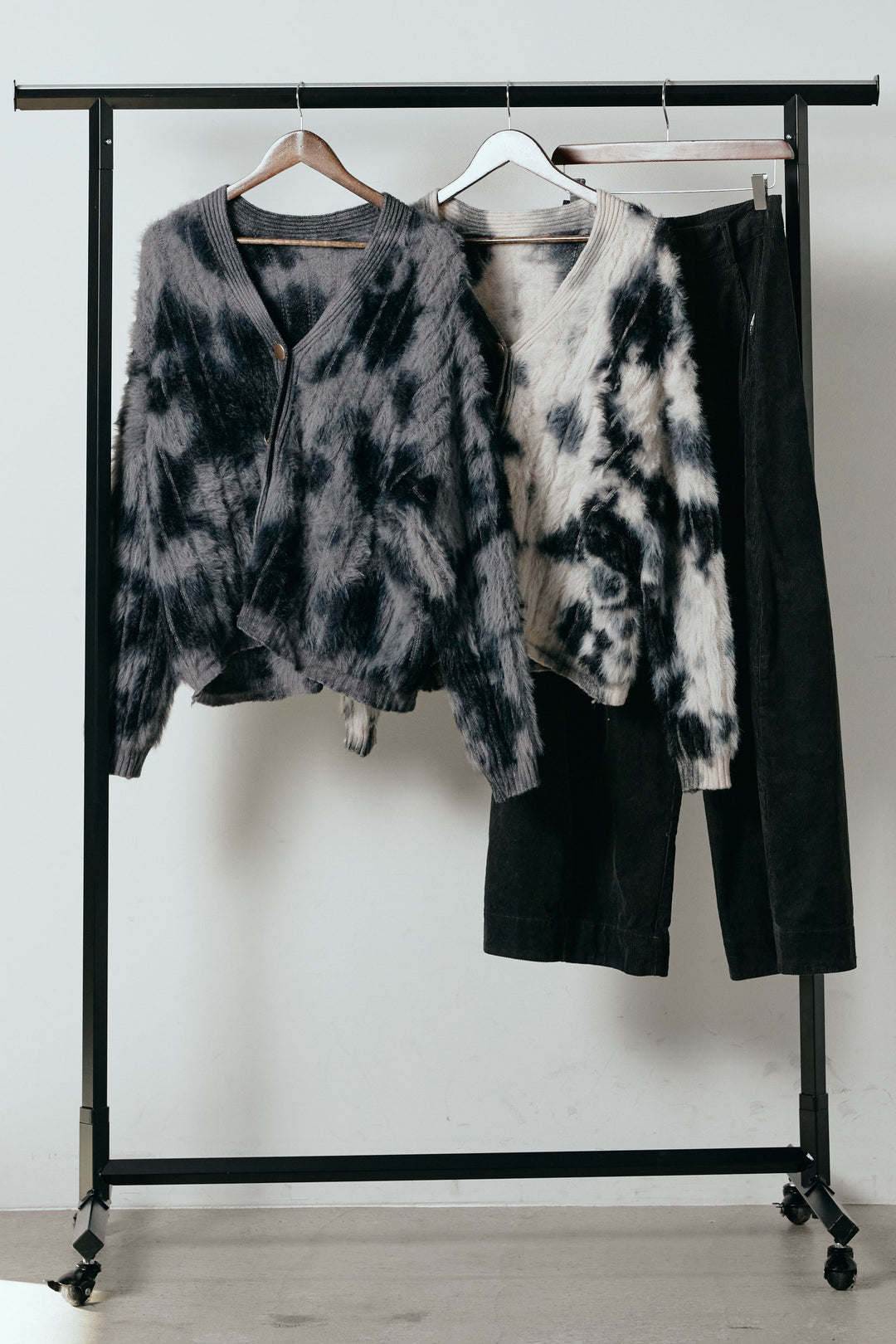 [SET]タイダイ柄シャギーニットカーディガン+タック入りコーデュロイワイドパンツ(2set)