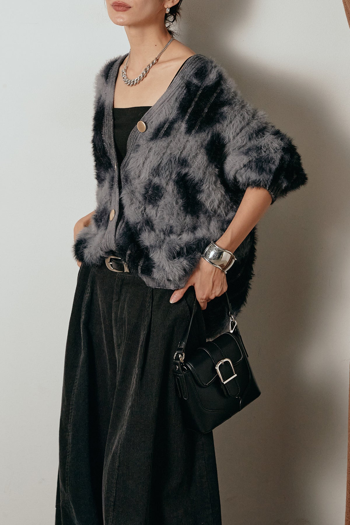 タイダイ柄シャギーニットカーディガン1