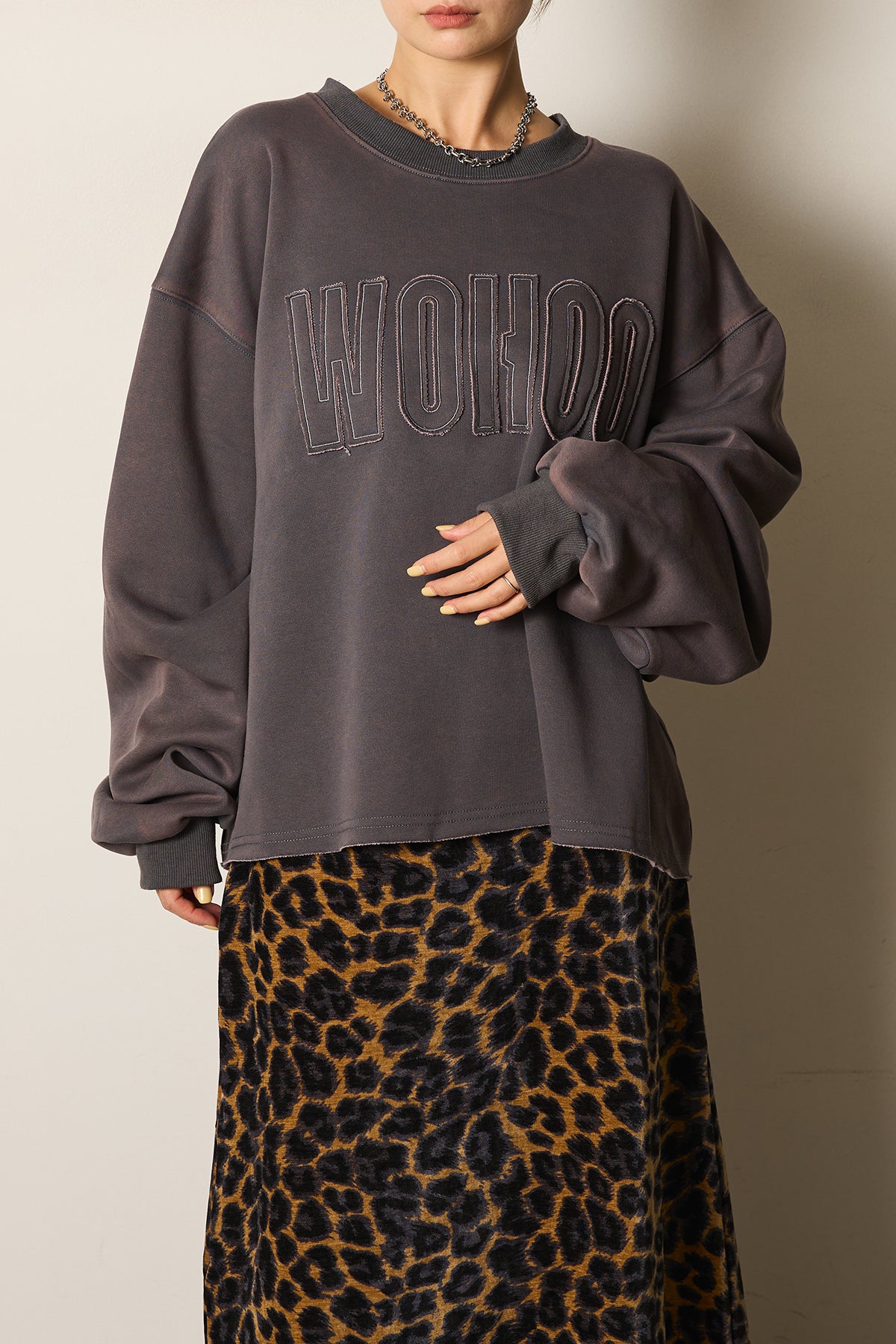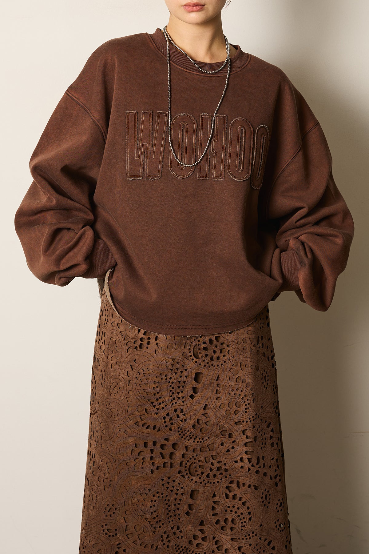 ヴィンテージ感漂うピグメント加工を施したロゴスウェット。立体的な配色ロゴがアクセントとなり、カジュアルスタイルを格上げします。ゆったりとしたシルエットでリラックス感があり、デニムやスカートなど幅広いアイテムと相性抜群の一枚です。