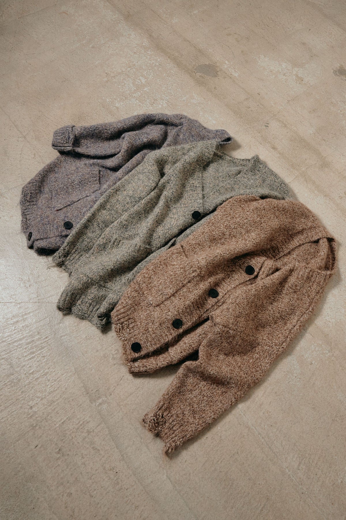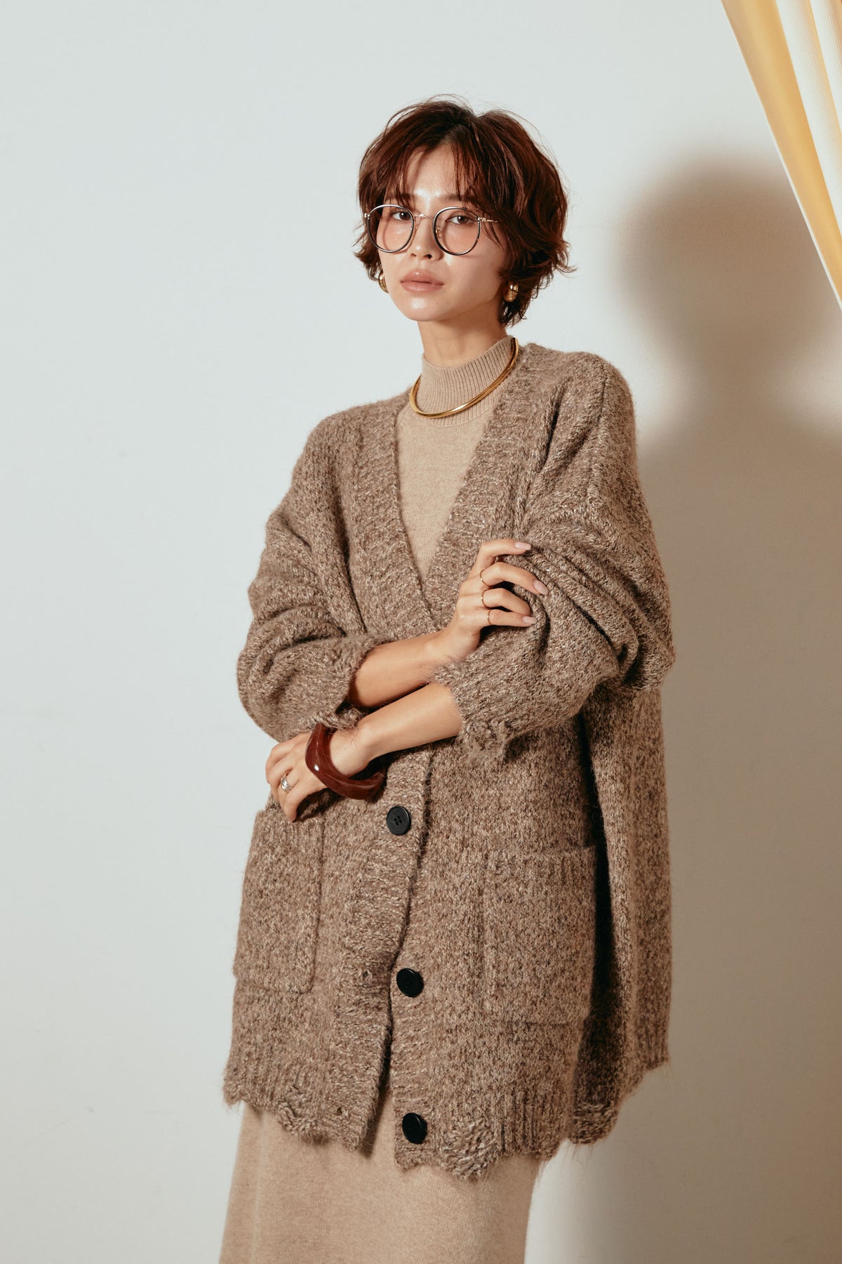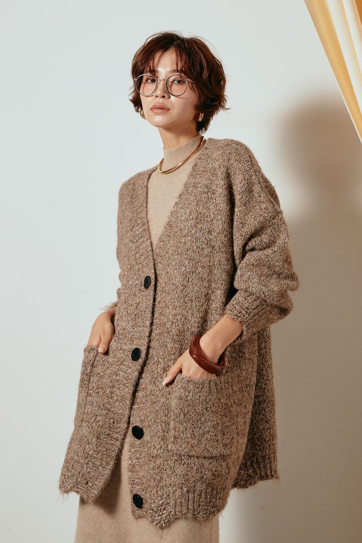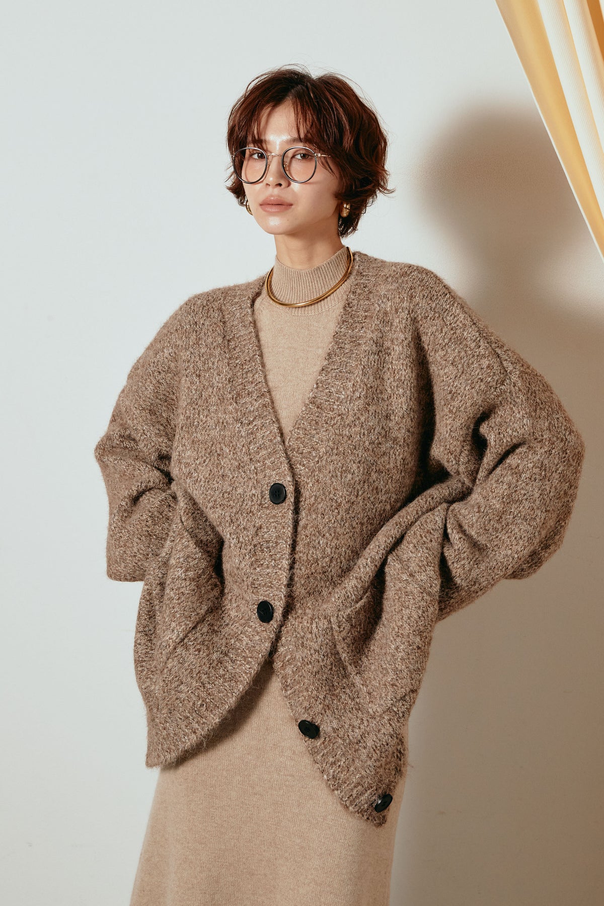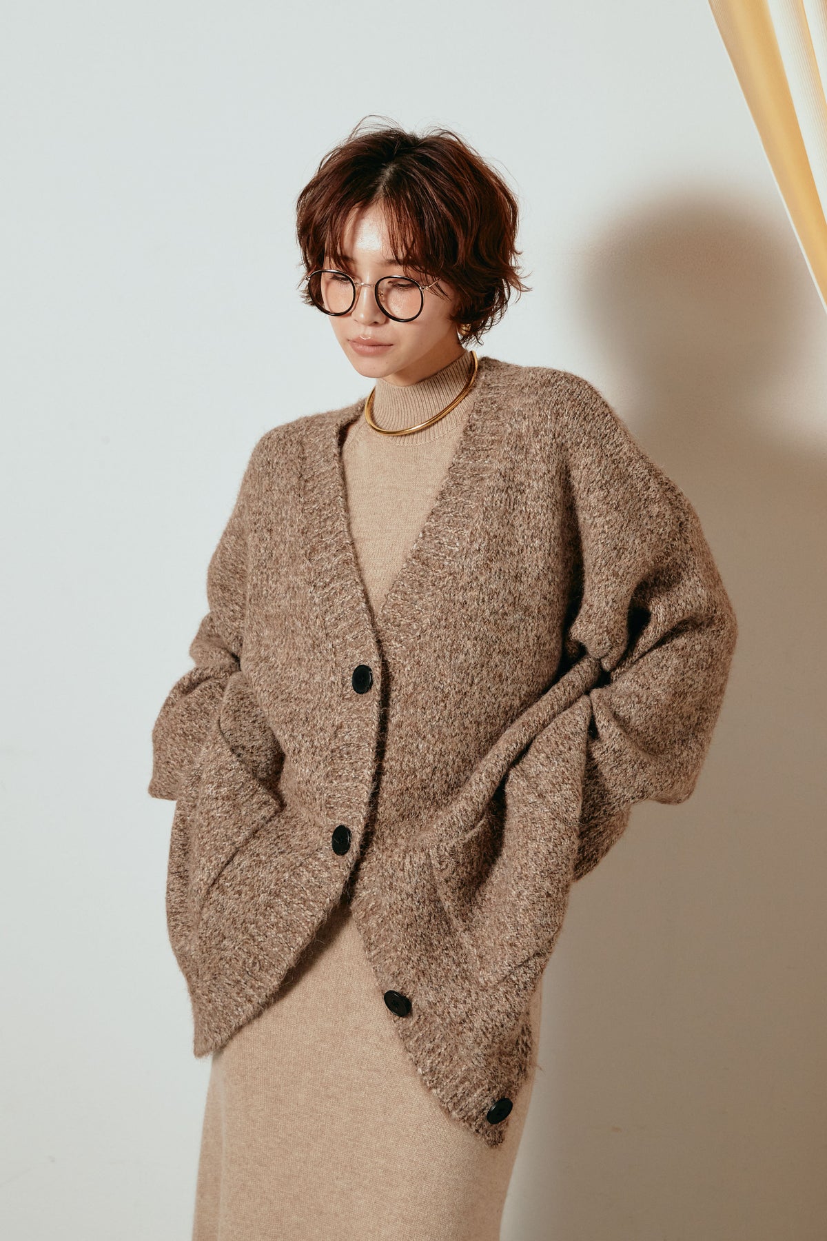 異なる糸をミックスした表情豊かなVネックカーディガン。 程よくゆとりのあるシルエットが抜け感を演出し、羽織るだけでこなれた印象に。 シャツやタートルをレイヤードしてもバランスよくまとまり、季節の変わり目にも重宝する一枚です。