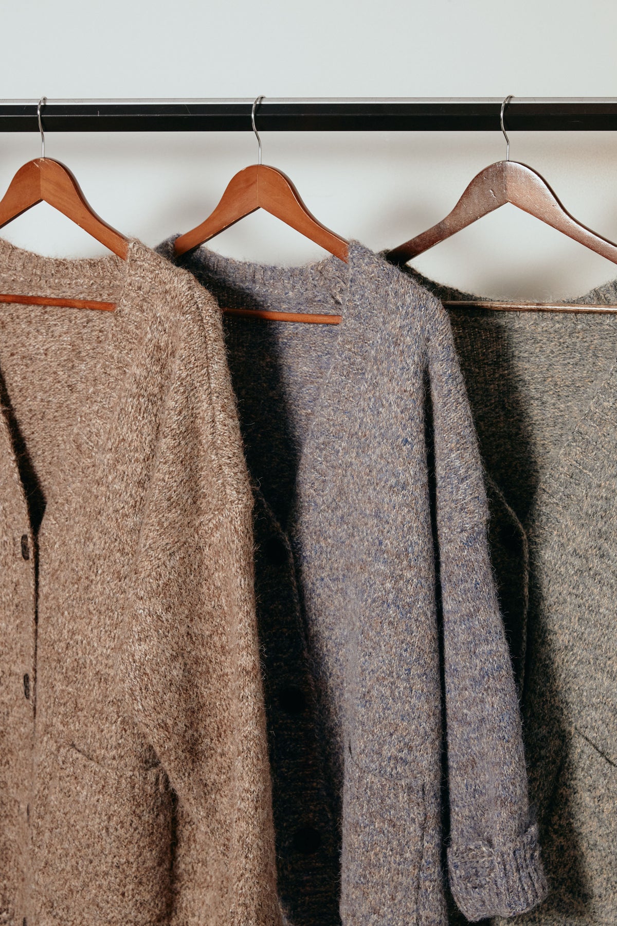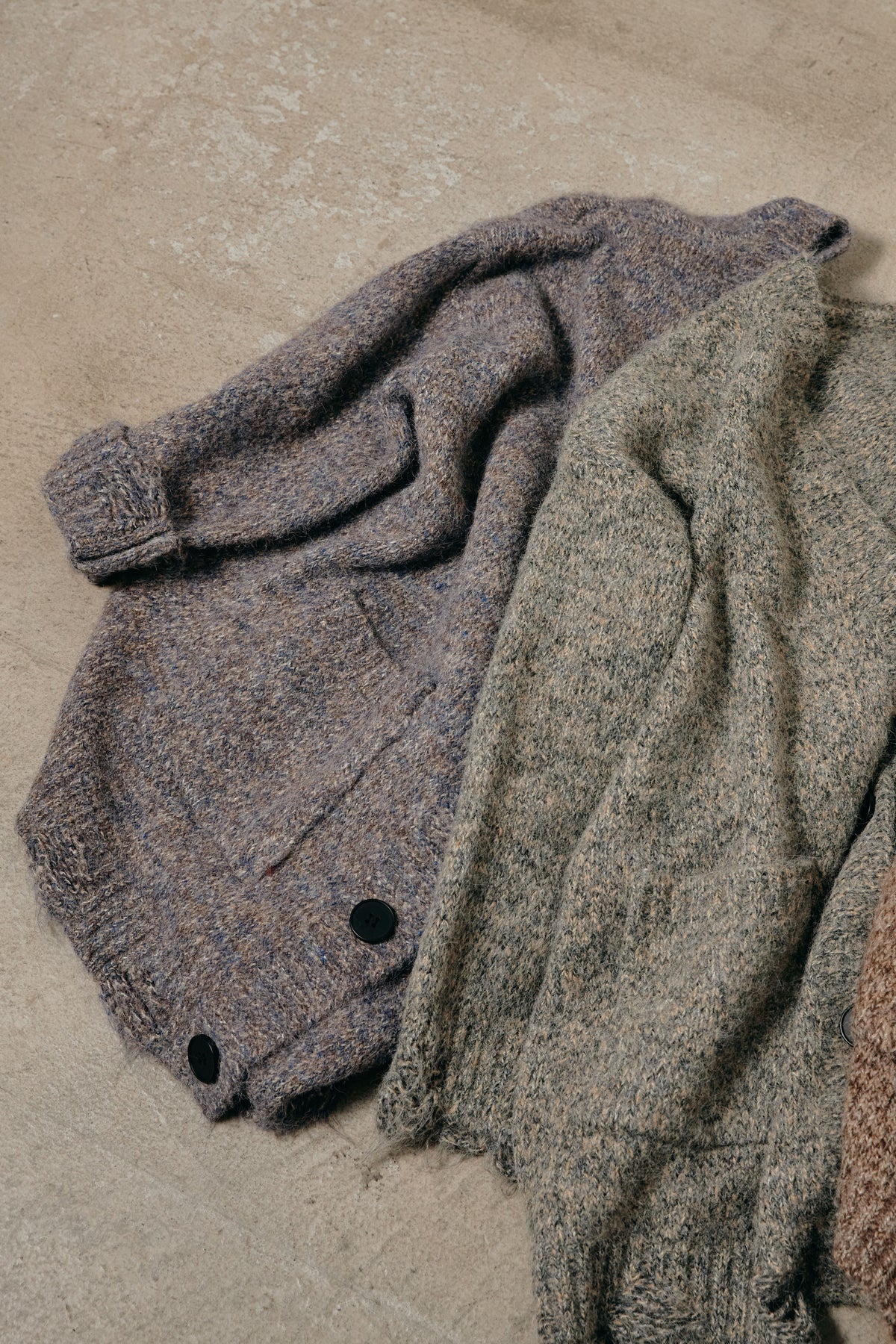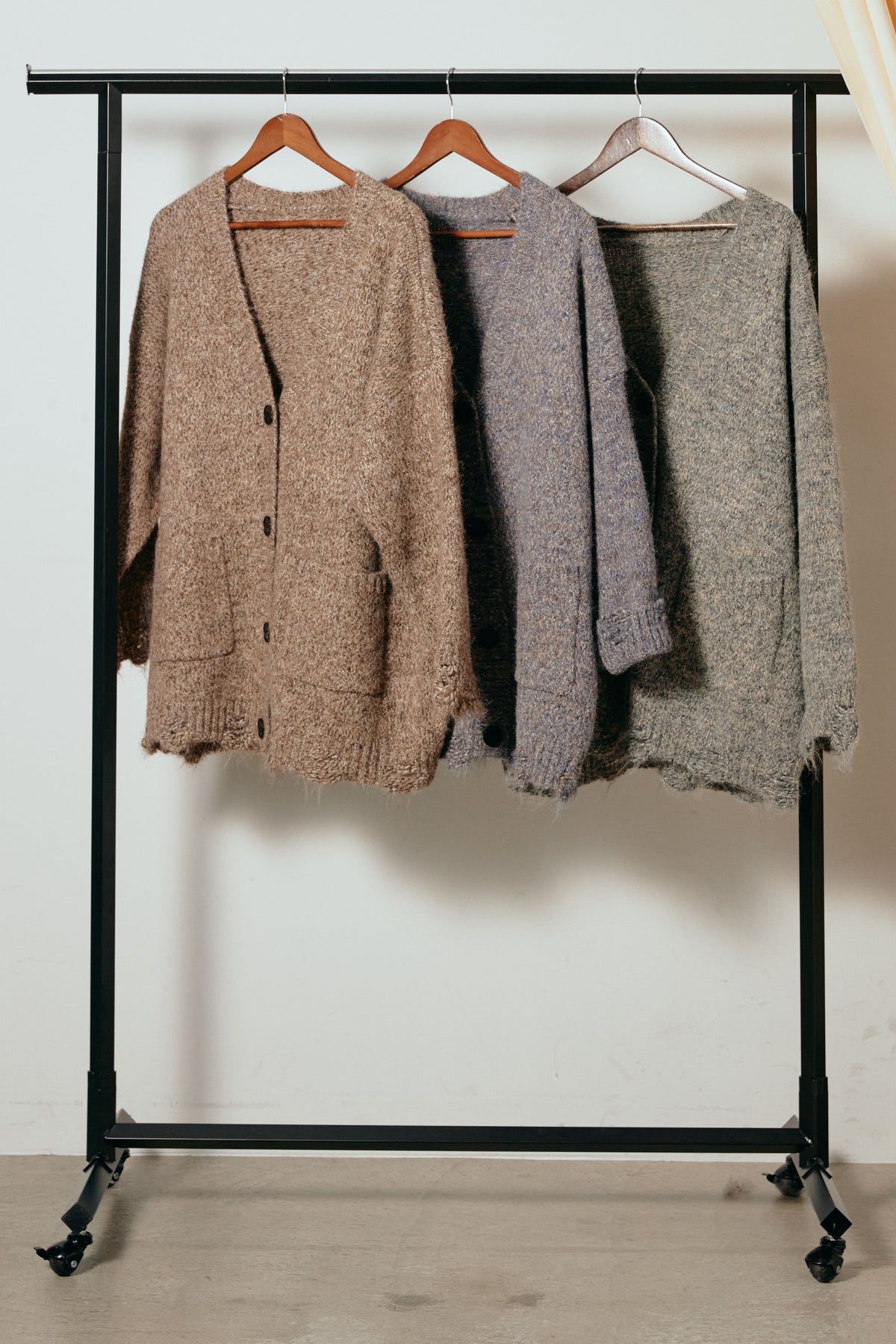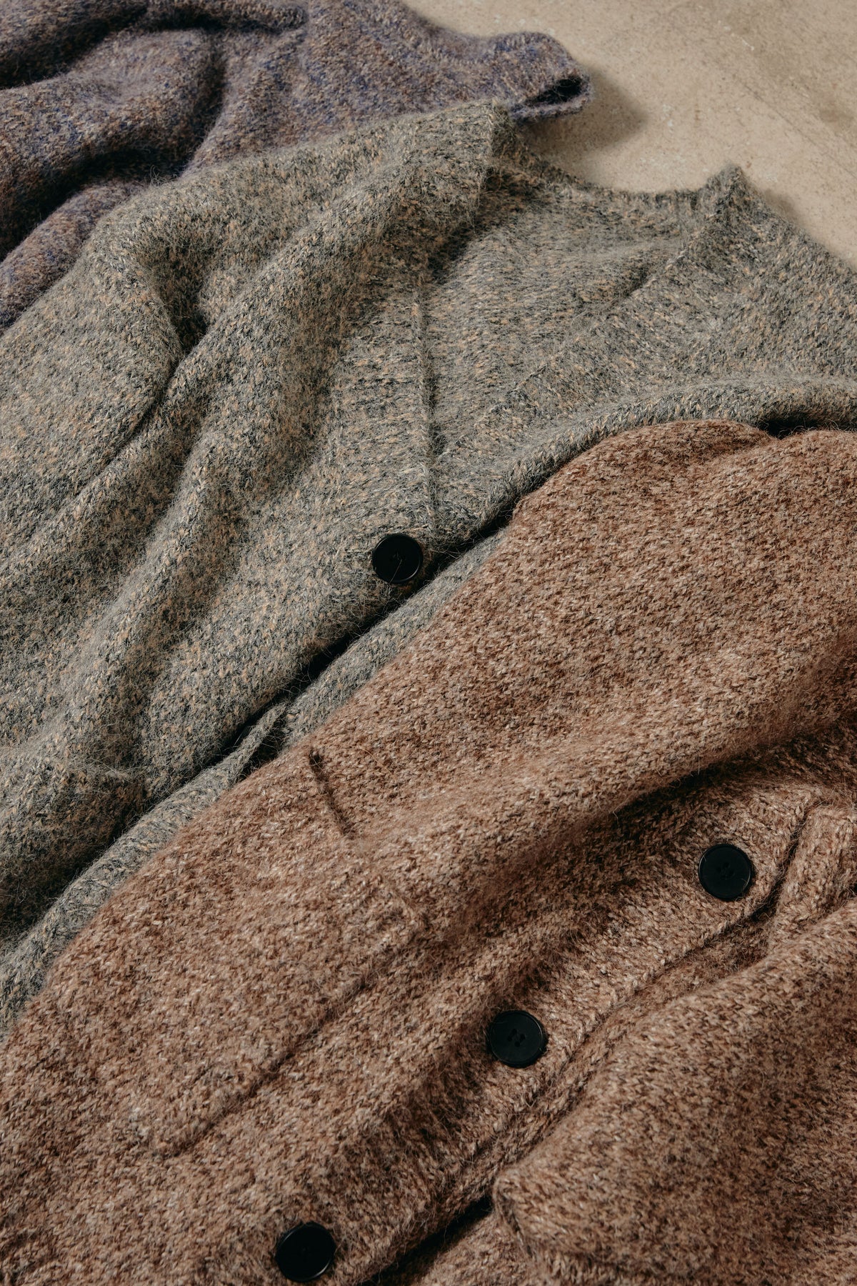 異なる糸をミックスした表情豊かなVネックカーディガン。 程よくゆとりのあるシルエットが抜け感を演出し、羽織るだけでこなれた印象に。 シャツやタートルをレイヤードしてもバランスよくまとまり、季節の変わり目にも重宝する一枚です。