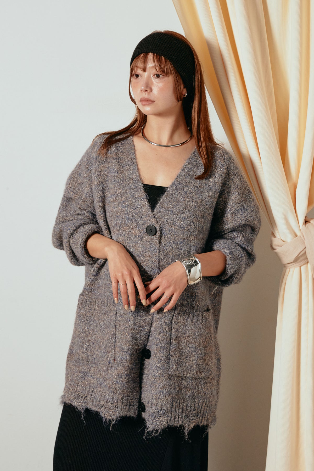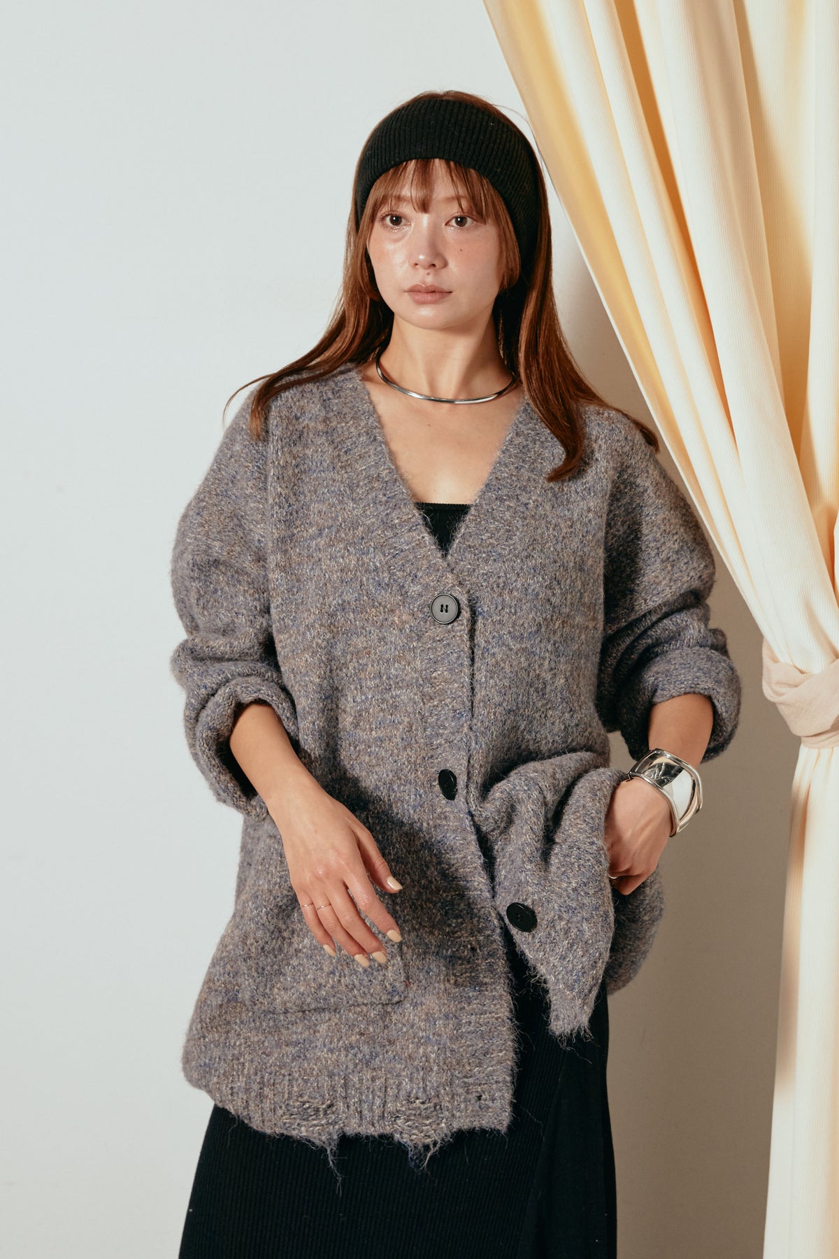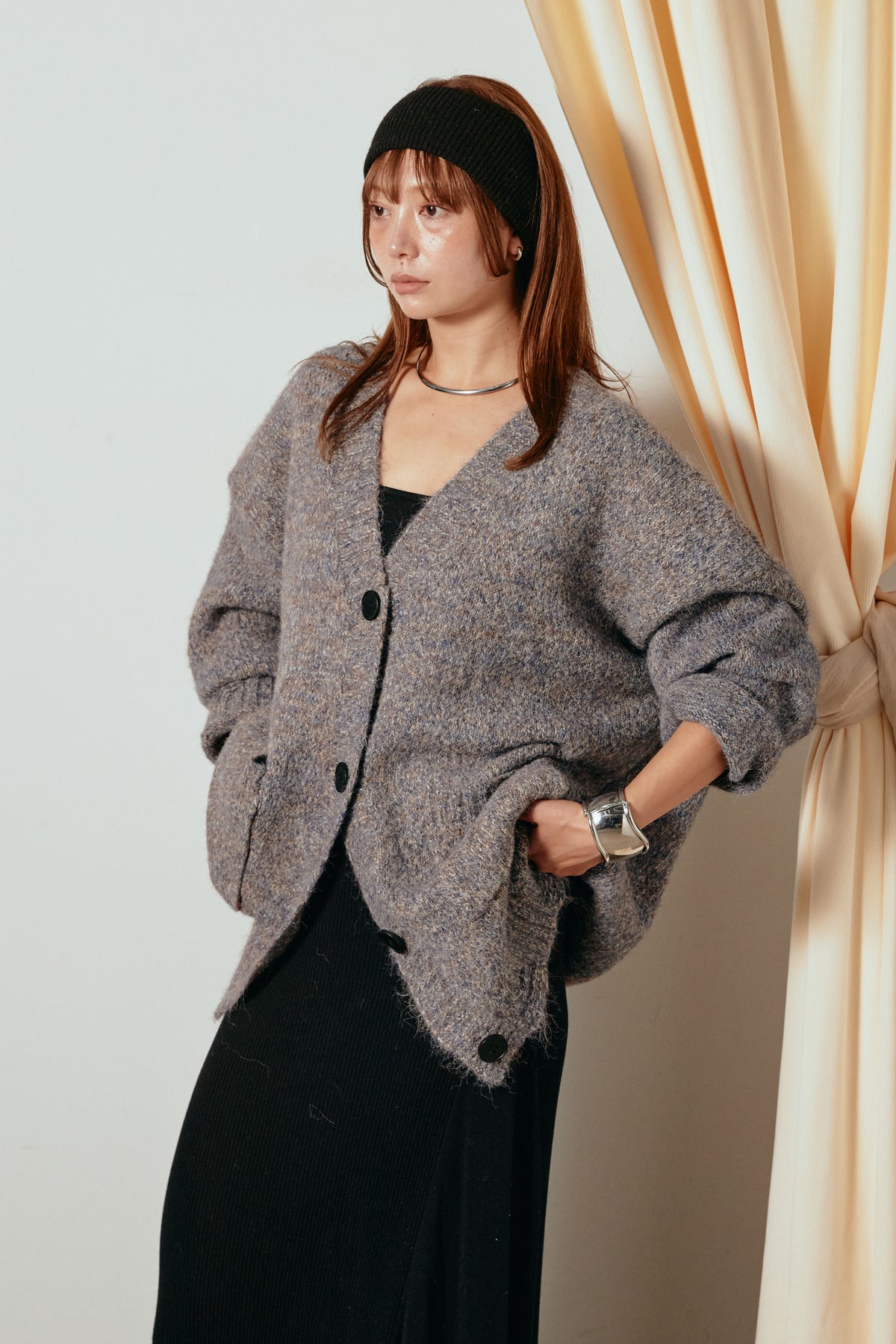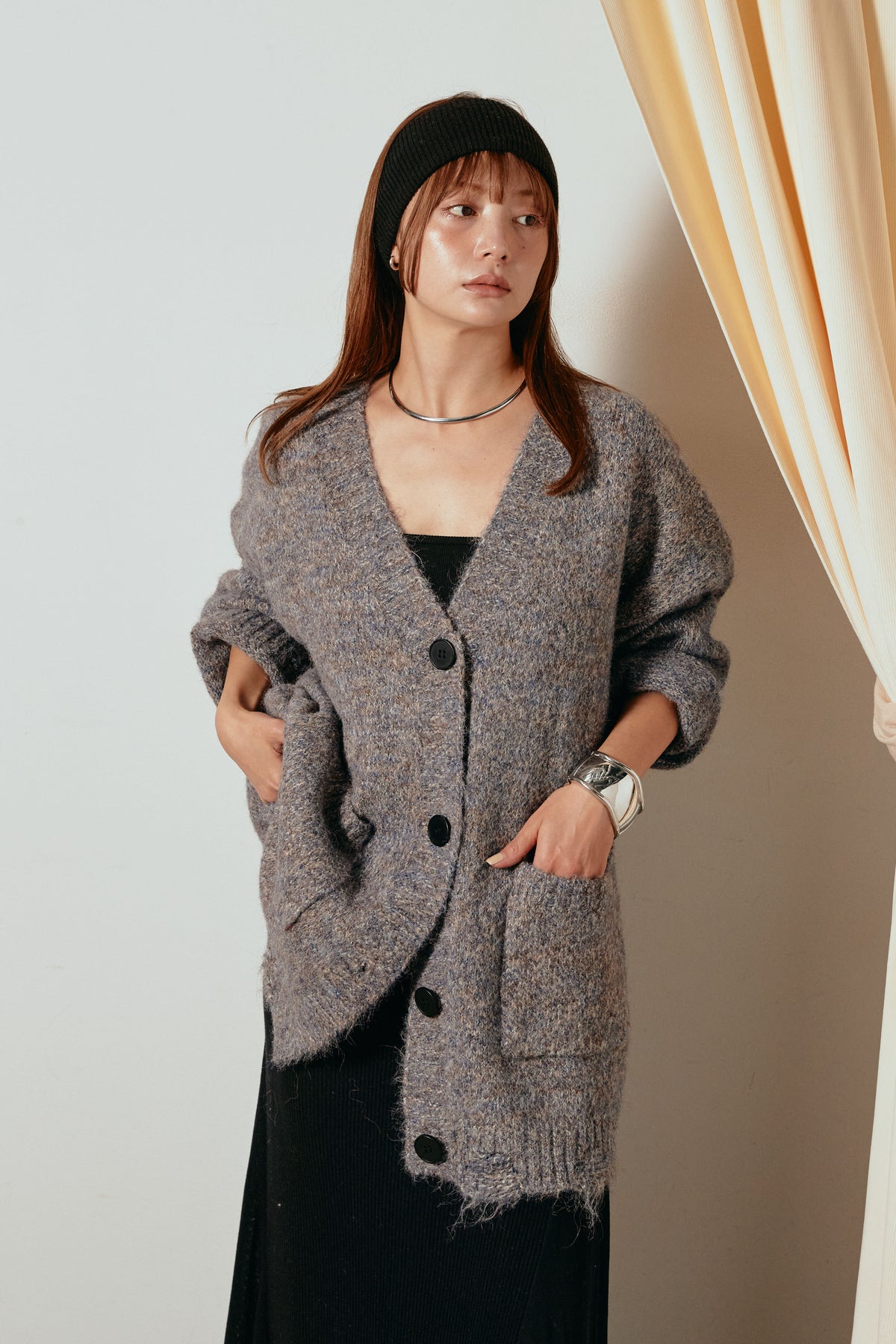 異なる糸をミックスした表情豊かなVネックカーディガン。