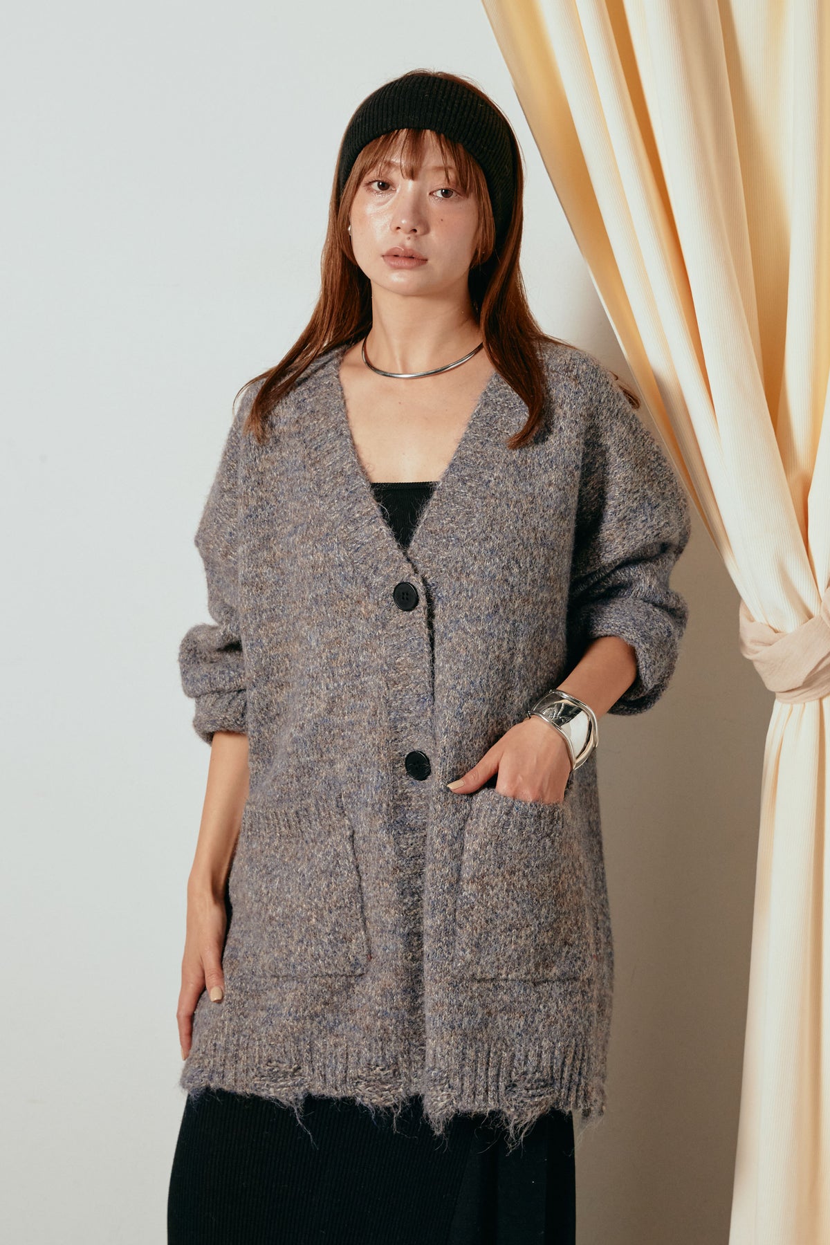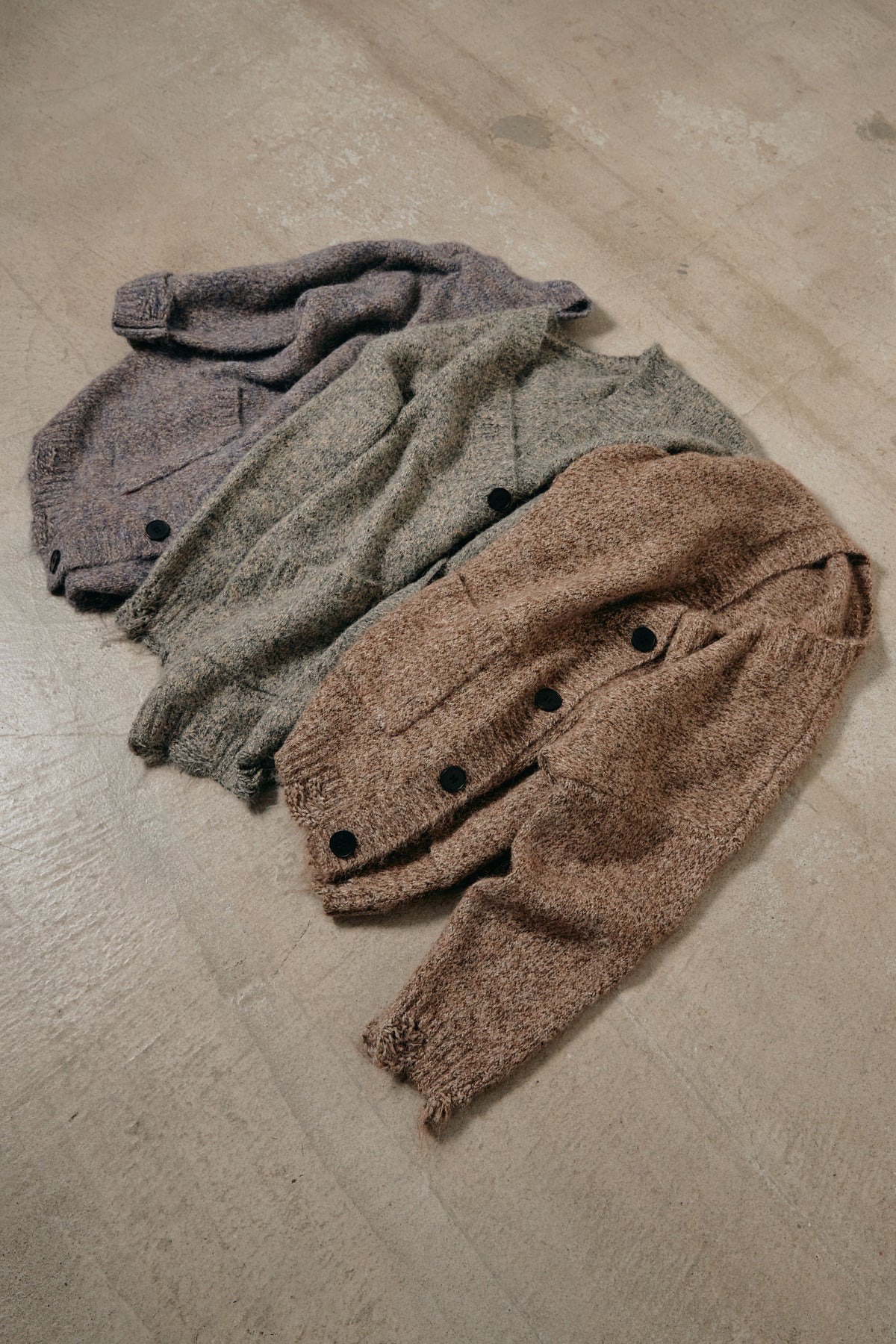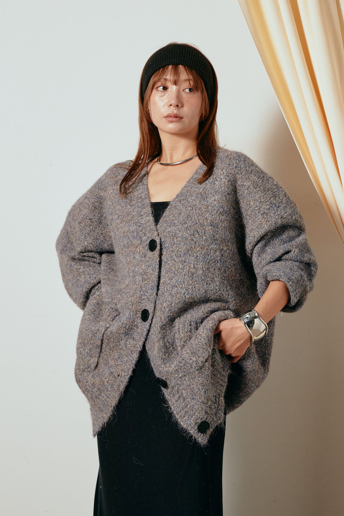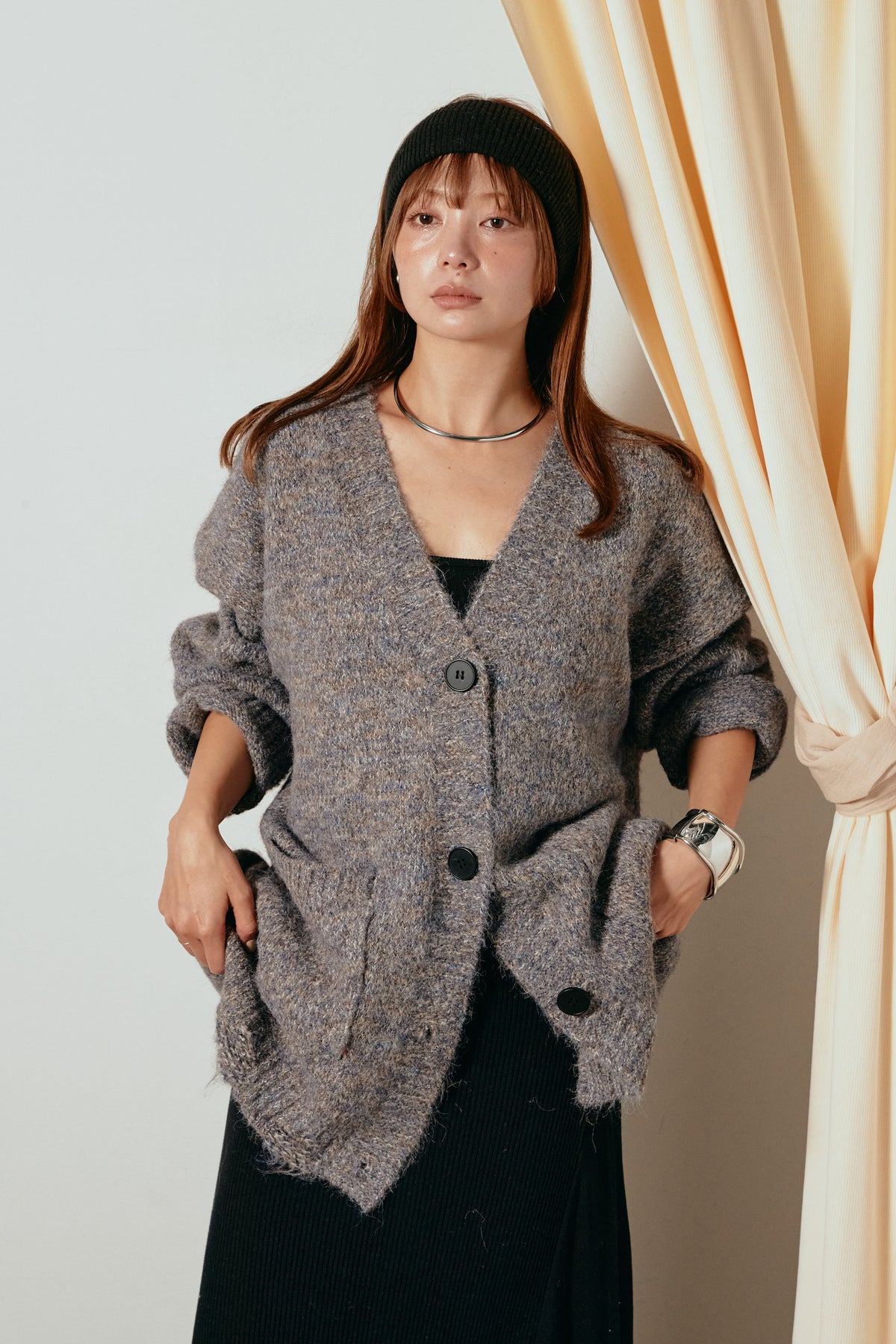 異なる糸をミックスした表情豊かなVネックカーディガン。