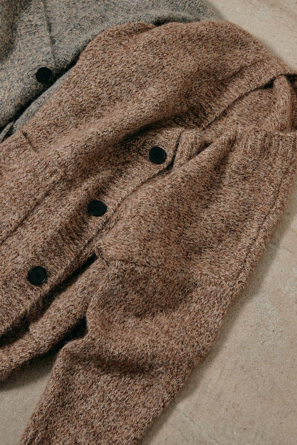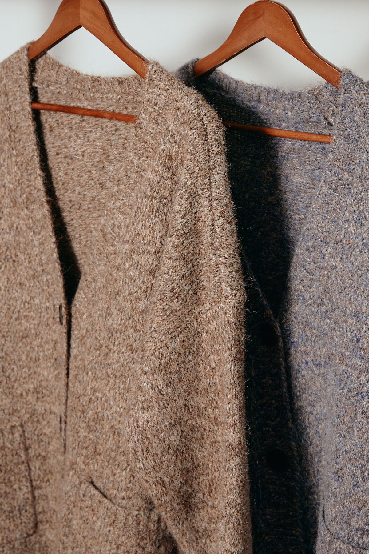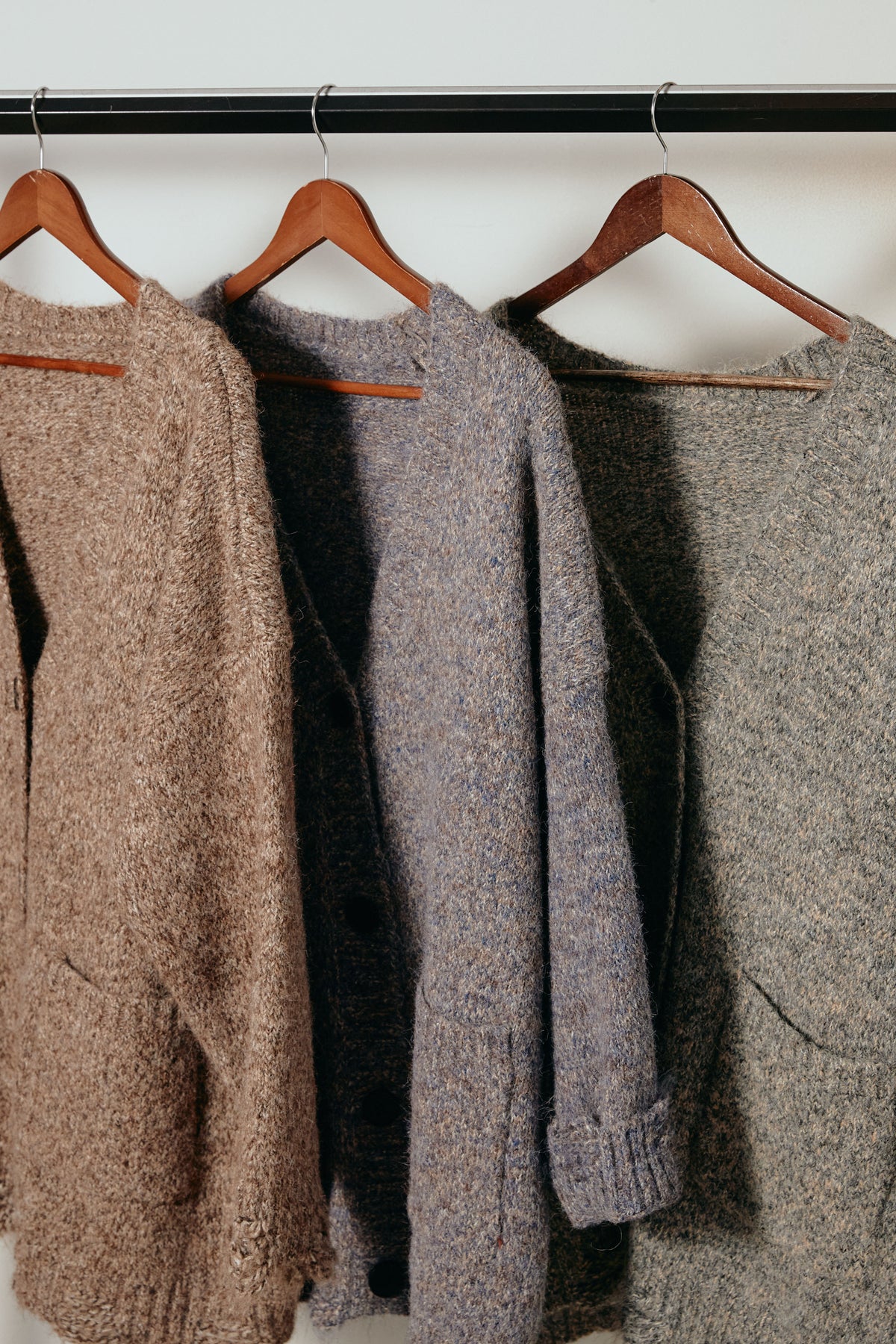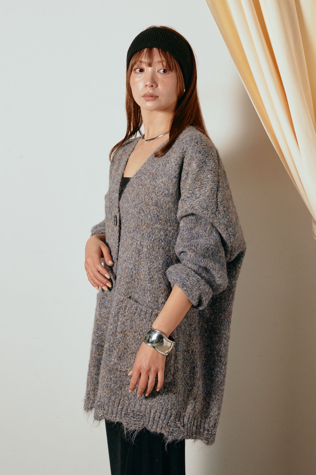 異なる糸をミックスした表情豊かなVネックカーディガン。