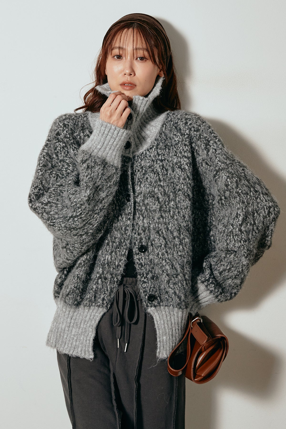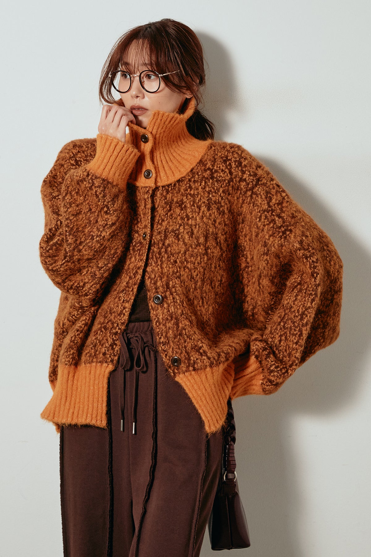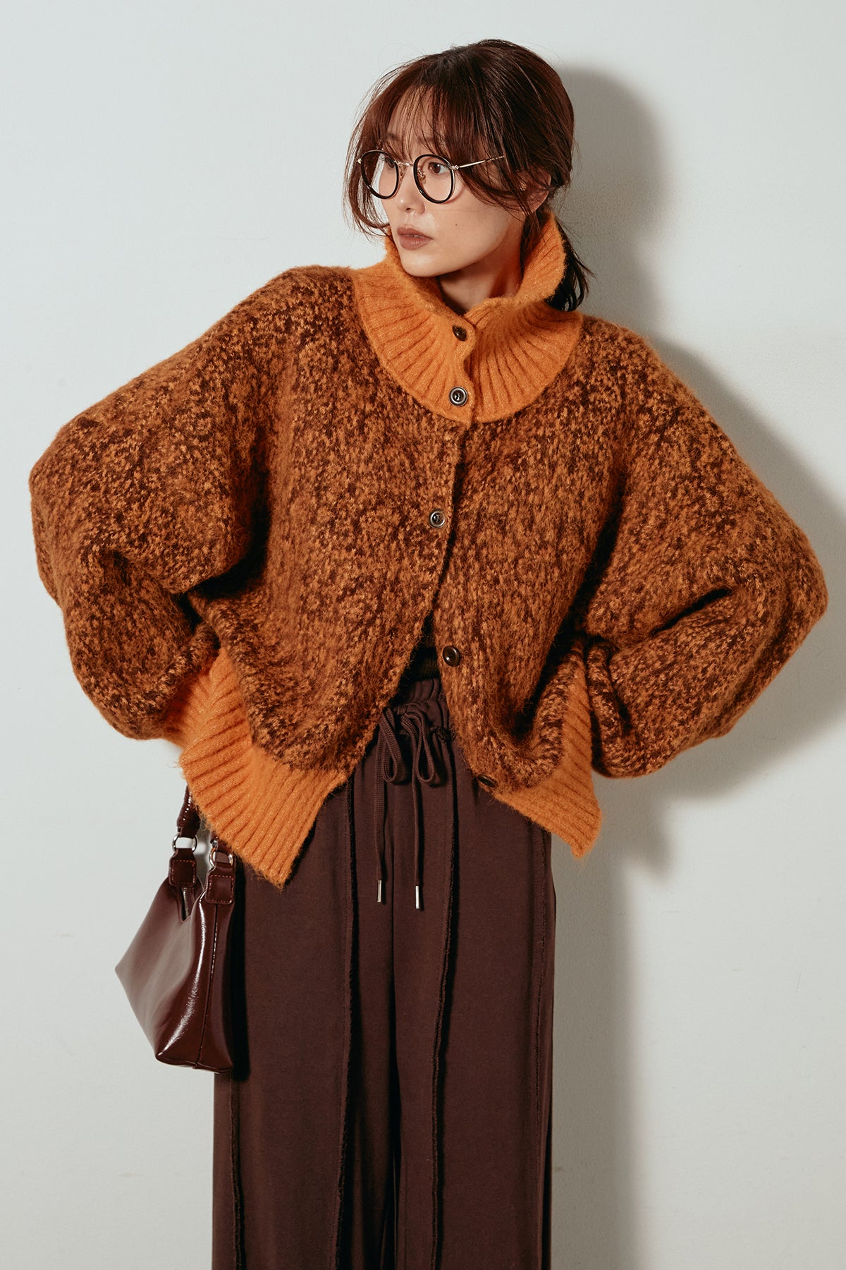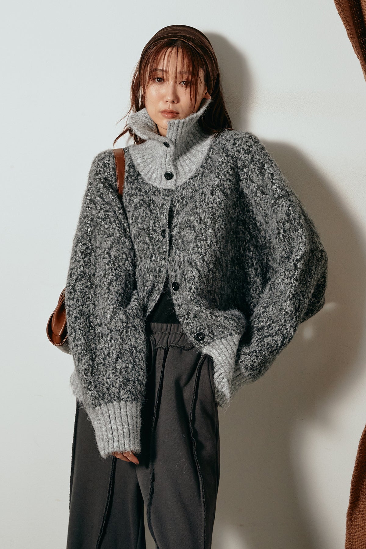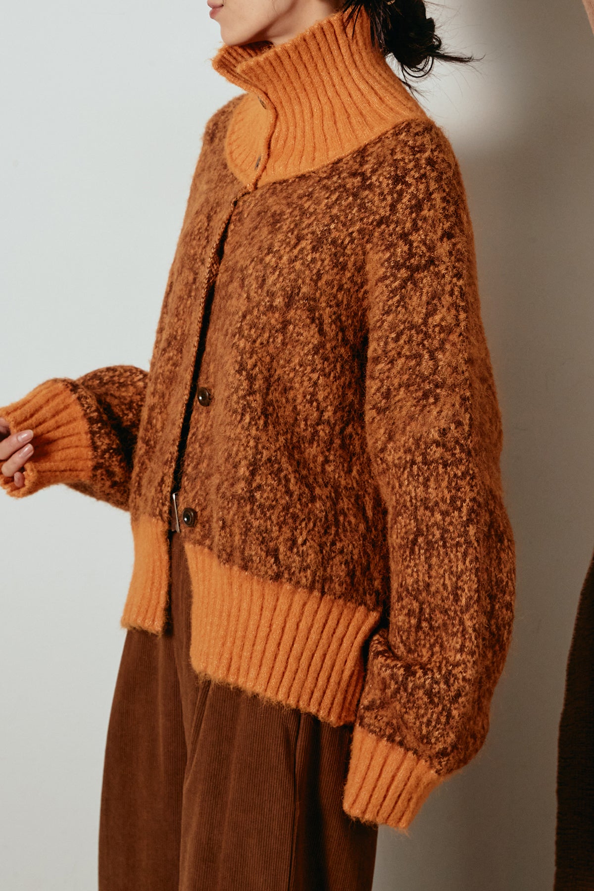 表情豊かなミックス糸を使用したハイネックニットトップス。異なる糸の風合いが奥行きのある色合いを生み、シンプルながら印象的な仕上がりに。ボリューム感のあるスリーブとリブ切り替えのディテールがアクセントになっています。ジップを開けて襟元を抜いた着こなしもおすすめで、パンツにもスカートにも合わせやすいバランスの取れた一枚です。