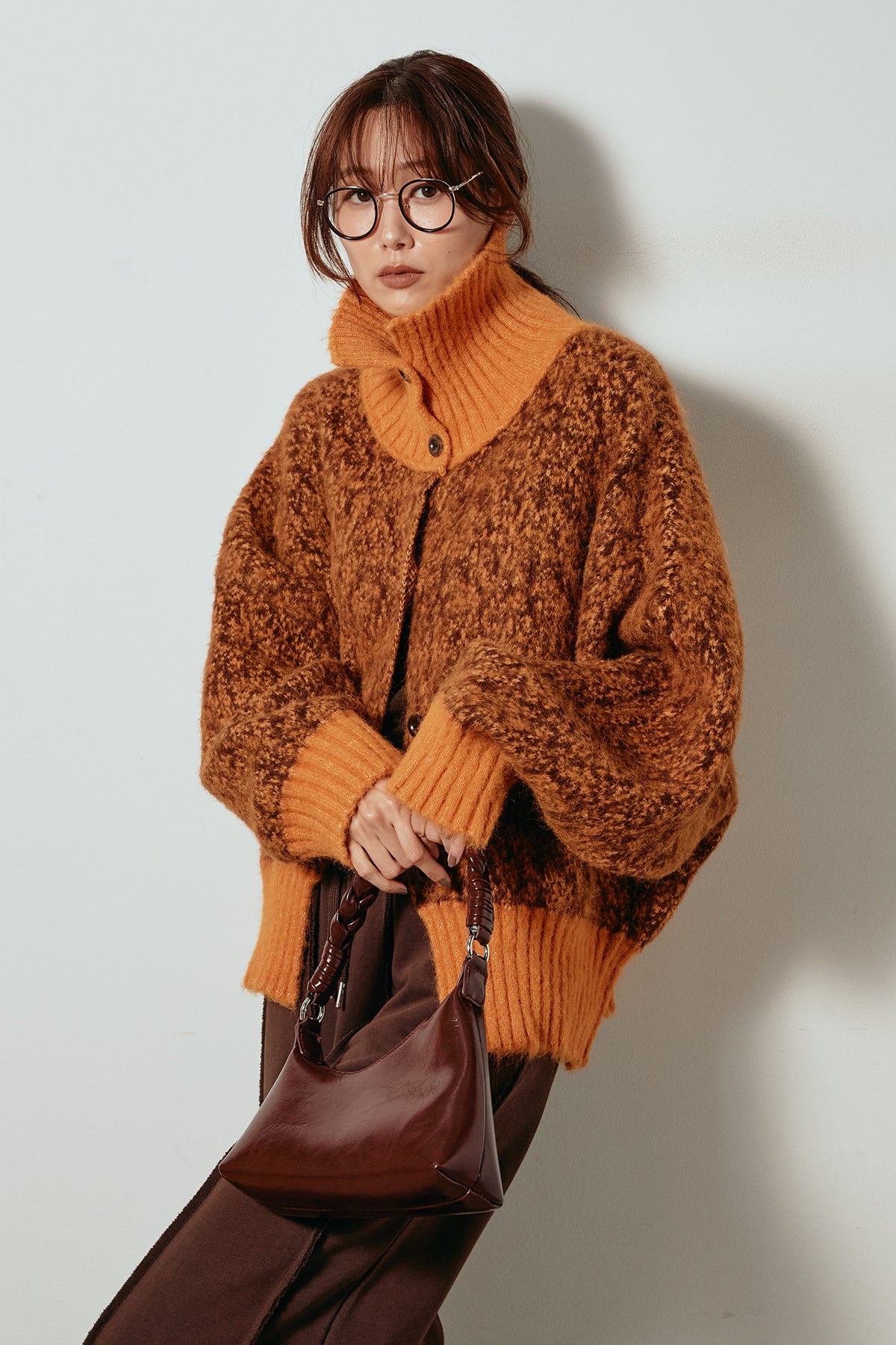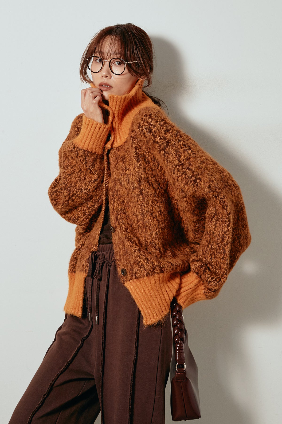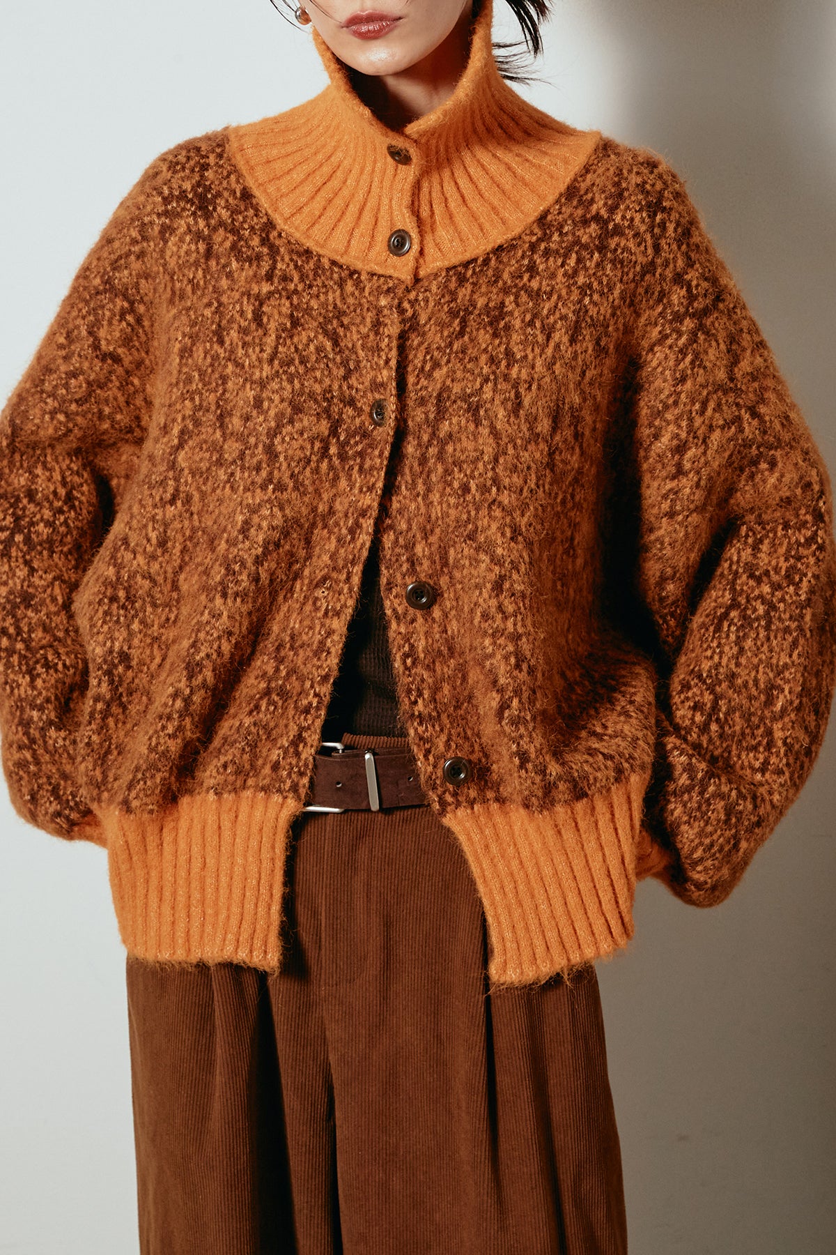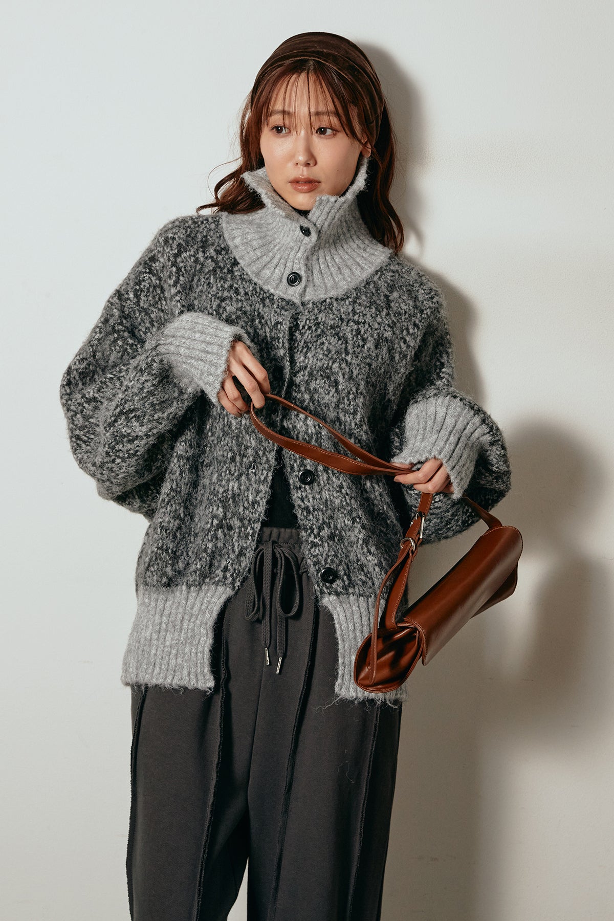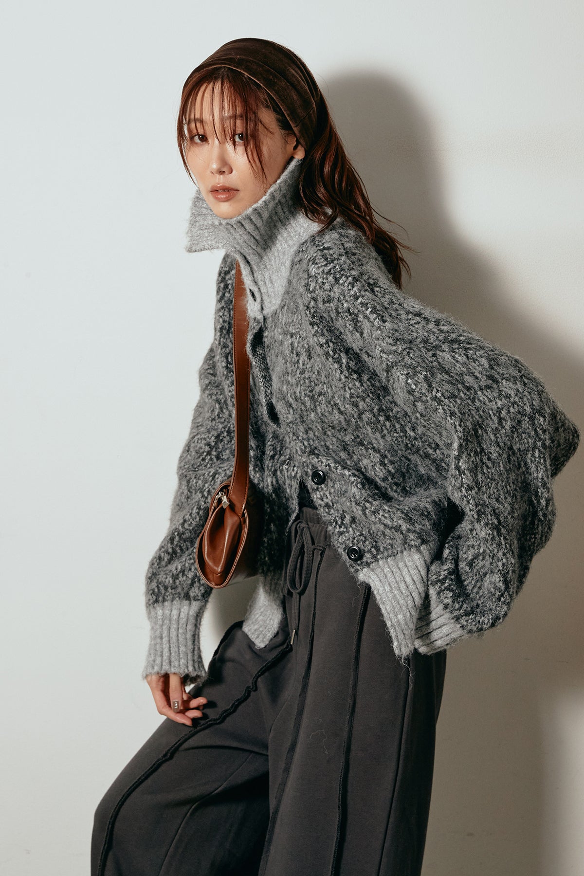 表情豊かなミックス糸を使用したハイネックニットトップス。異なる糸の風合いが奥行きのある色合いを生み、シンプルながら印象的な仕上がりに。ボリューム感のあるスリーブとリブ切り替えのディテールがアクセントになっています。ジップを開けて襟元を抜いた着こなしもおすすめで、パンツにもスカートにも合わせやすいバランスの取れた一枚です。