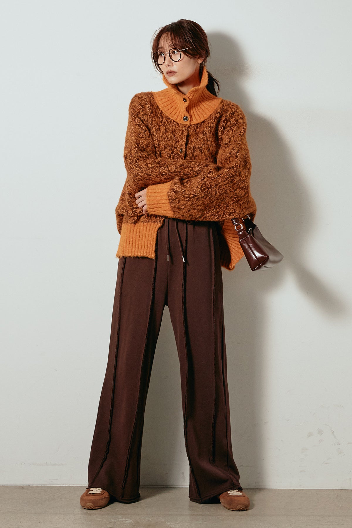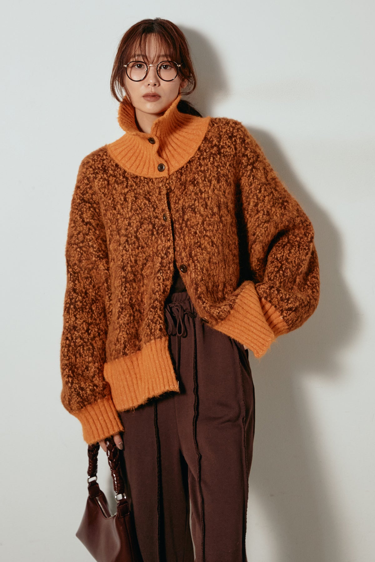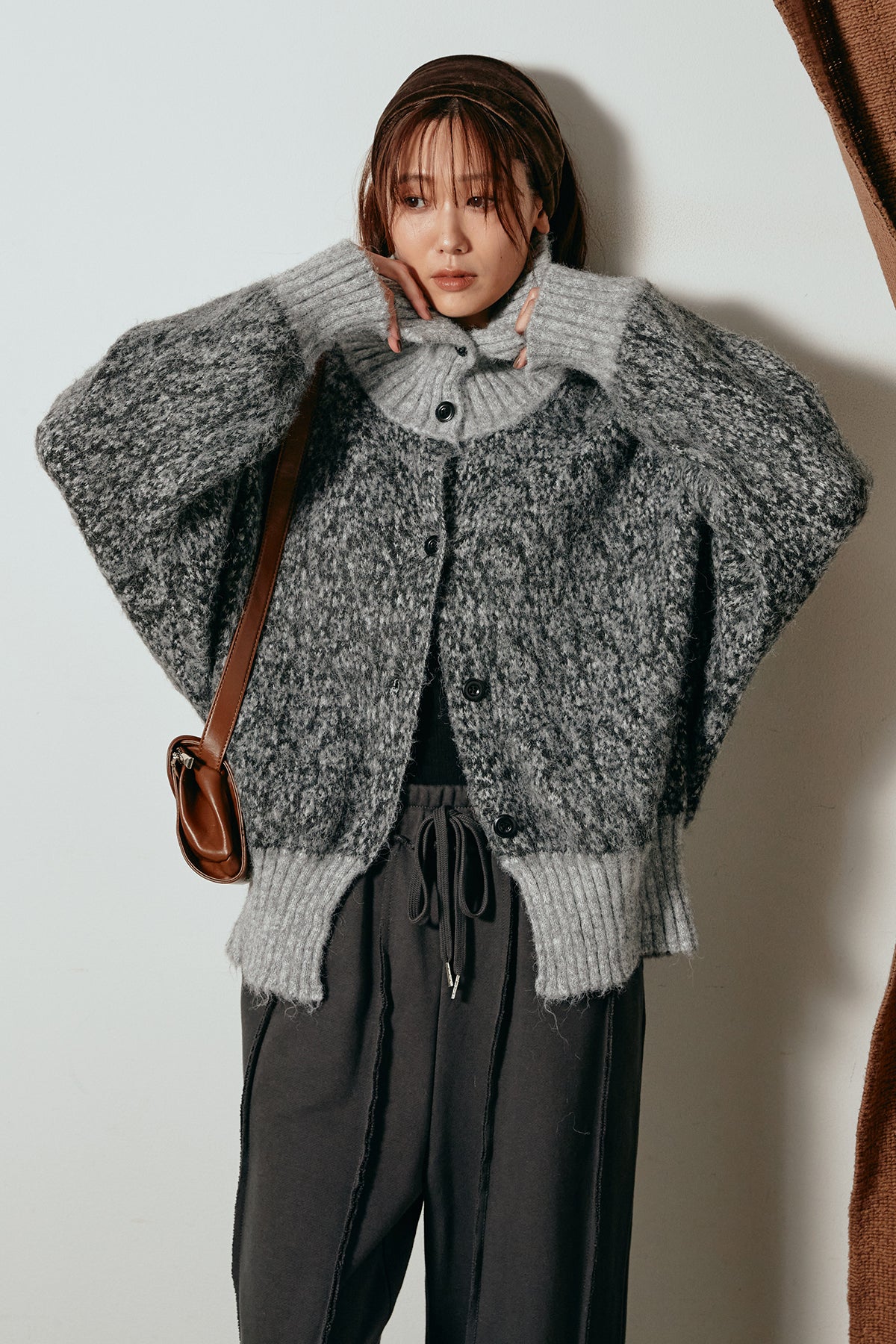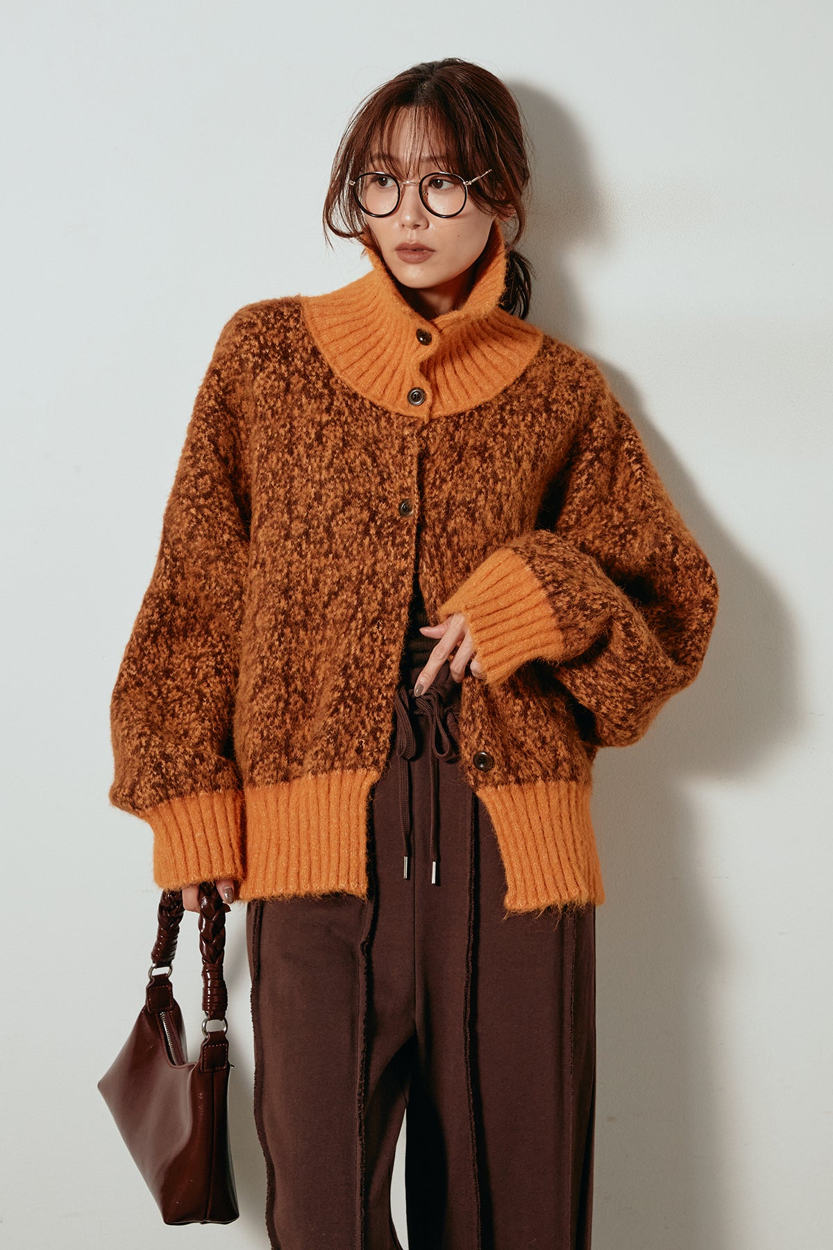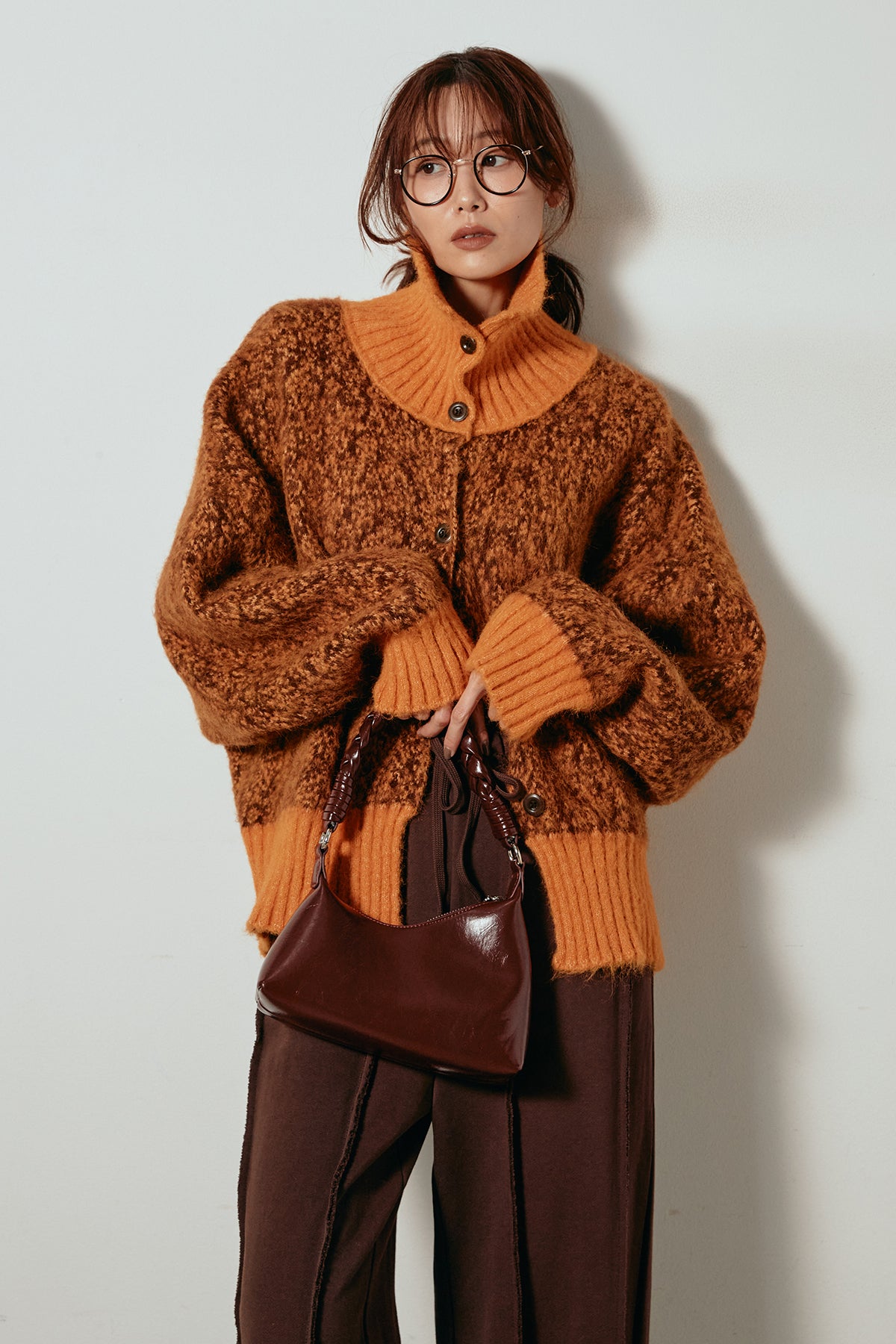 表情豊かなミックス糸を使用したハイネックニットトップス。異なる糸の風合いが奥行きのある色合いを生み、シンプルながら印象的な仕上がりに。ボリューム感のあるスリーブとリブ切り替えのディテールがアクセントになっています。ジップを開けて襟元を抜いた着こなしもおすすめで、パンツにもスカートにも合わせやすいバランスの取れた一枚です。