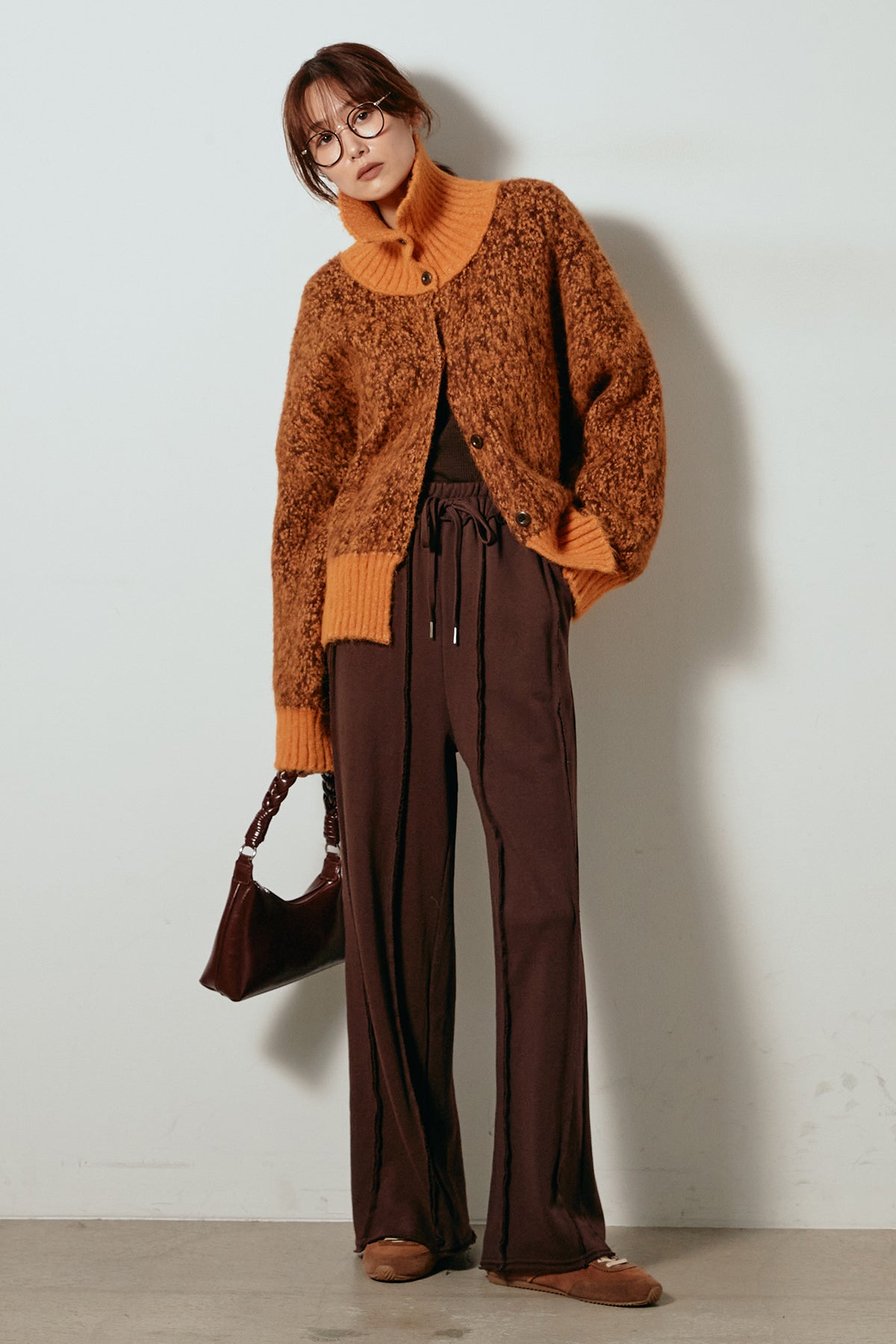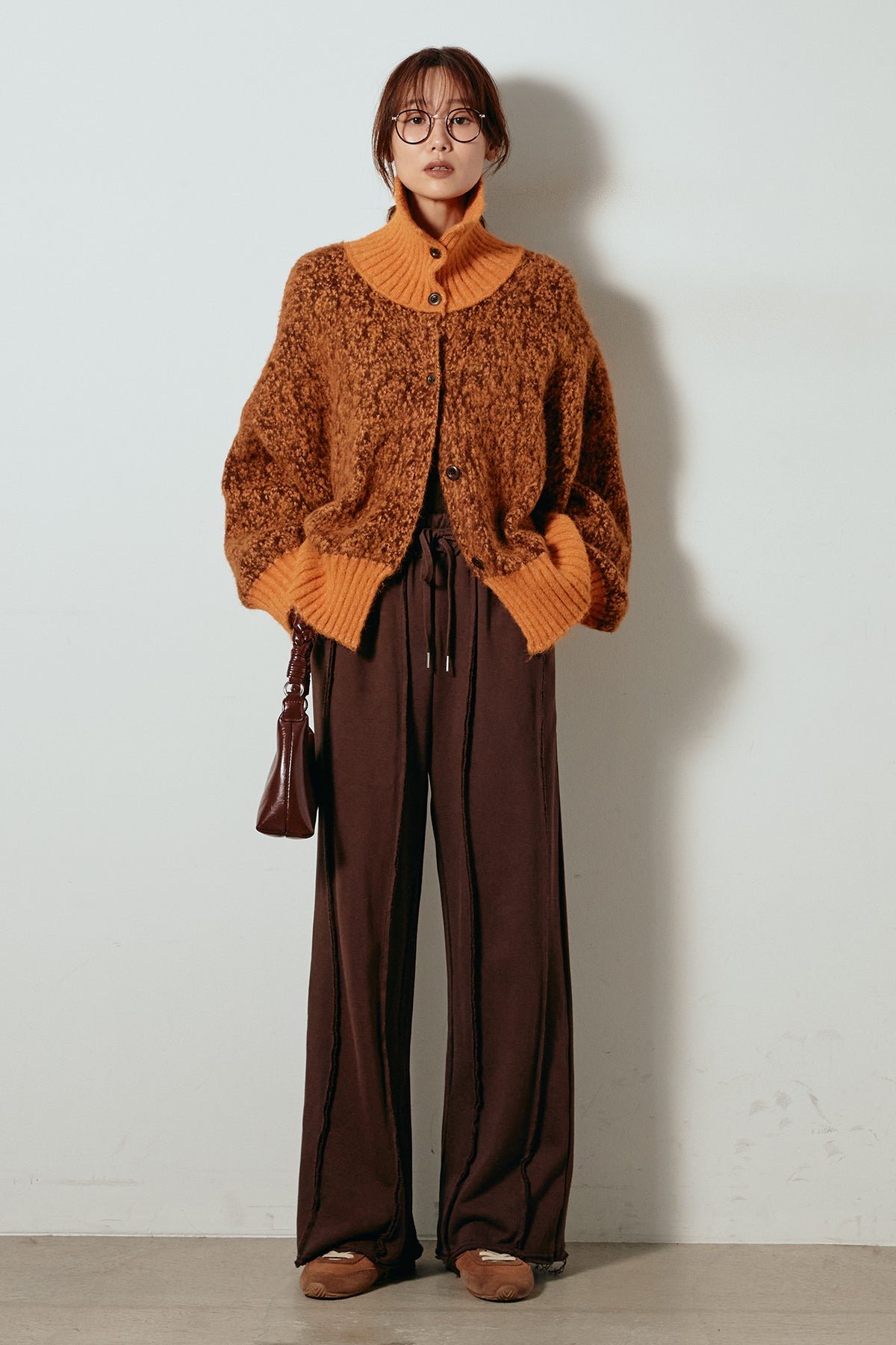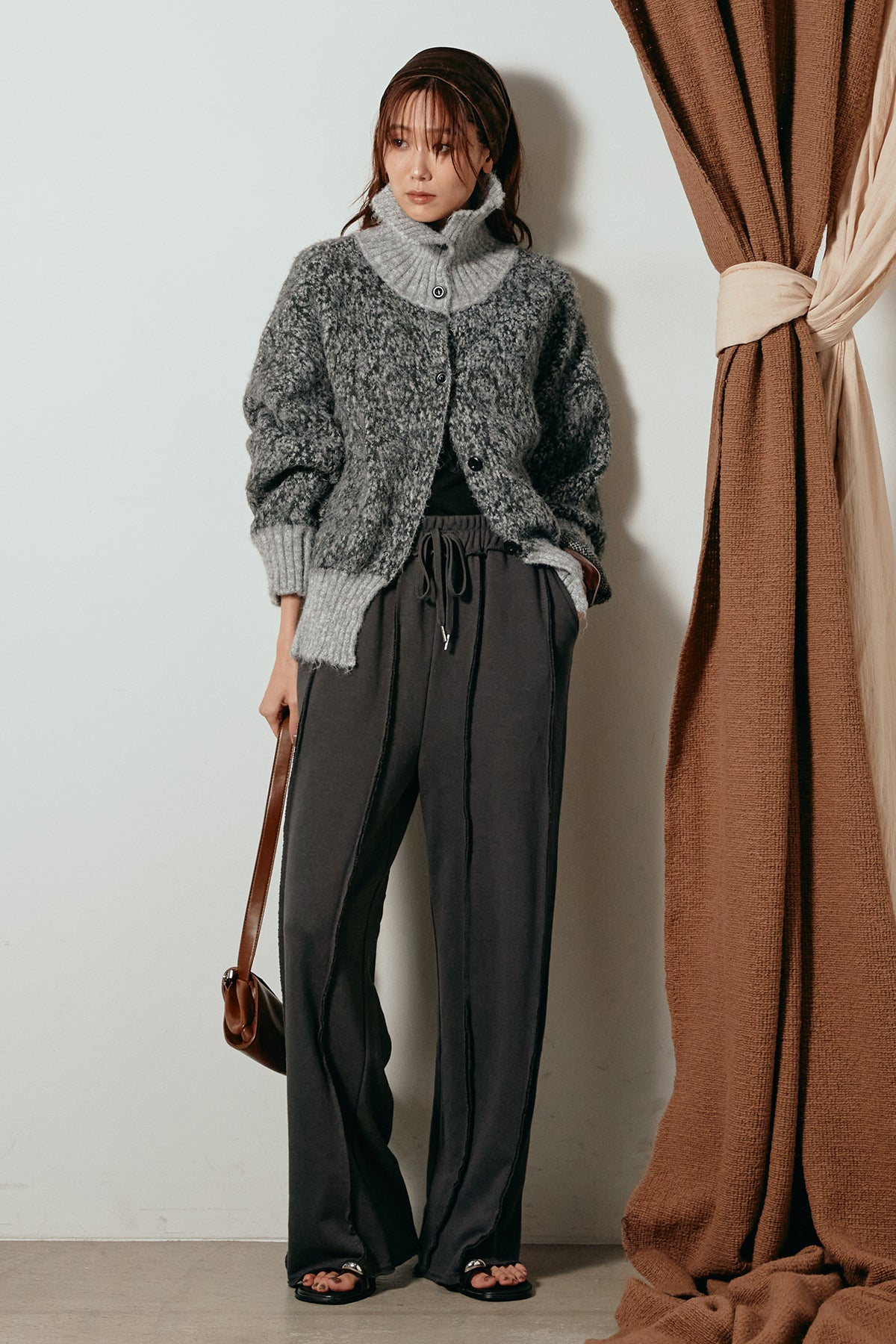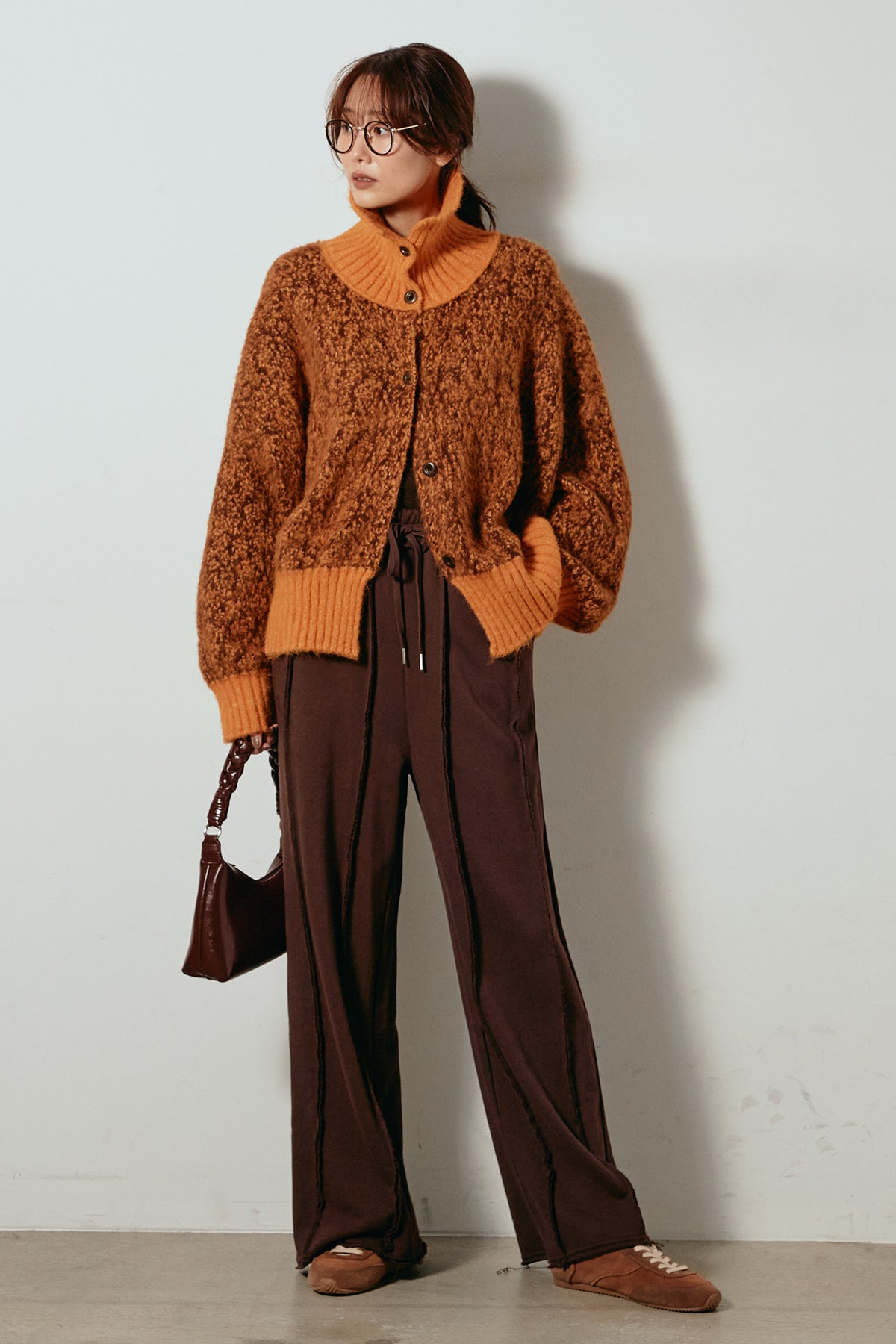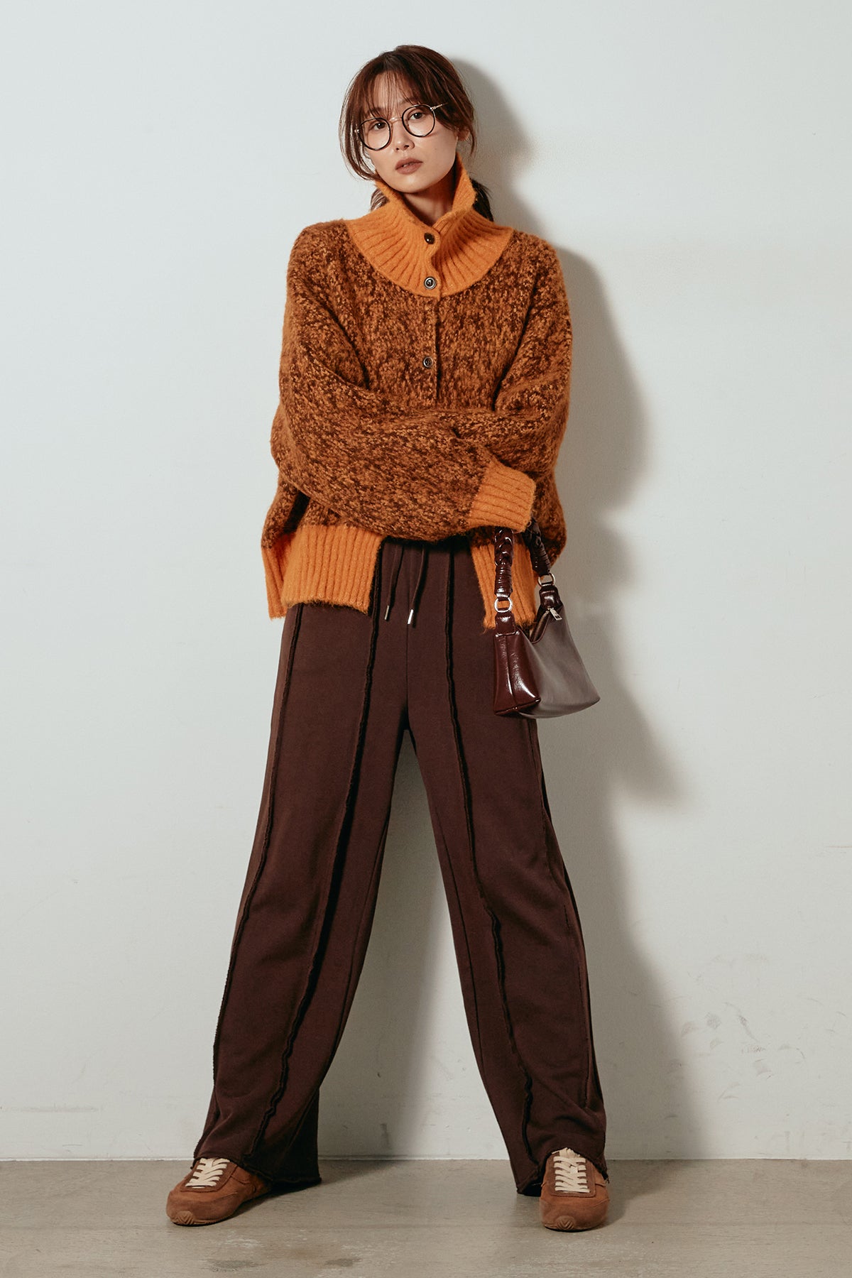 表情豊かなミックス糸を使用したハイネックニットトップス。異なる糸の風合いが奥行きのある色合いを生み、シンプルながら印象的な仕上がりに。ボリューム感のあるスリーブとリブ切り替えのディテールがアクセントになっています。ジップを開けて襟元を抜いた着こなしもおすすめで、パンツにもスカートにも合わせやすいバランスの取れた一枚です。