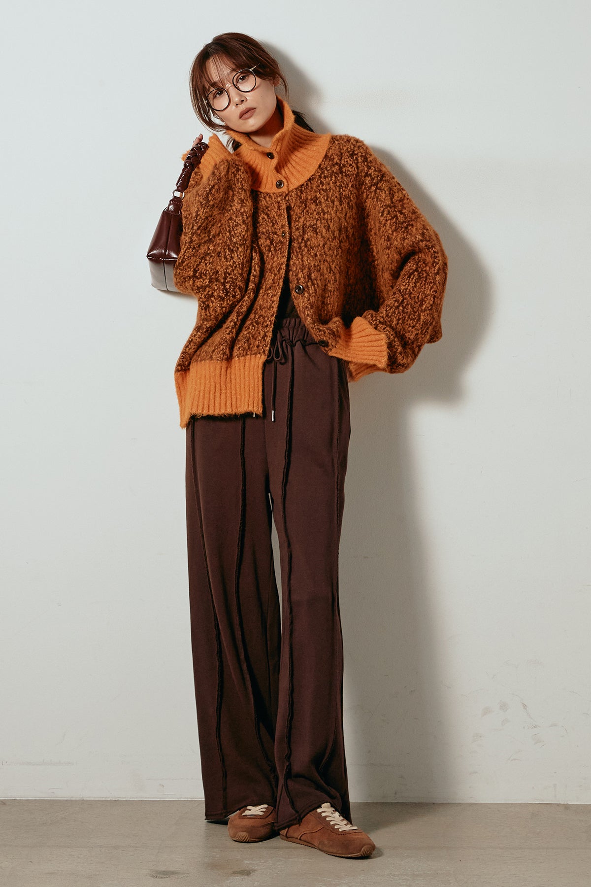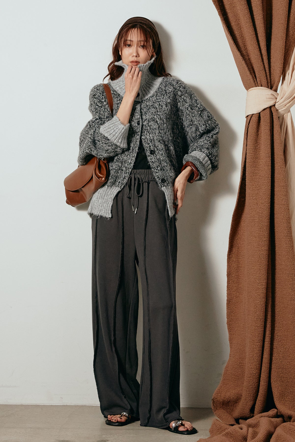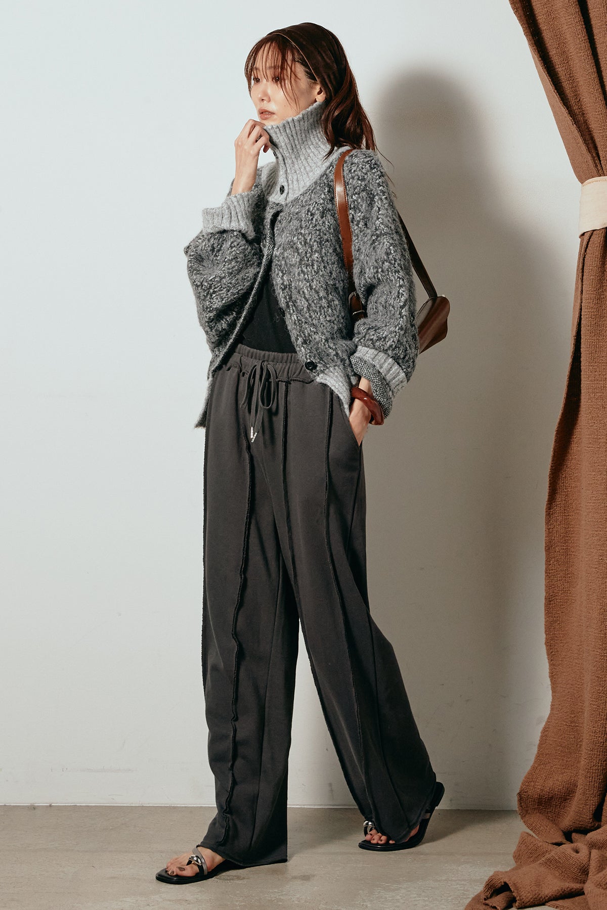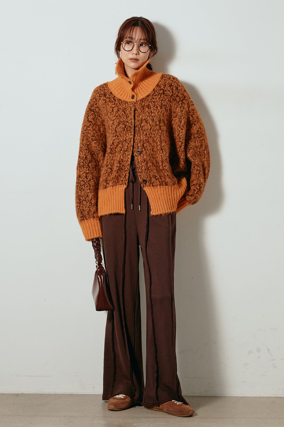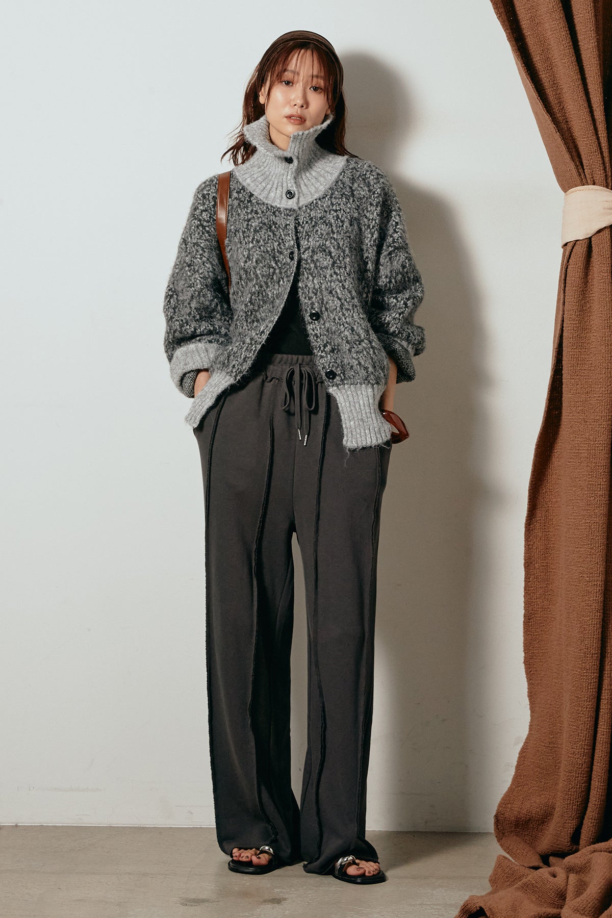 表情豊かなミックス糸を使用したハイネックニットトップス。異なる糸の風合いが奥行きのある色合いを生み、シンプルながら印象的な仕上がりに。ボリューム感のあるスリーブとリブ切り替えのディテールがアクセントになっています。ジップを開けて襟元を抜いた着こなしもおすすめで、パンツにもスカートにも合わせやすいバランスの取れた一枚です。